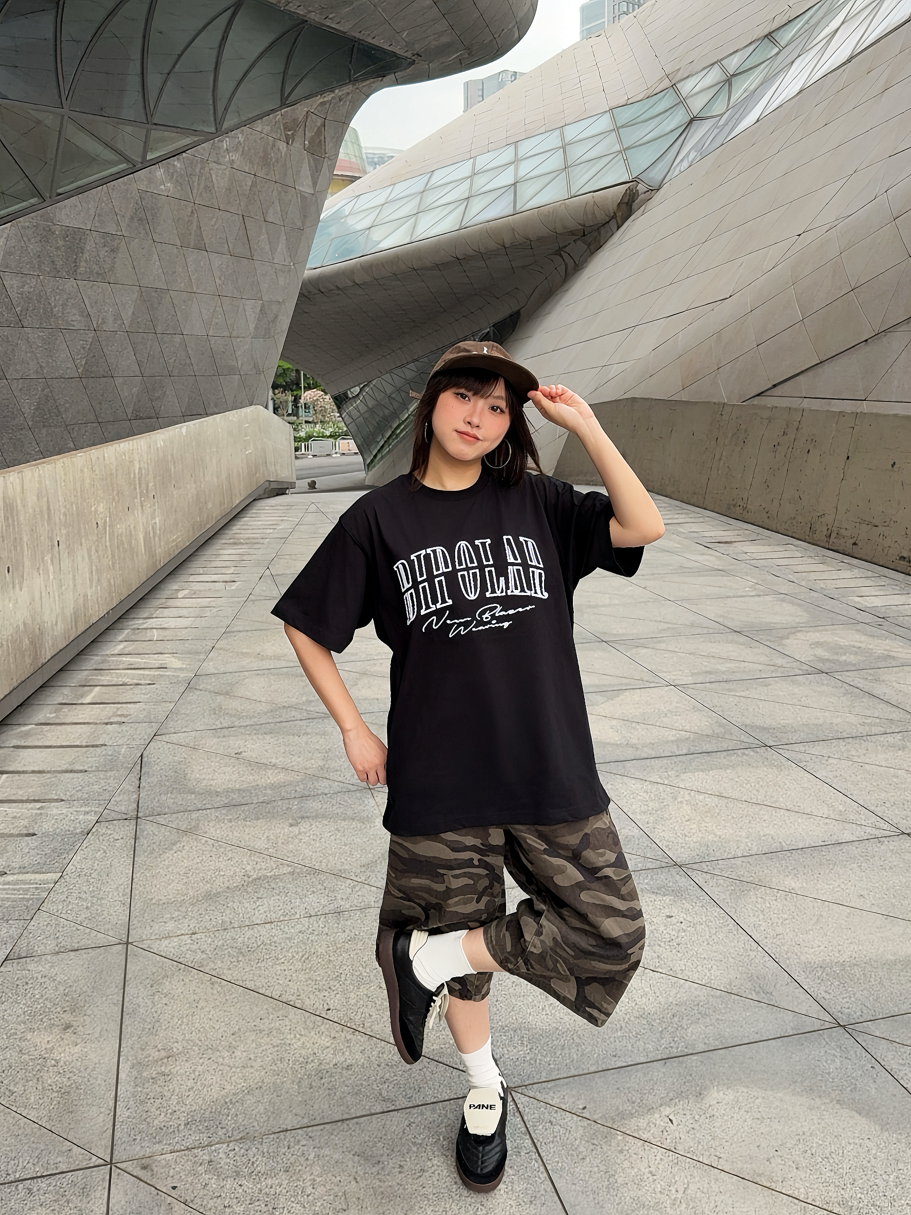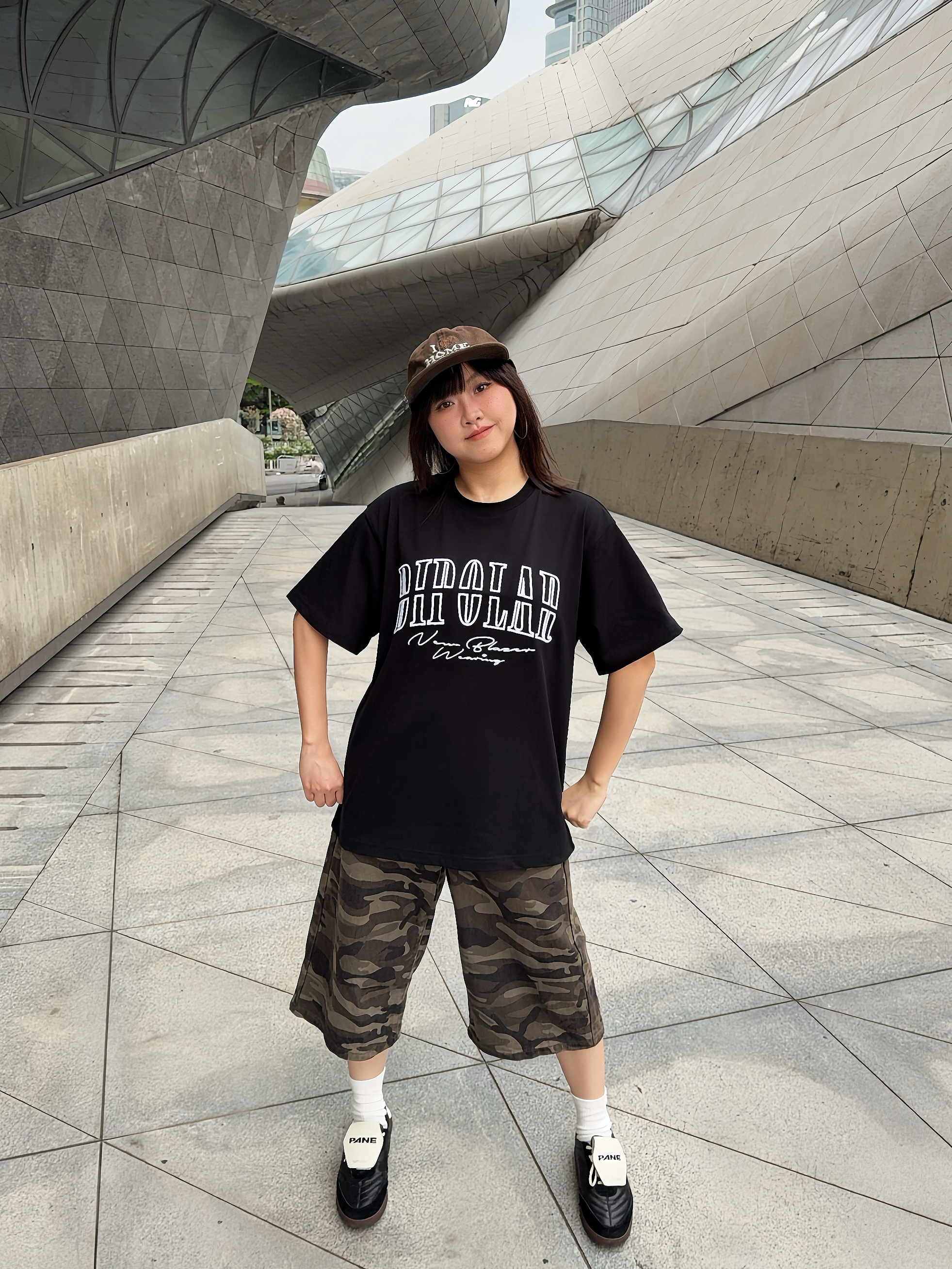 🛹穿不腻的春夏短袖穿搭,就是短袖搭配中裤,又舒服又有时髦感~ ✔️ BIPOLAR 美式短袖,前后的刺绣图案质感💯,t恤是宽松版型,上身也很nice🌟随便穿都蛮有街头vibe