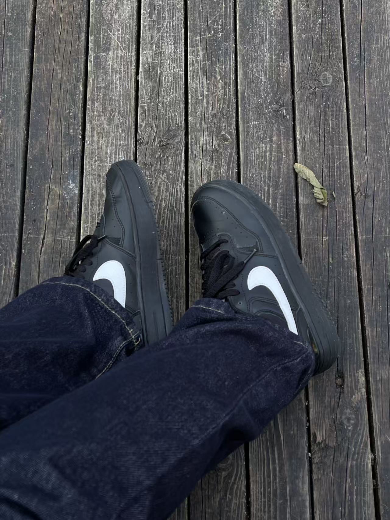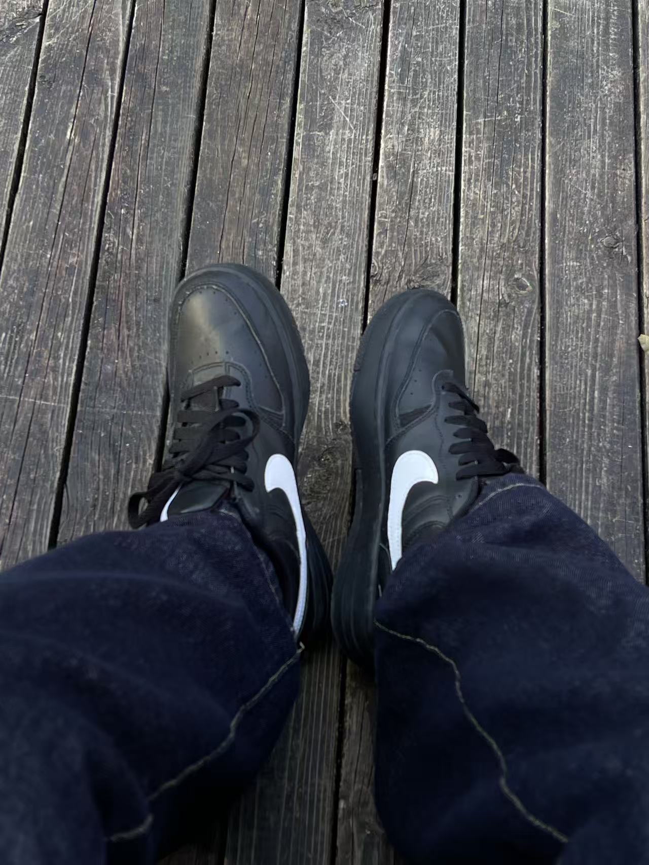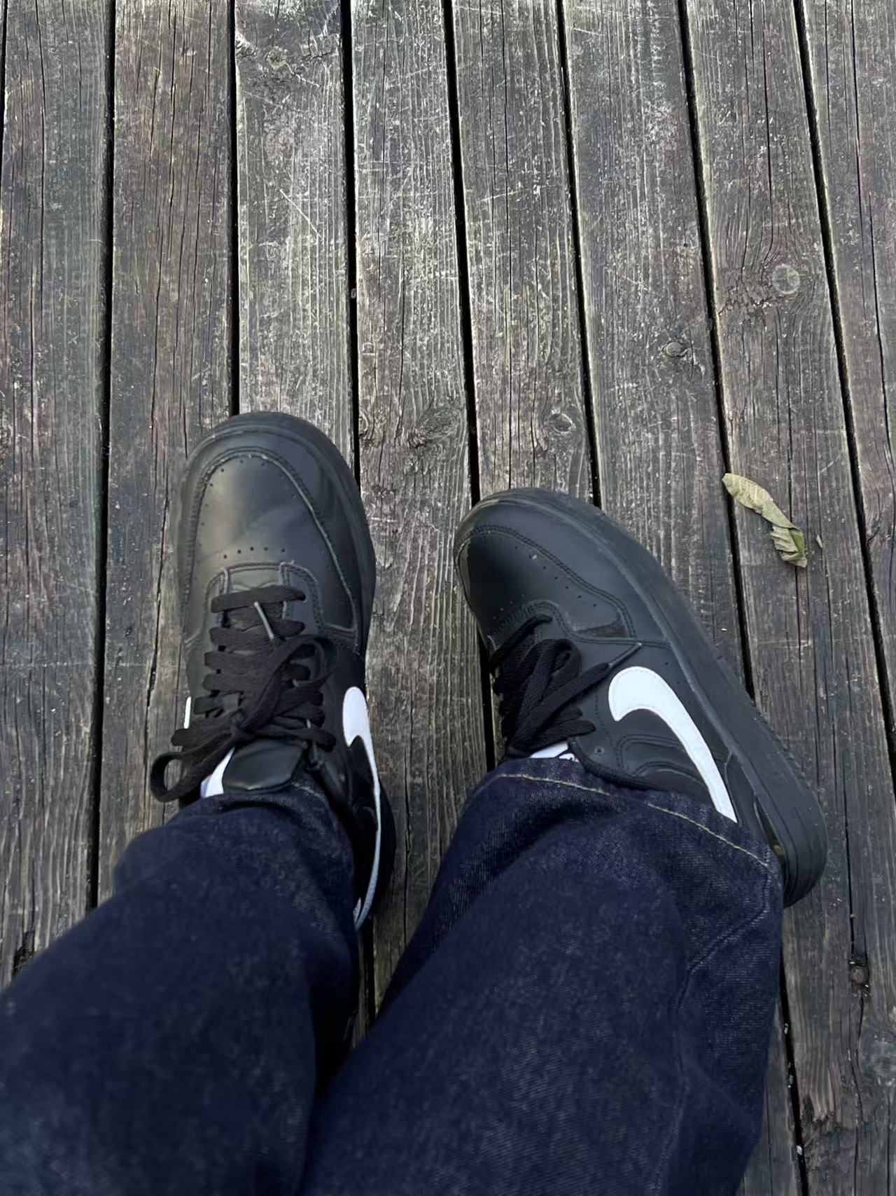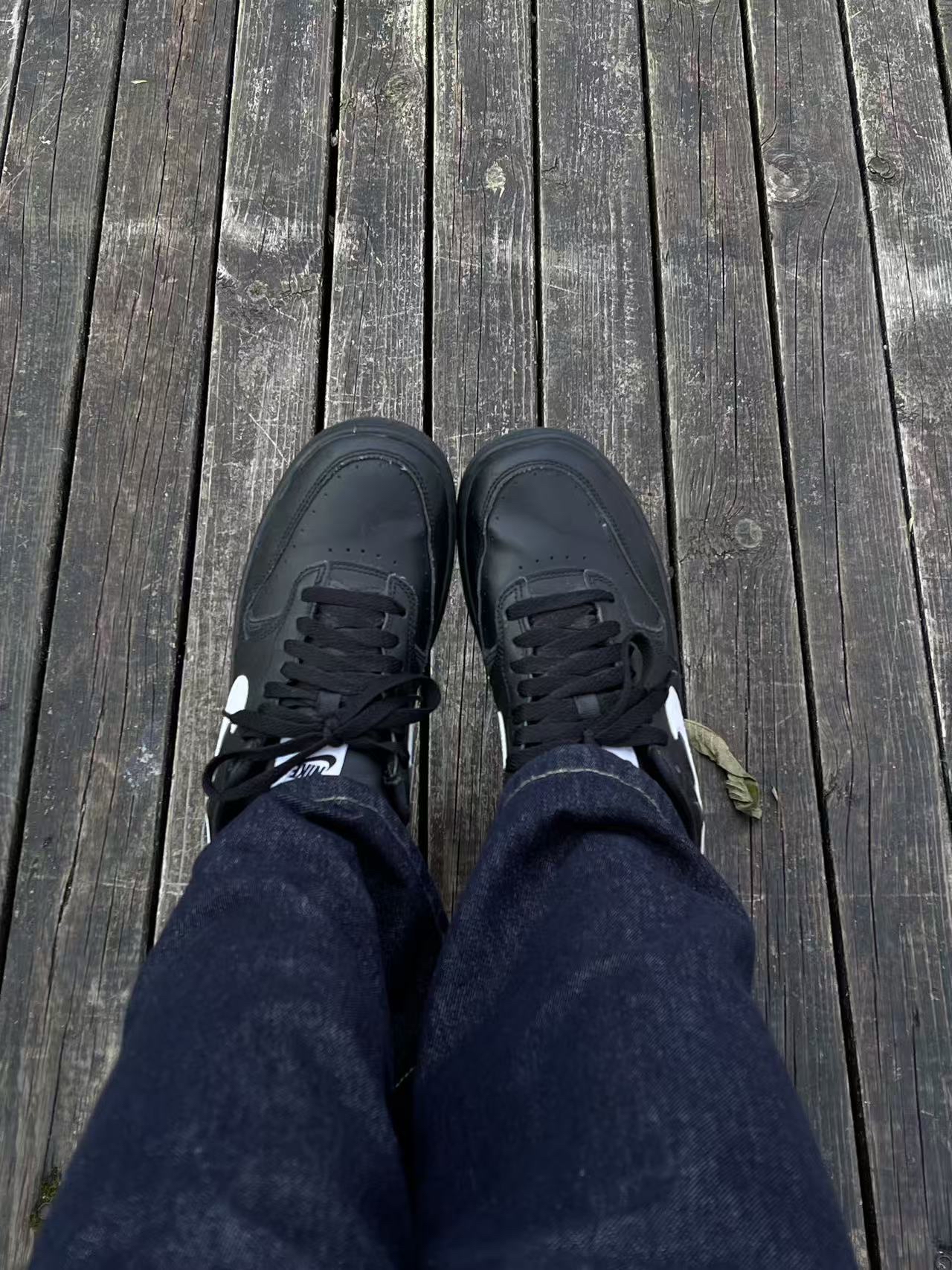 耐克黑武士,黑背配色高级百搭,上脚脚感扎实久穿不累脚,冬天穿也暖和。配束脚裤显腿长,搭工装裙甜酷平衡又酷又飒! 你们冬天穿黑武士最爱搭什么单品?评论区交流搭配灵感~