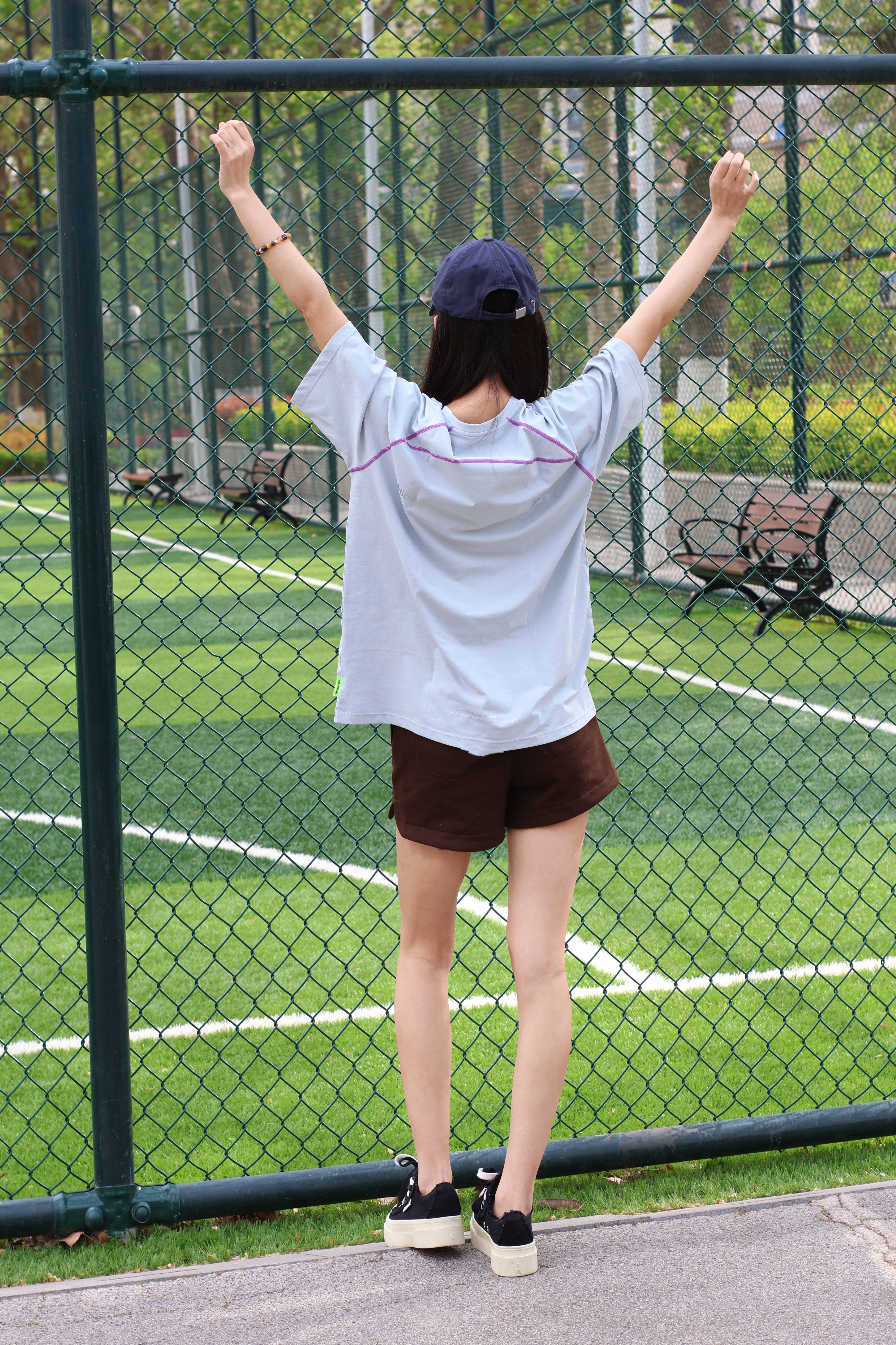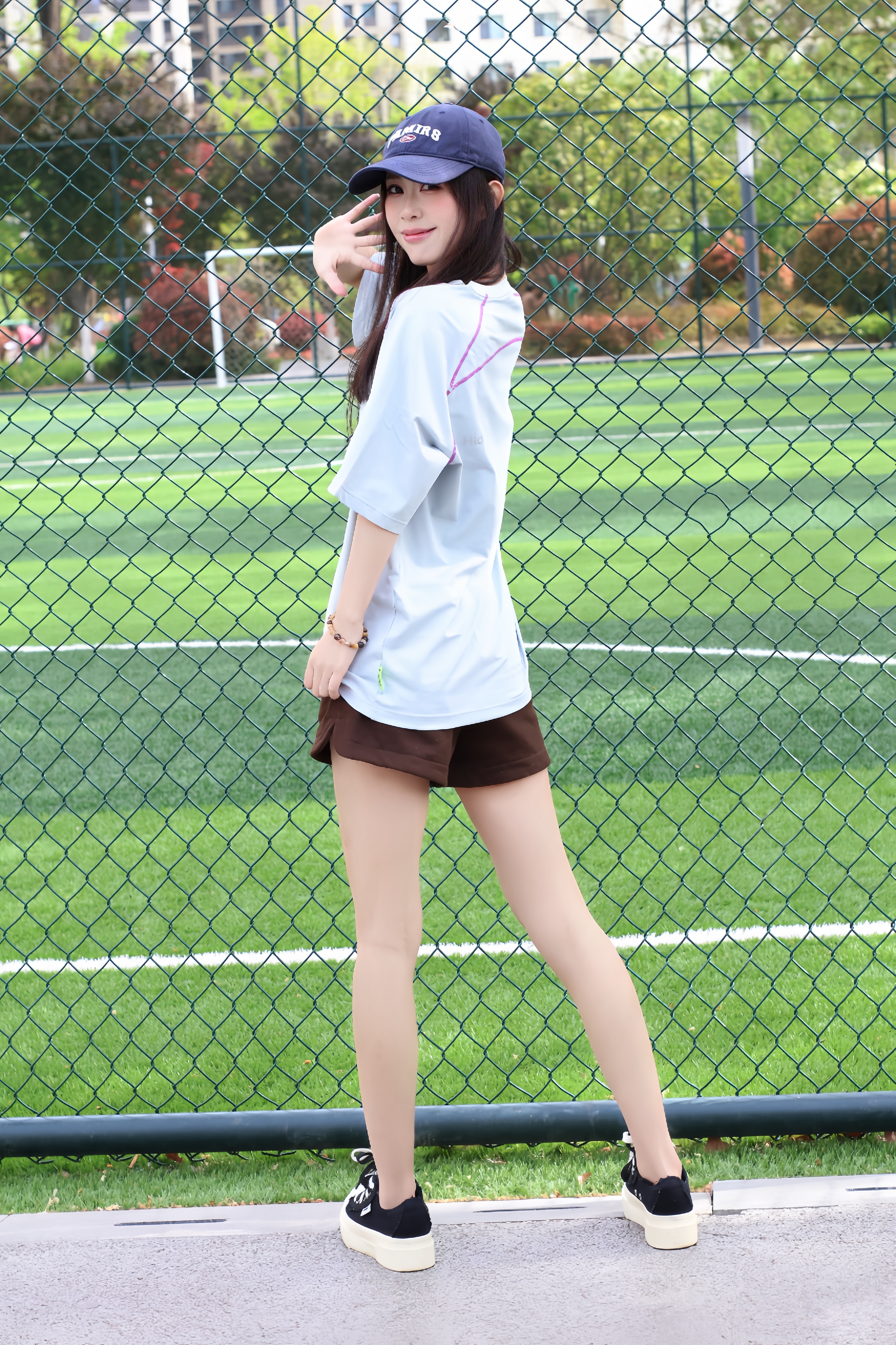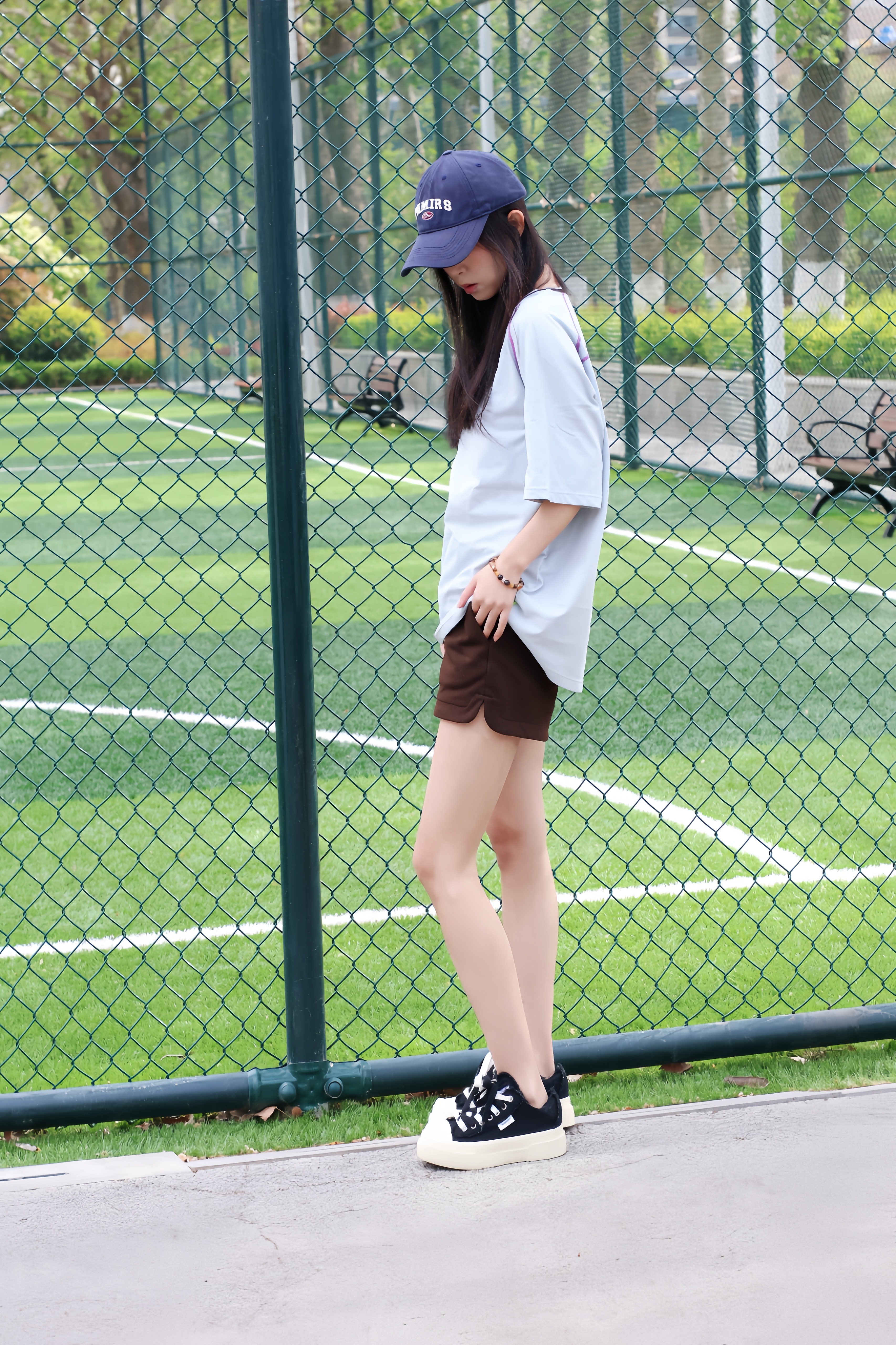 这套穿搭完全适配校园操场、街头漫步、日常出街,甚至短途出游。宽松的版型+透气的面料,既能应对夏日高温,又能在运动时无拘无束,是“舒服又好看”的完美范本。