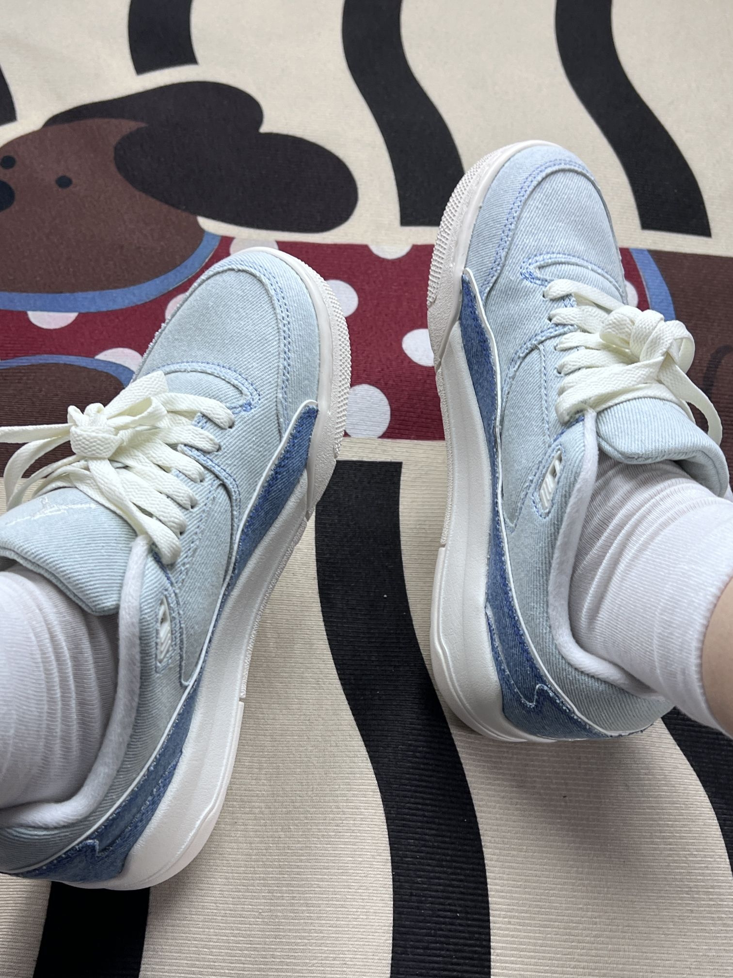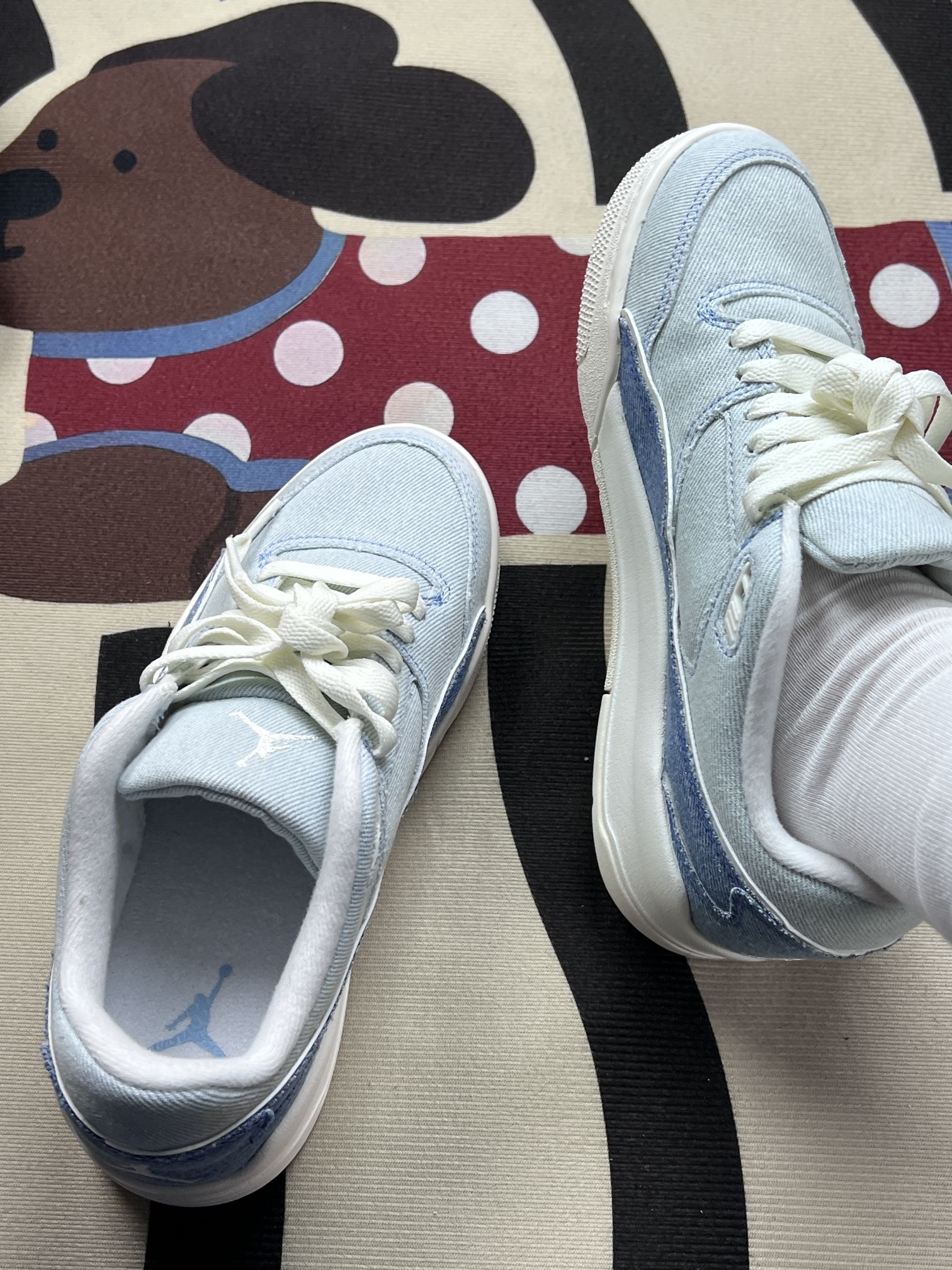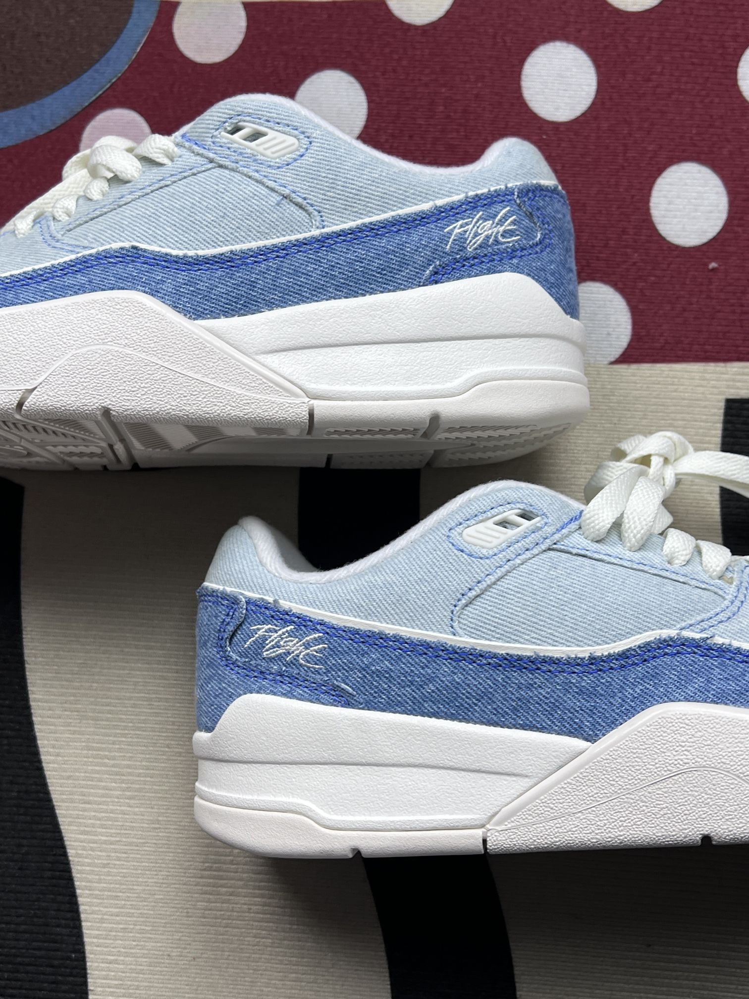 这双Jordan牛仔蓝低帮鞋,是我近期穿得比较多的一双日常鞋款👟 选它主要是被这个牛仔拼接的质感戳中了,浅蓝和水洗牛仔的渐变看起来很舒服,后跟的飞人刺绣也不突兀,搭牛仔裤、浅色系短裤都不费劲,日常出门不用费脑搭配。鞋型偏秀气,上脚不会显得笨重,走路的时候脚感也偏软,久走也没觉得脚底板累。 但穿了一段时间也发现了几个小问题:牛仔面料的部分容易沾毛,尤其是深色裤子的毛絮,每次出门前都得随手扫一...