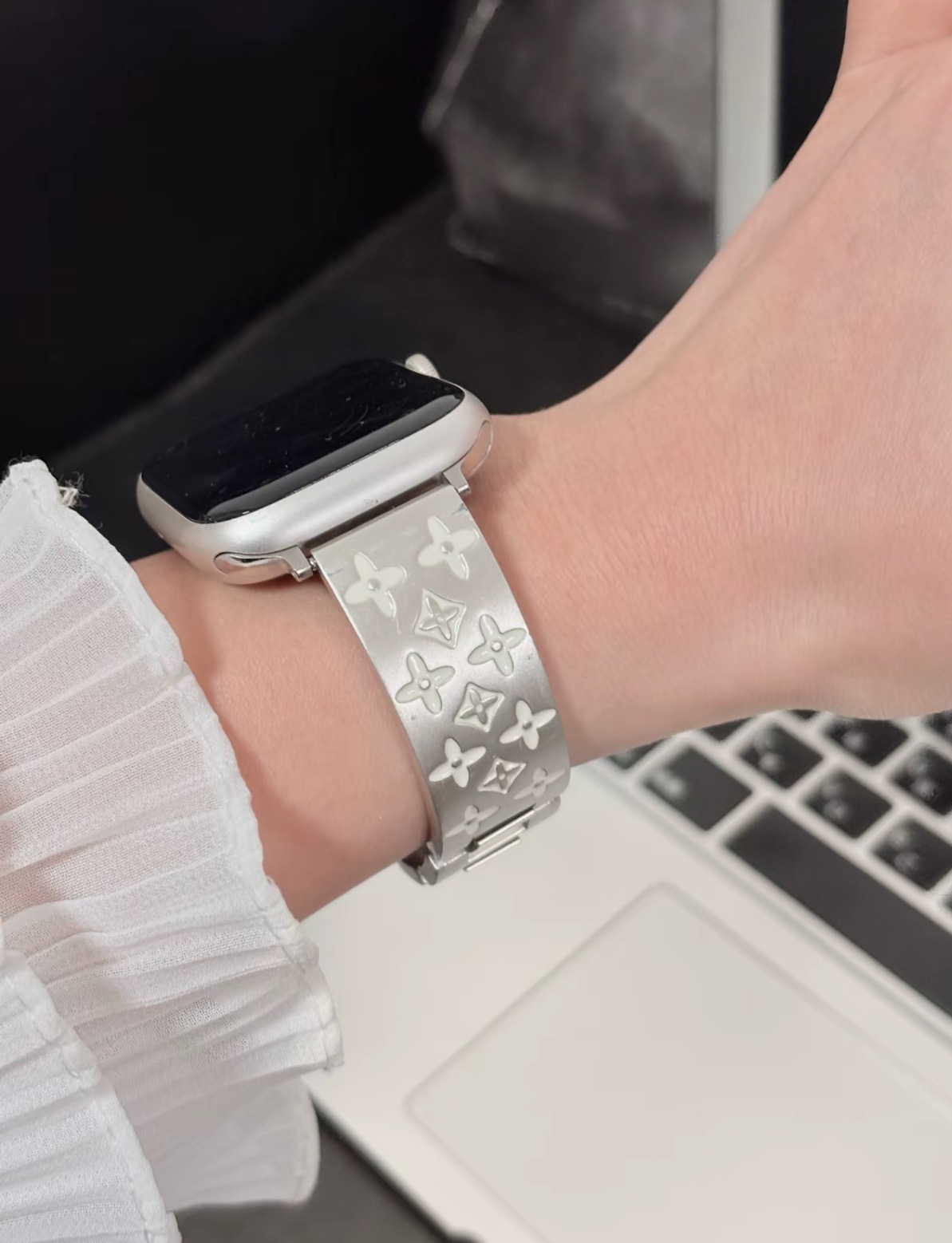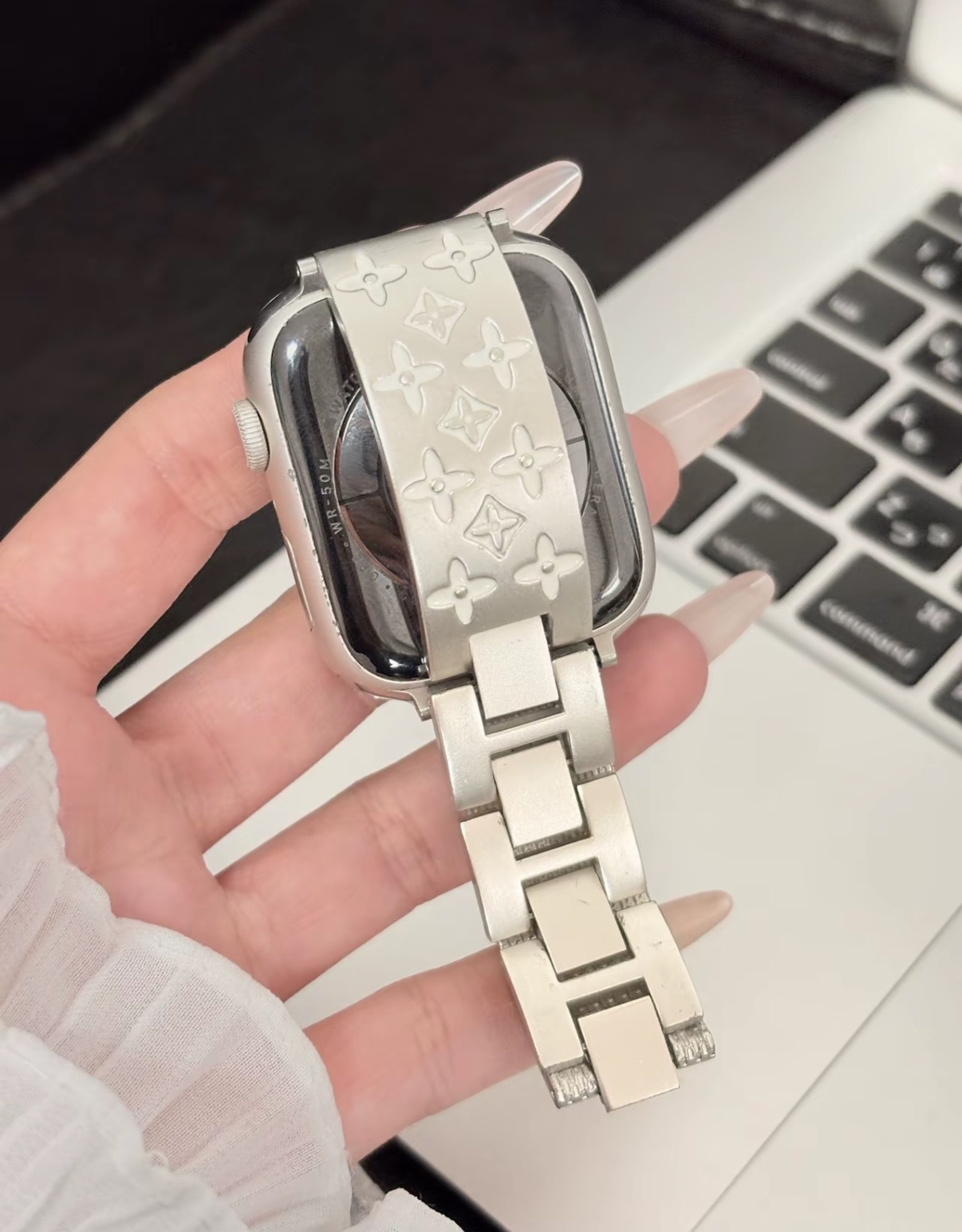 谁懂啊,iwatch本身平平无奇,但换对表带直接换了个表! 这条老花金属表带真的把贵气感焊死了,通勤戴显干练,日常搭休闲装也完全不违和,质感直接拉满。 #iWatch手表帯分享 #applewatch表带 #今日份宝藏苹果手表带 #iwatch表带分享 #applewatch表带