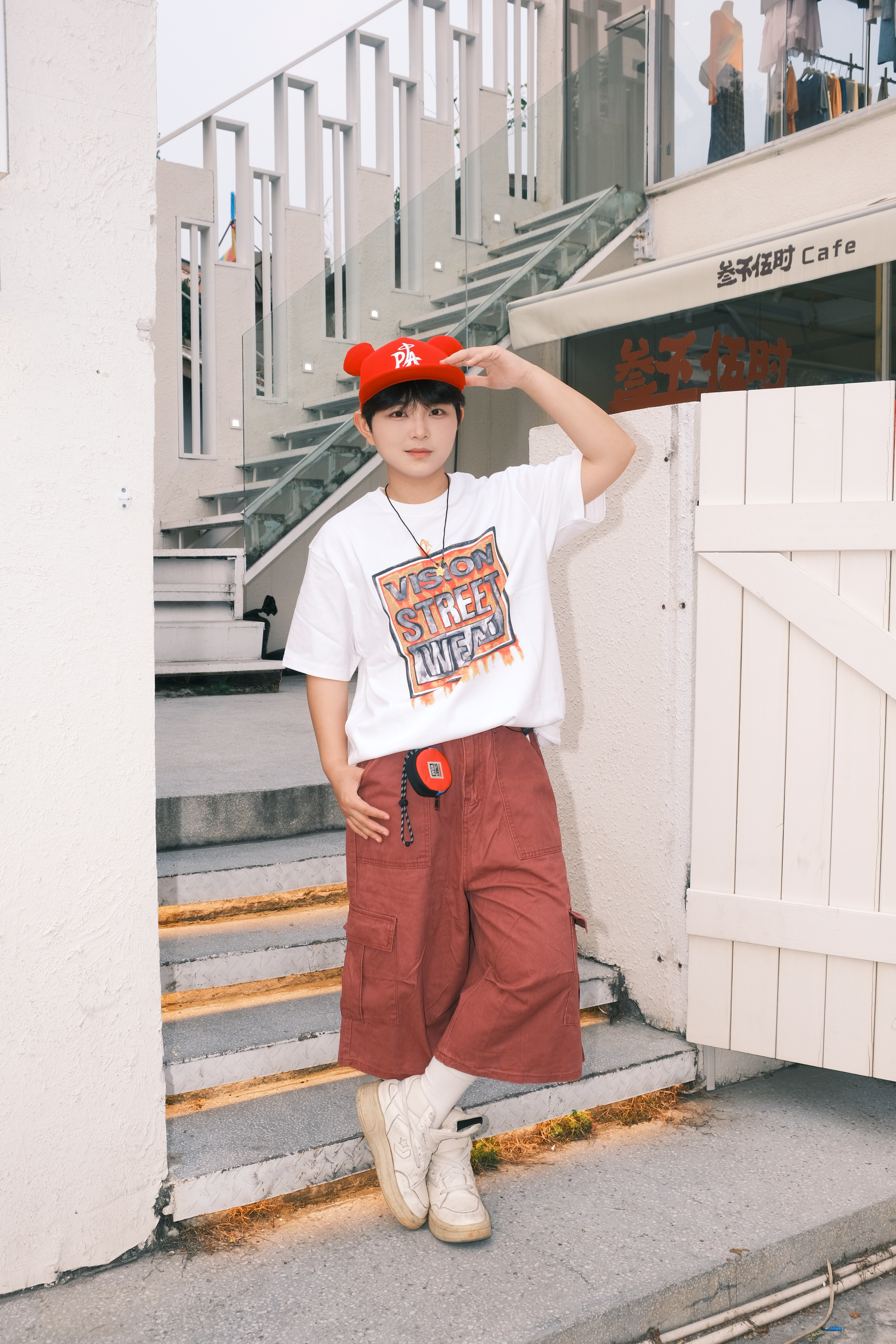 不被风格框住,自在表达就是无界美学。 白T+砖红工装中裤,自带松弛街头感 红帽点亮整体造型,瞬间拉满元气氛围 不刻意搭配,却处处透着鲜活✨ 色彩呼应的小细节,让造型更有呼吸感 没有固定公式,只遵从自己的喜好 舒服、自在,就是最好的状态🌿 日常出街、探店、压马路都适配 不用追赶潮流,只忠于自我风格 这就是Offduty无界穿搭,鲜活又自由