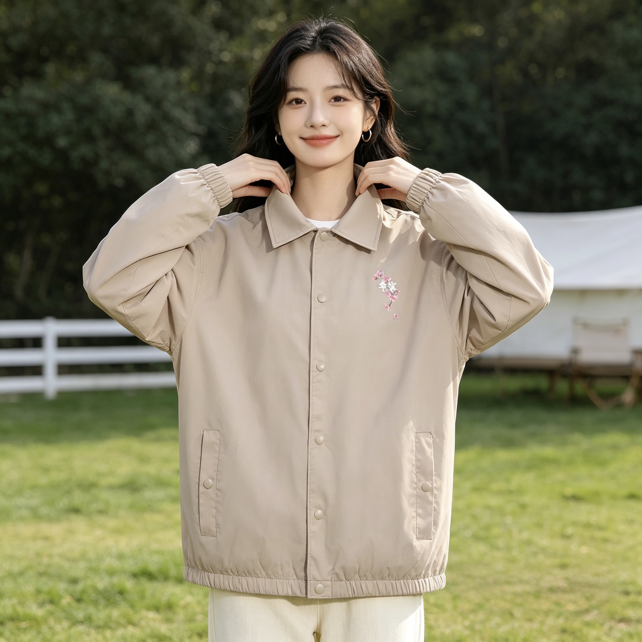 春天的风,和李宁这件樱花教练夹克,都温柔得恰到好处。 低饱和卡其色自带松弛滤镜,翻领版型修饰肩线,胸口的樱花刺绣是点睛之笔,低调又藏着浪漫小心思。 面料轻薄透气,风大的时候套上刚好,在草坪上随便一拍都是满满的春日氛围感,真的太适合踏青啦~