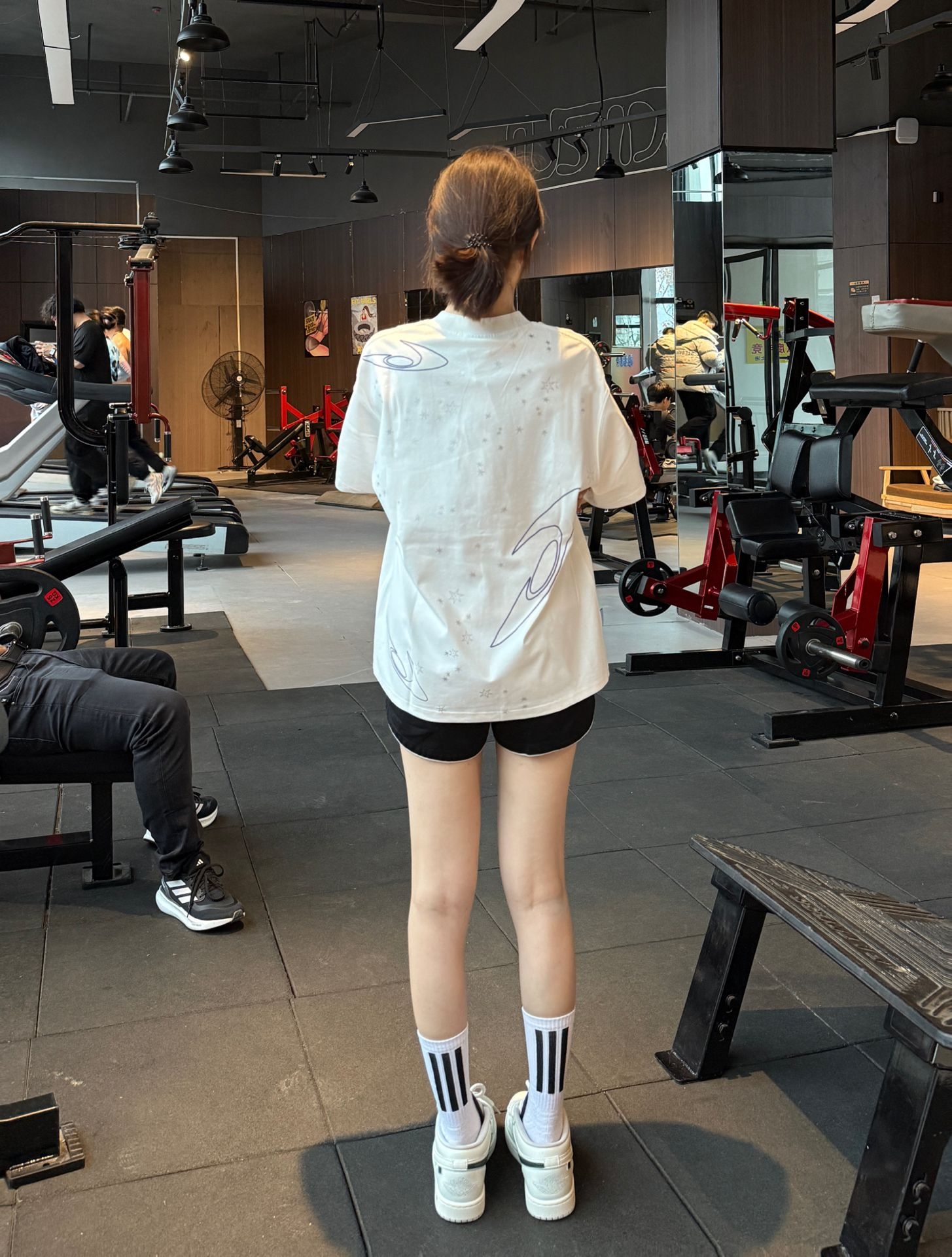 今天运动穿all white 很喜欢这种穿搭~ 鞋子特别舒服 很适合用来练臀腿穿捏⚾️ 脚感不硬 白色和绿色的颜色搭配设计的很特别 搭配的一件背后有星空的短袖 很有反差 🌟 面料是纯棉的 穿上运动很透气(*ˉ︶ˉ*)