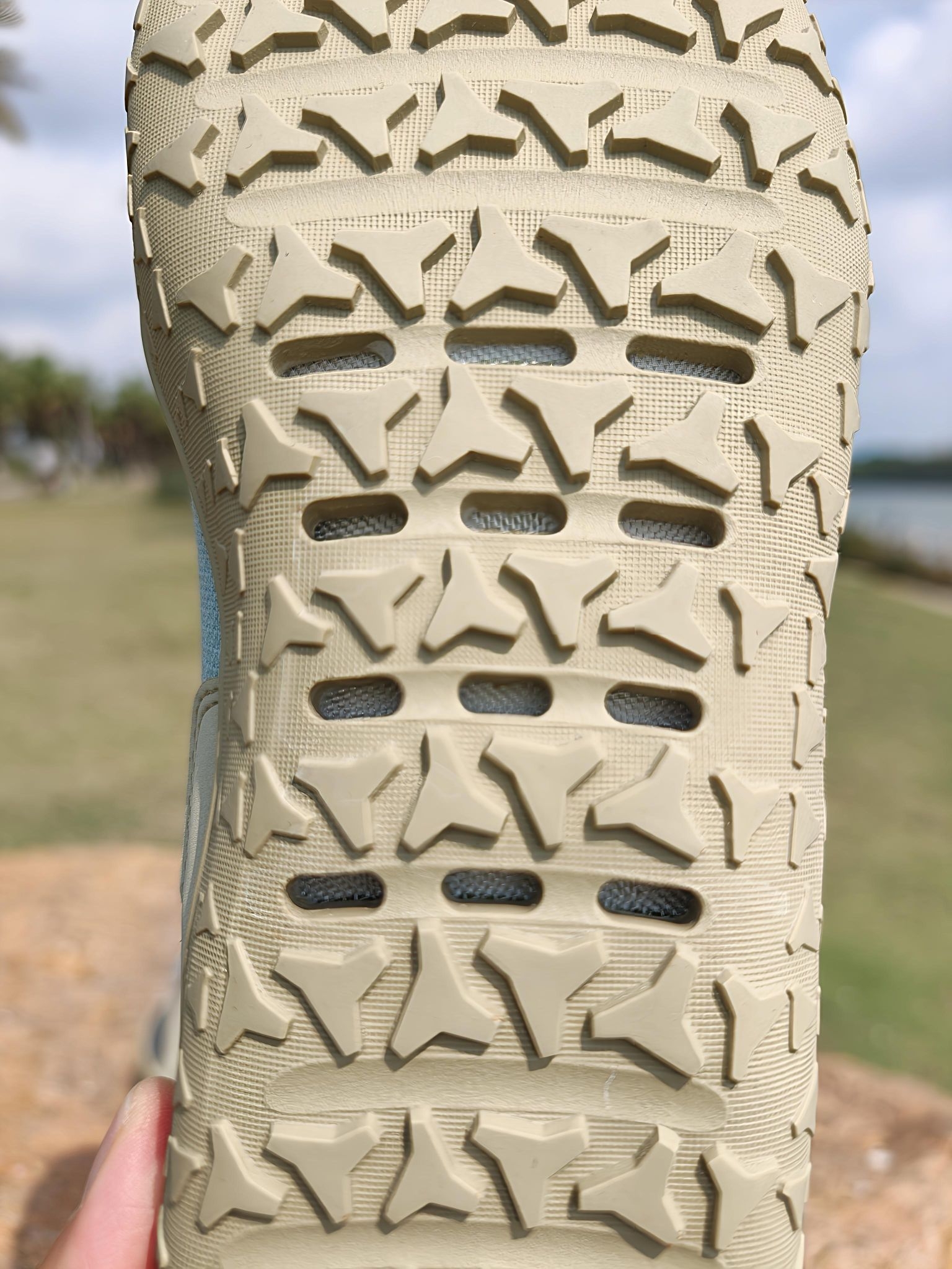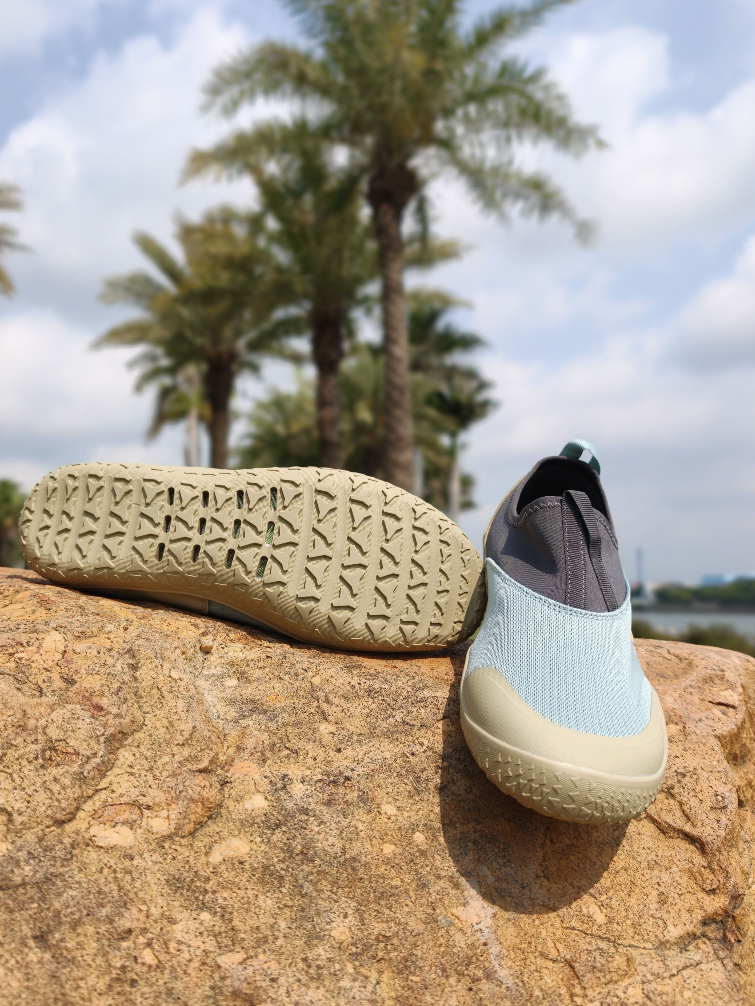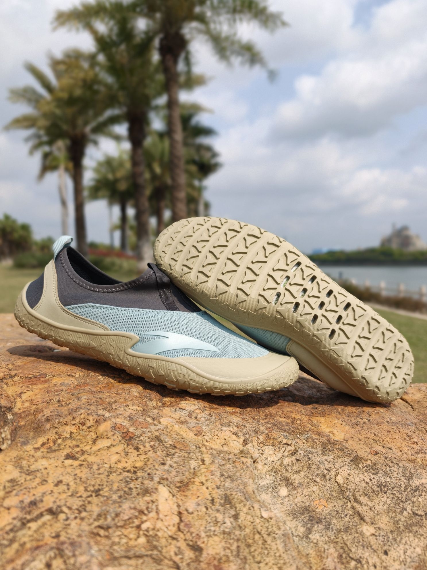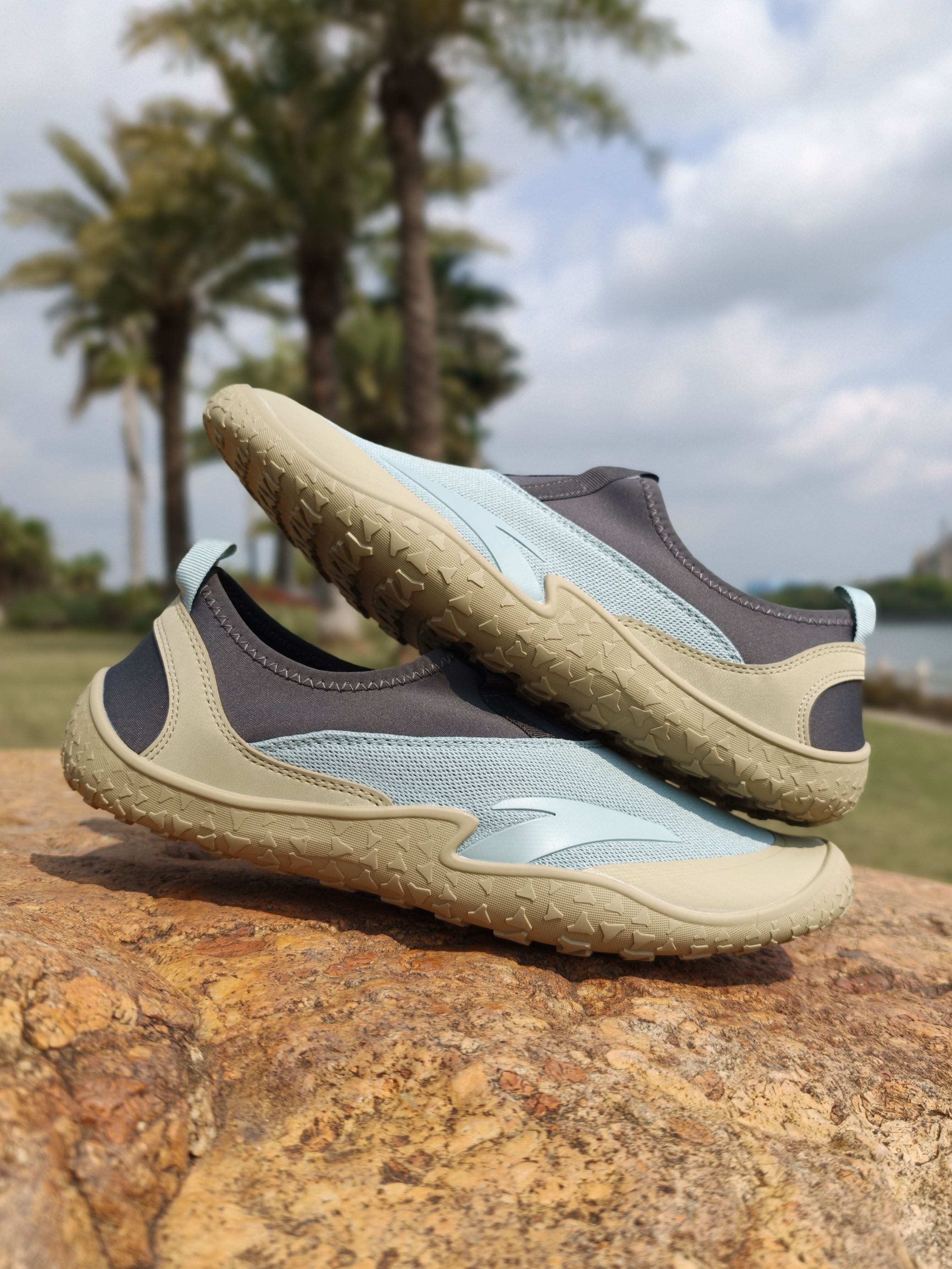 ♚周末了必须放空一下自己☁ 🌊这次去海边踏青踩水, 🌞果然出来走走真的能让人心情愉悦起来😁 穿安踏这双探野是真的不错❌ 青灰黄配色上脚很耐看, 轻到像没穿鞋似的, 赤足感直接拉满。 鞋底还有透气网眼, 透气不闷脚,踩水速干还防滑, 🏝️沙滩礁石走一路都挺稳当的, 🌴开年的第一双户外鞋没选错♚