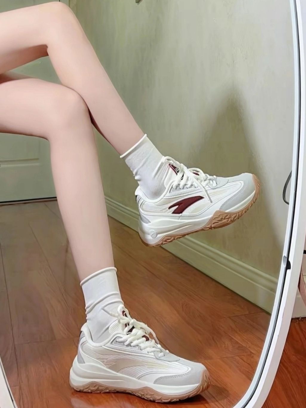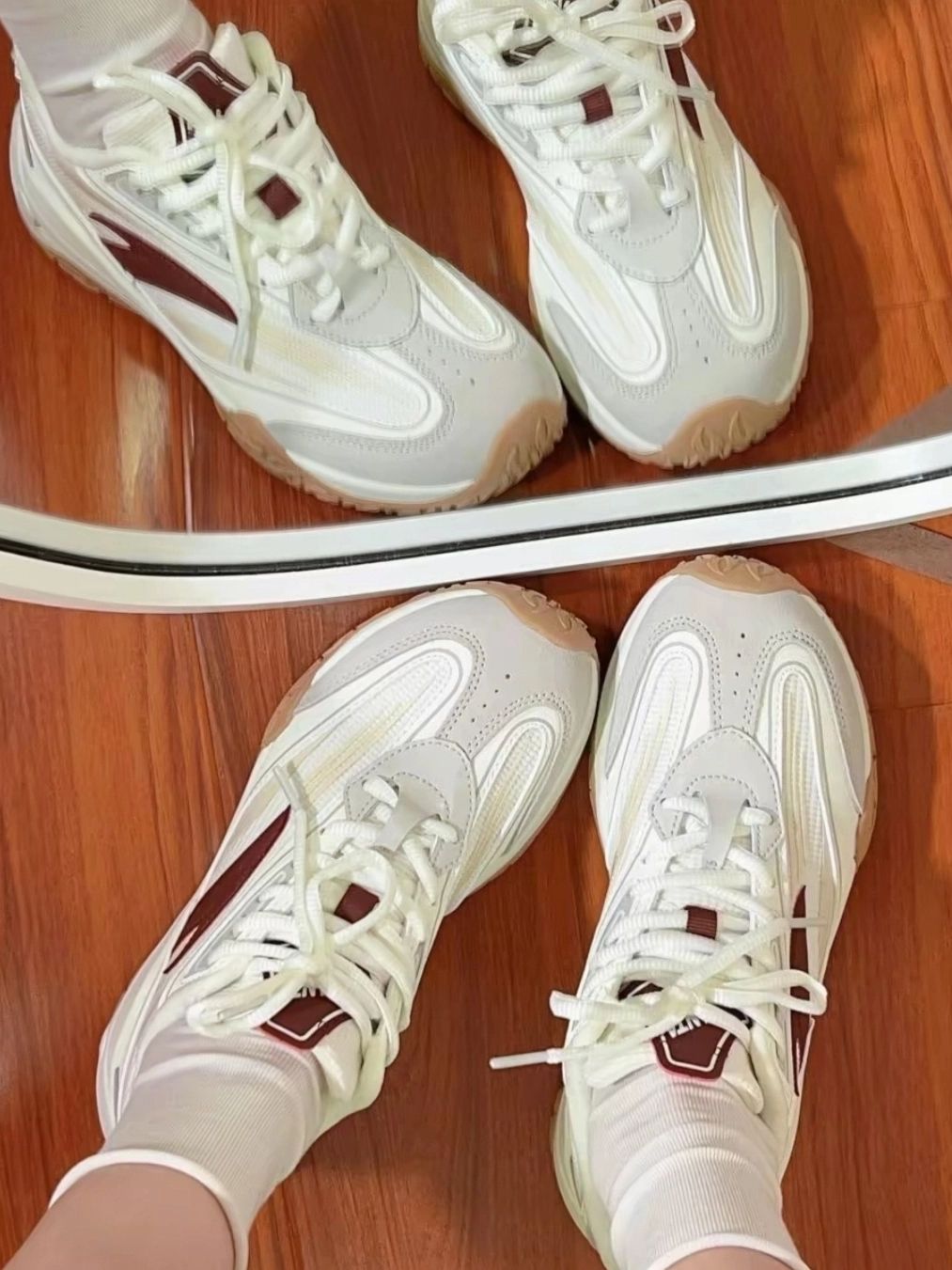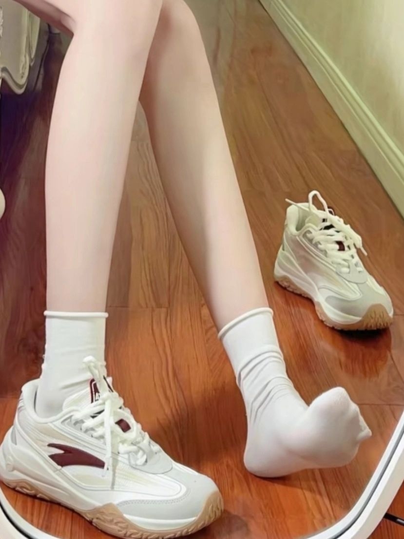 红白配色的年糕鞋搭冰冰袜真的特别搭! 是哪个小宝宝还没入这双安踏宝藏鞋
