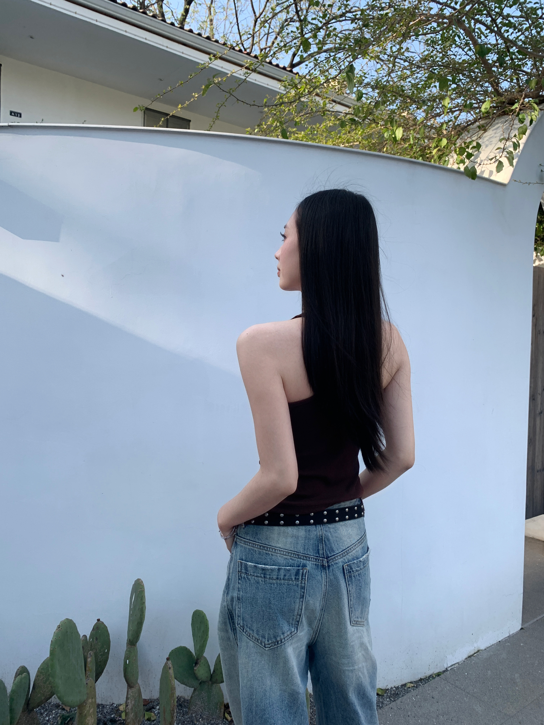 红棕色修身吊带太绝了!短款剪裁秒露小蛮腰,修身版型勾勒身材曲线,显白又显瘦,辣妹感直接拉满。搭配做旧水洗蓝阔腿牛仔裤,复古感拉满,宽松版型藏肉显瘦,秒变大长腿! 点睛之笔是铆钉皮带,美式复古感直接拉满,再配个十字架项链+细手镯,细节感满满!日常出街、约会穿都超合适,阳光底下拍照巨出片,辣妹直接锁死这套!