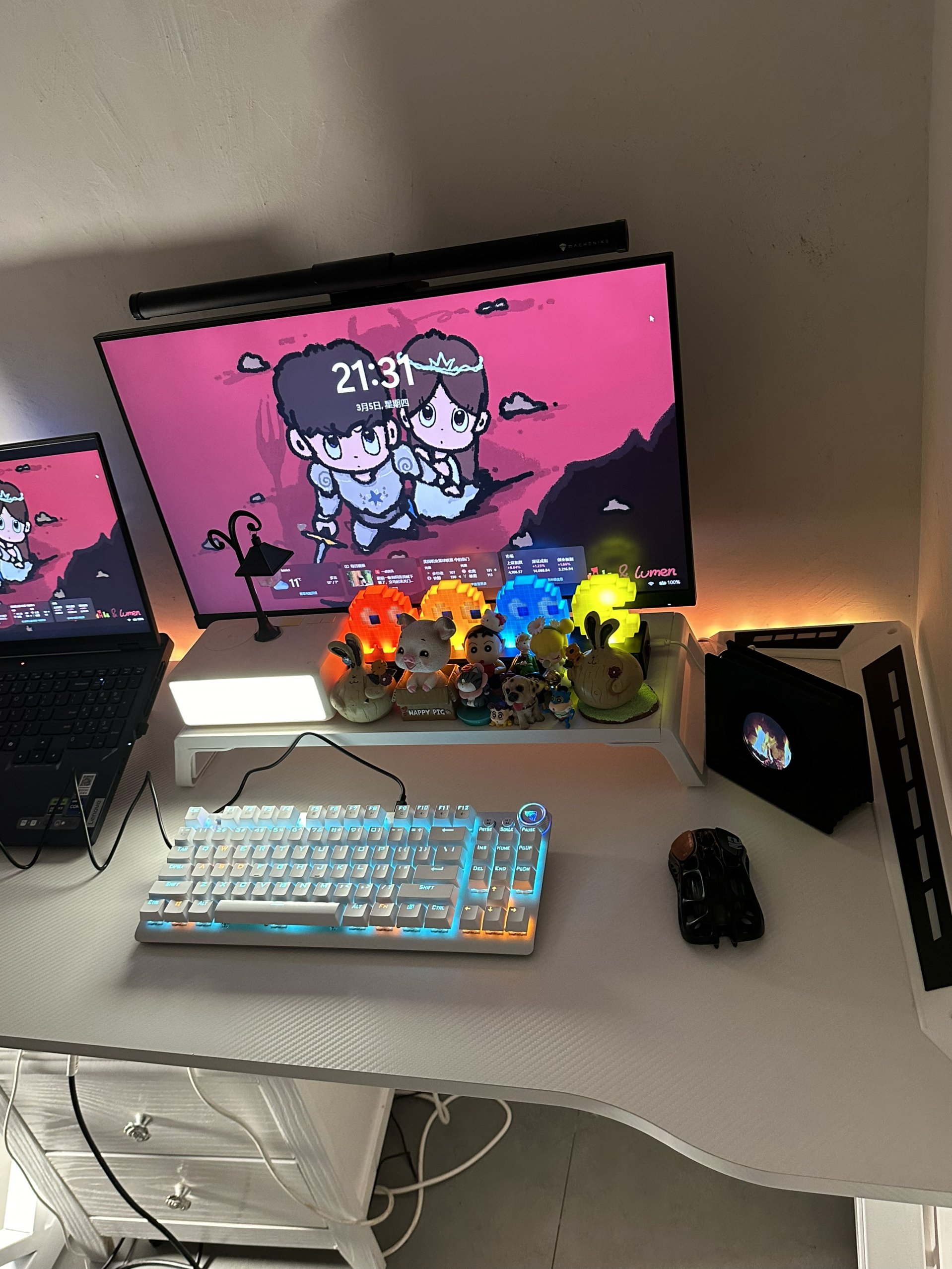 临近五一,最近也是爱上了打游戏🎮,给自己配上了一个像样的桌搭! 入手的23.8英寸的AOC显示器 打游戏🎮、追剧确实舒服许多 有时候不打游戏都会坐在这面前 很惬意很放松 自己搭一个桌搭确实很开心! 狼蛛的机械键盘敲击感还不错 打FPS游戏似乎差了点!