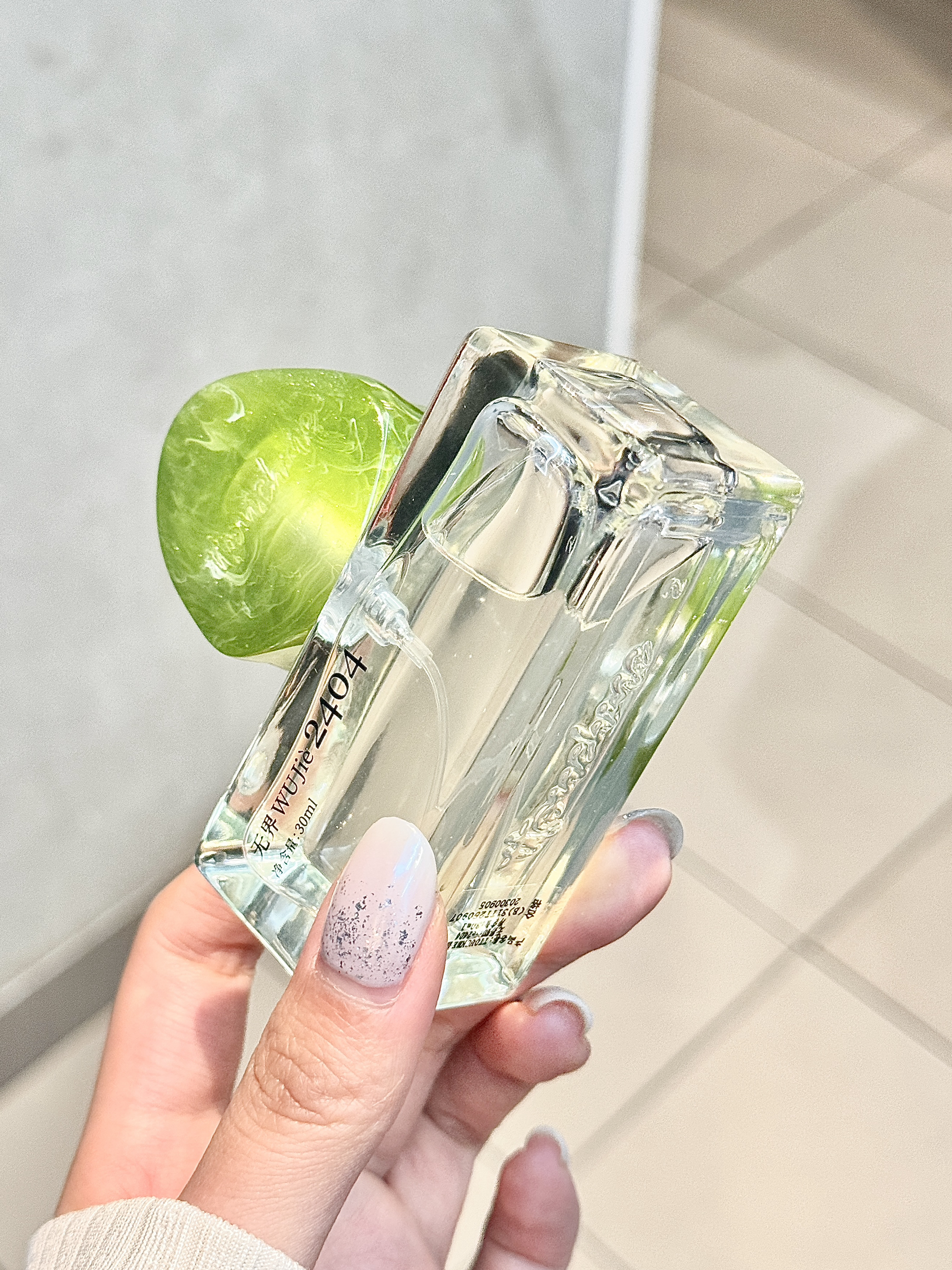 真的为介个香味着迷 是ttouchme2404无界香水 很清透的青苹果的颜色🍏 味道hin香甜~闻着尊嘟想咬一口! 前调是柠檬与茶叶的清香 中后调茉莉青提香 吼吼闻 整体感觉就是干净明媚 让人闻着很斯哈~