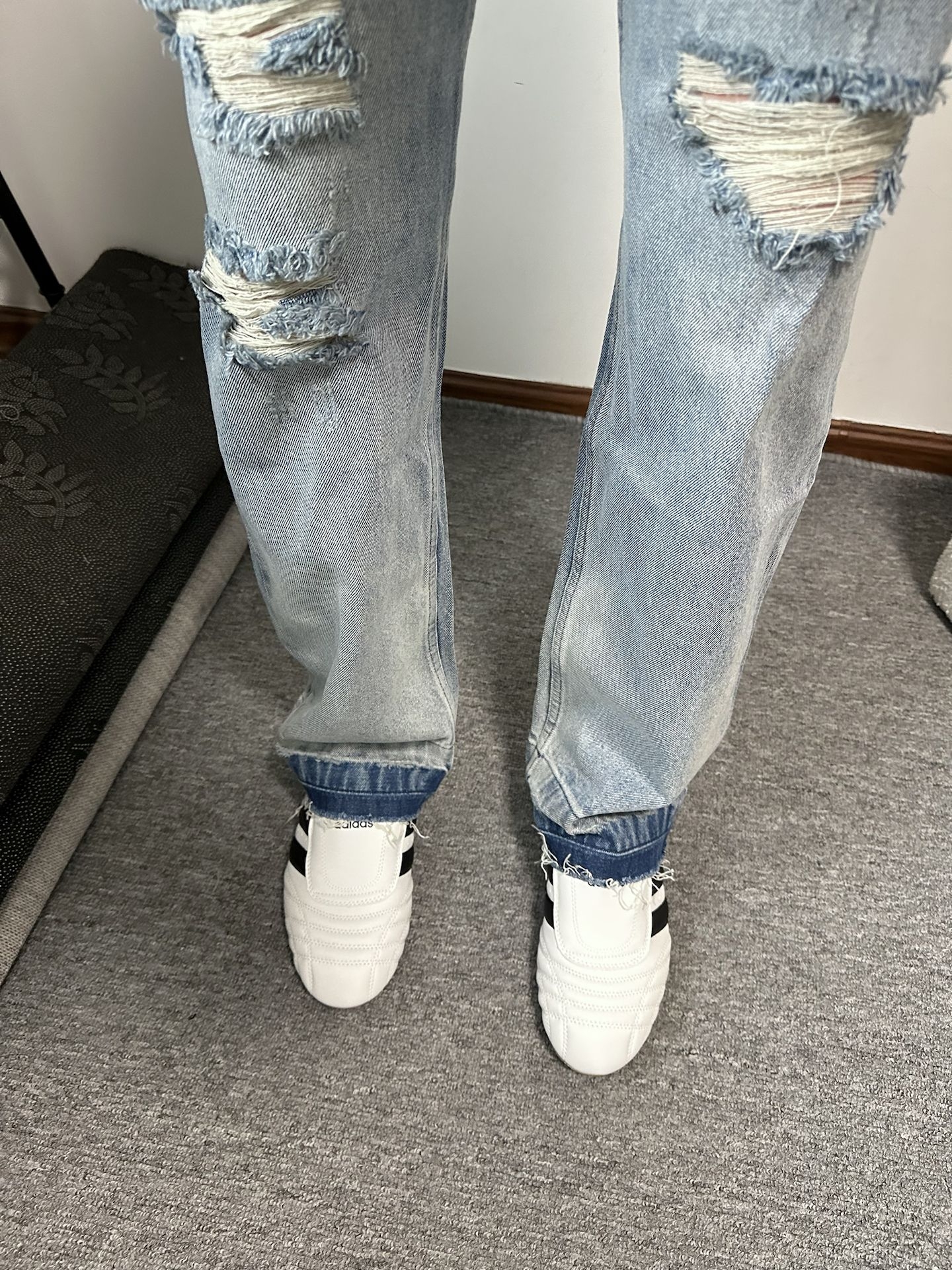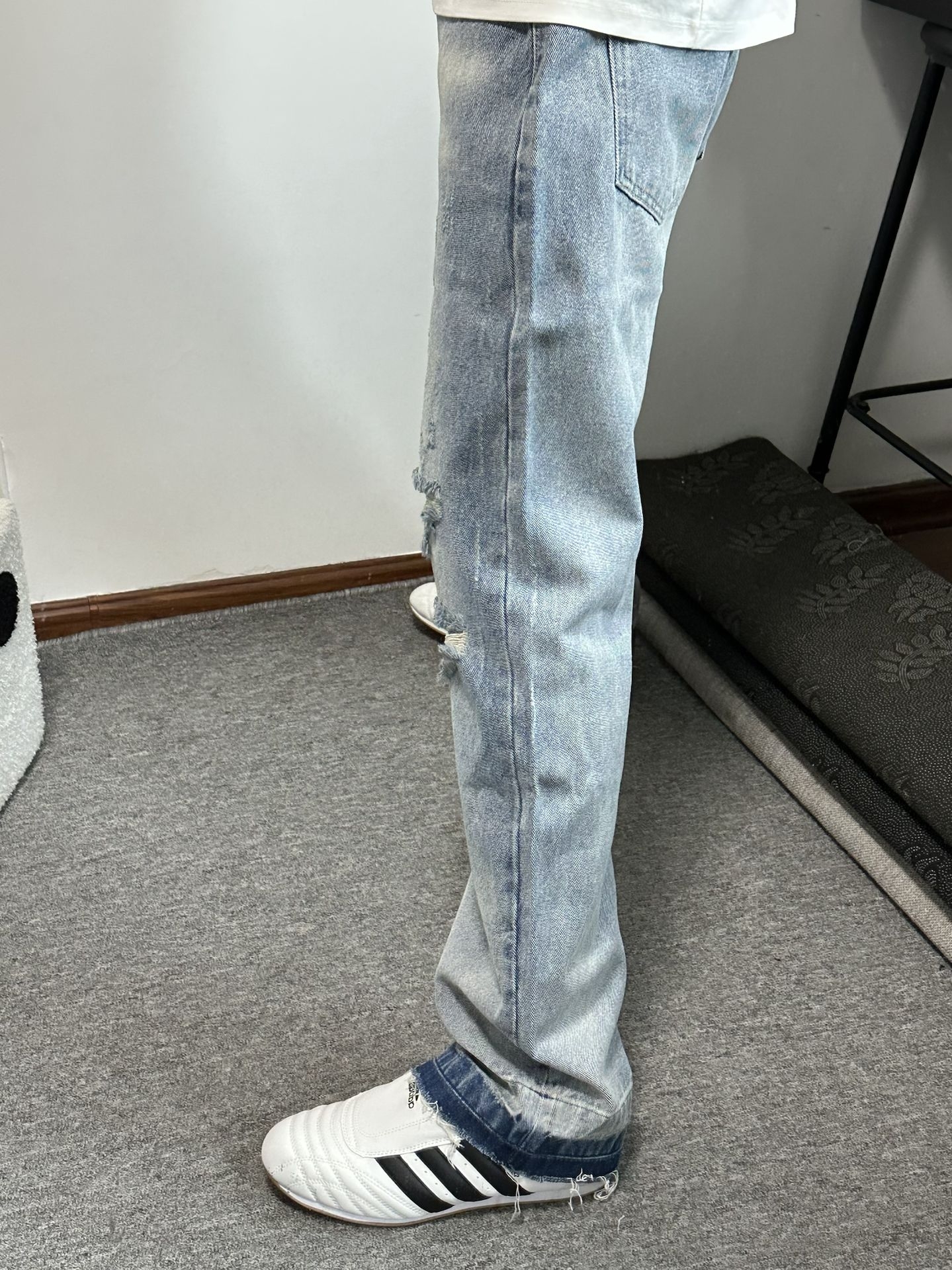 不帅的裤子我不穿!!|||哈哈哈不得不说水洗蓝牛仔裤好适合春天呀🍃 裤子破坏设计感满满嘿嘿~随便搭配个小白鞋也很酷! 春天日常出游就这么穿啦回头率拉满!! #裤子选的好穿搭没烦恼 #这条裤子我必买 #今日份穿百搭牛仔裤 #赶时髦春游ootd #爱不释腿的早八神裤