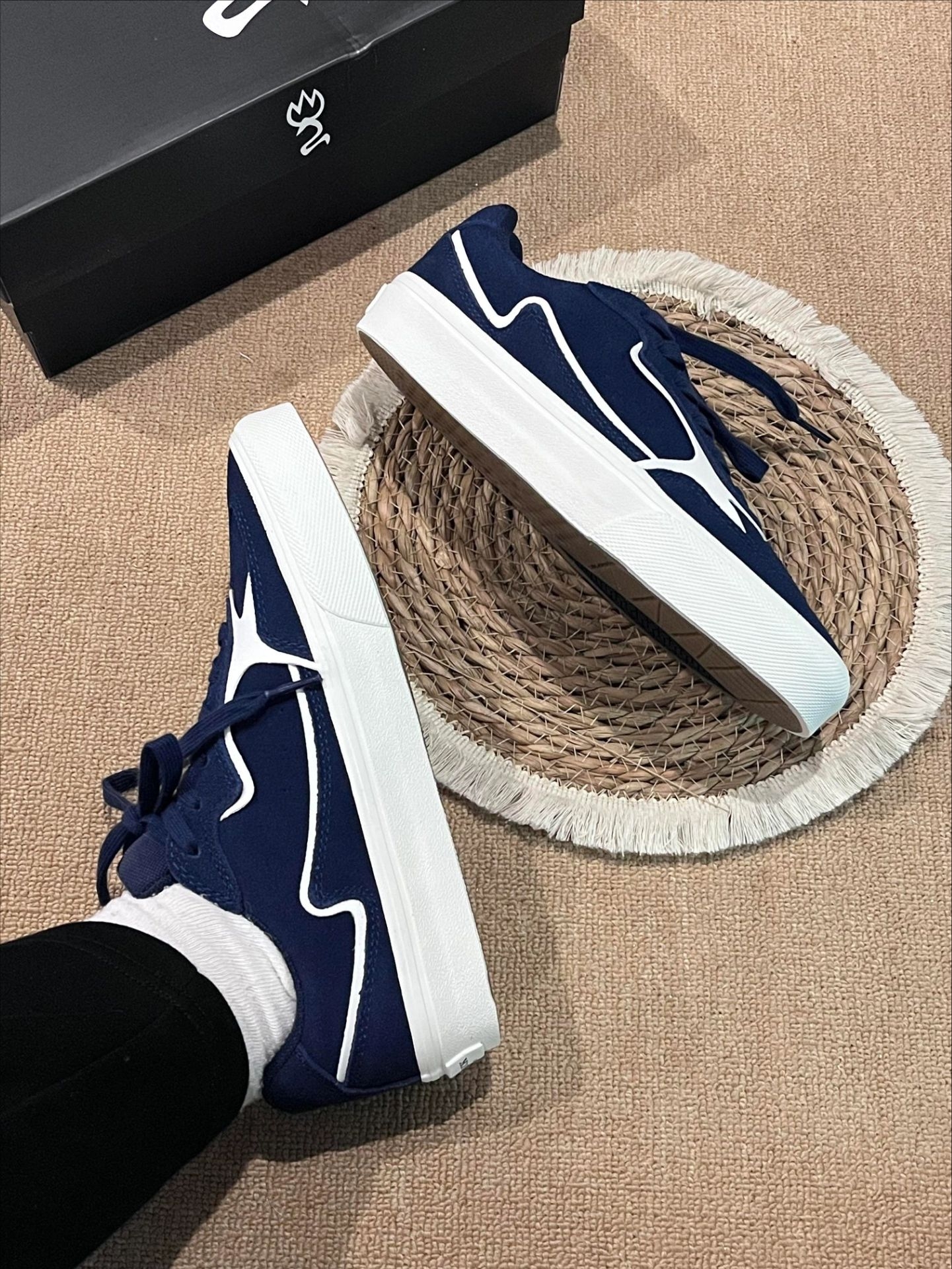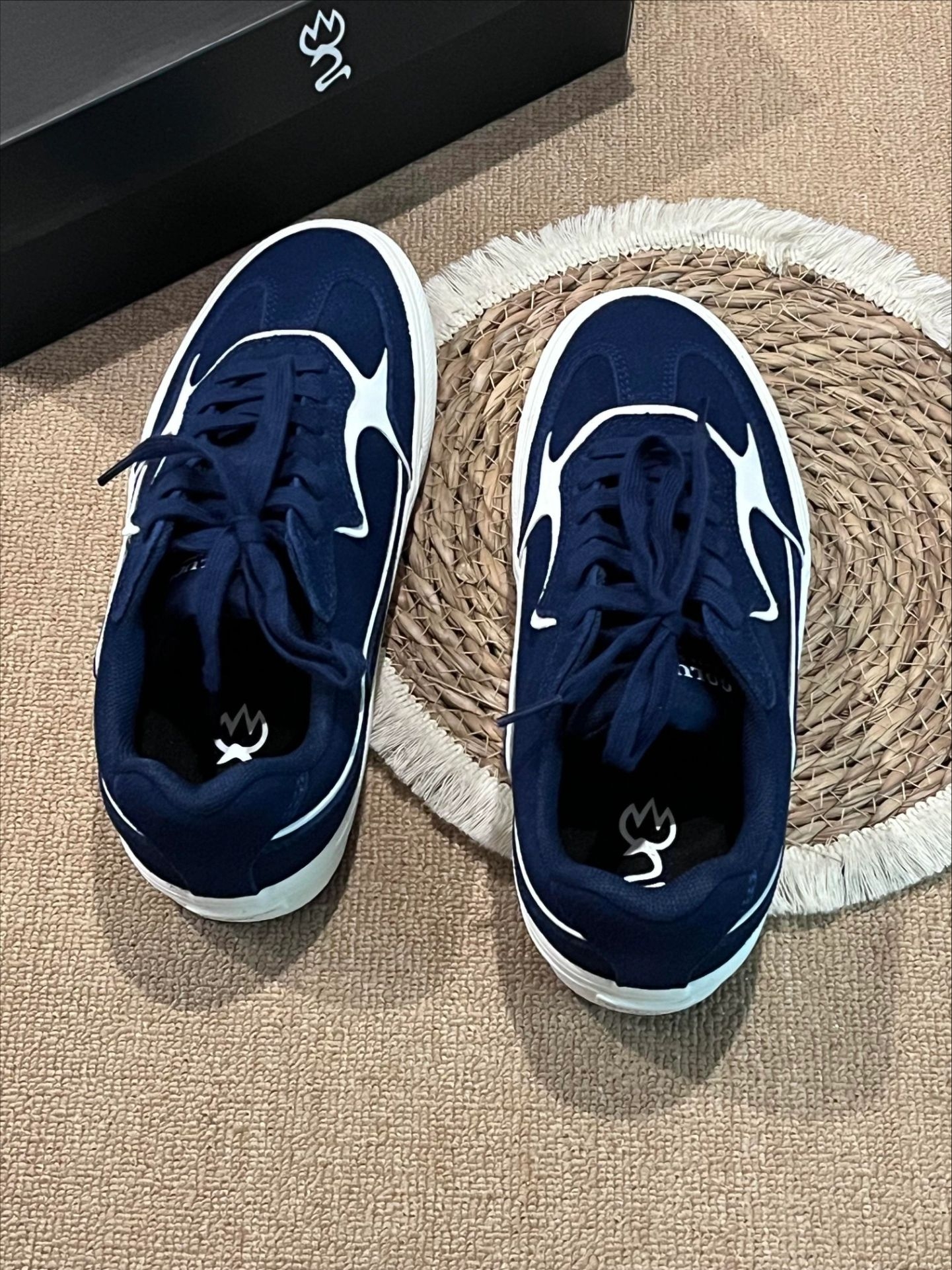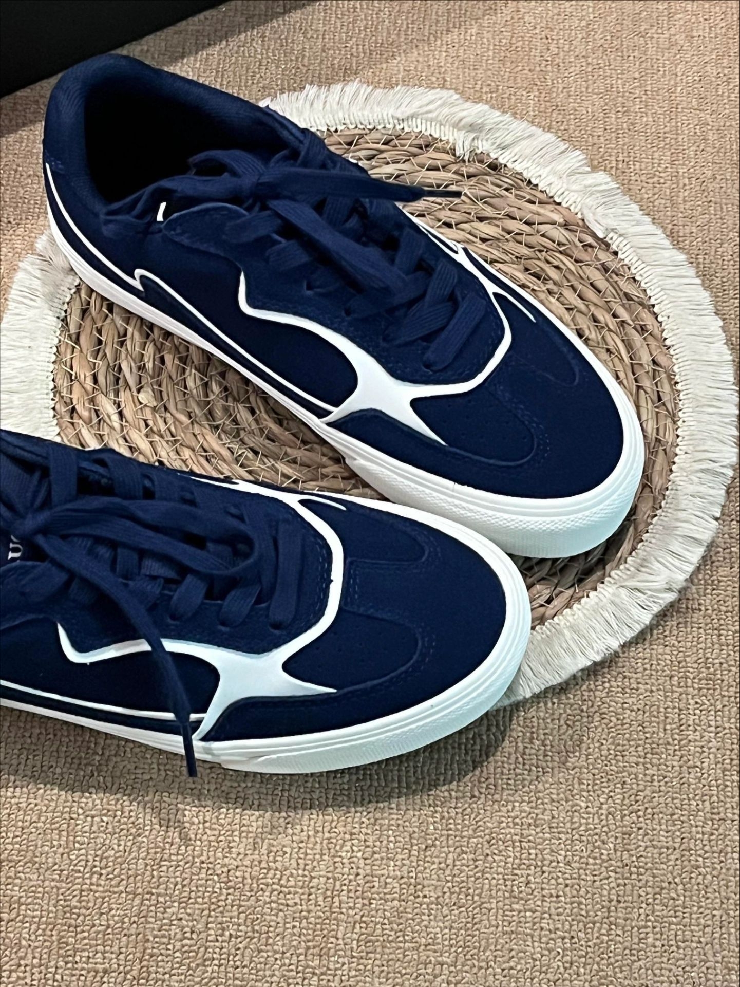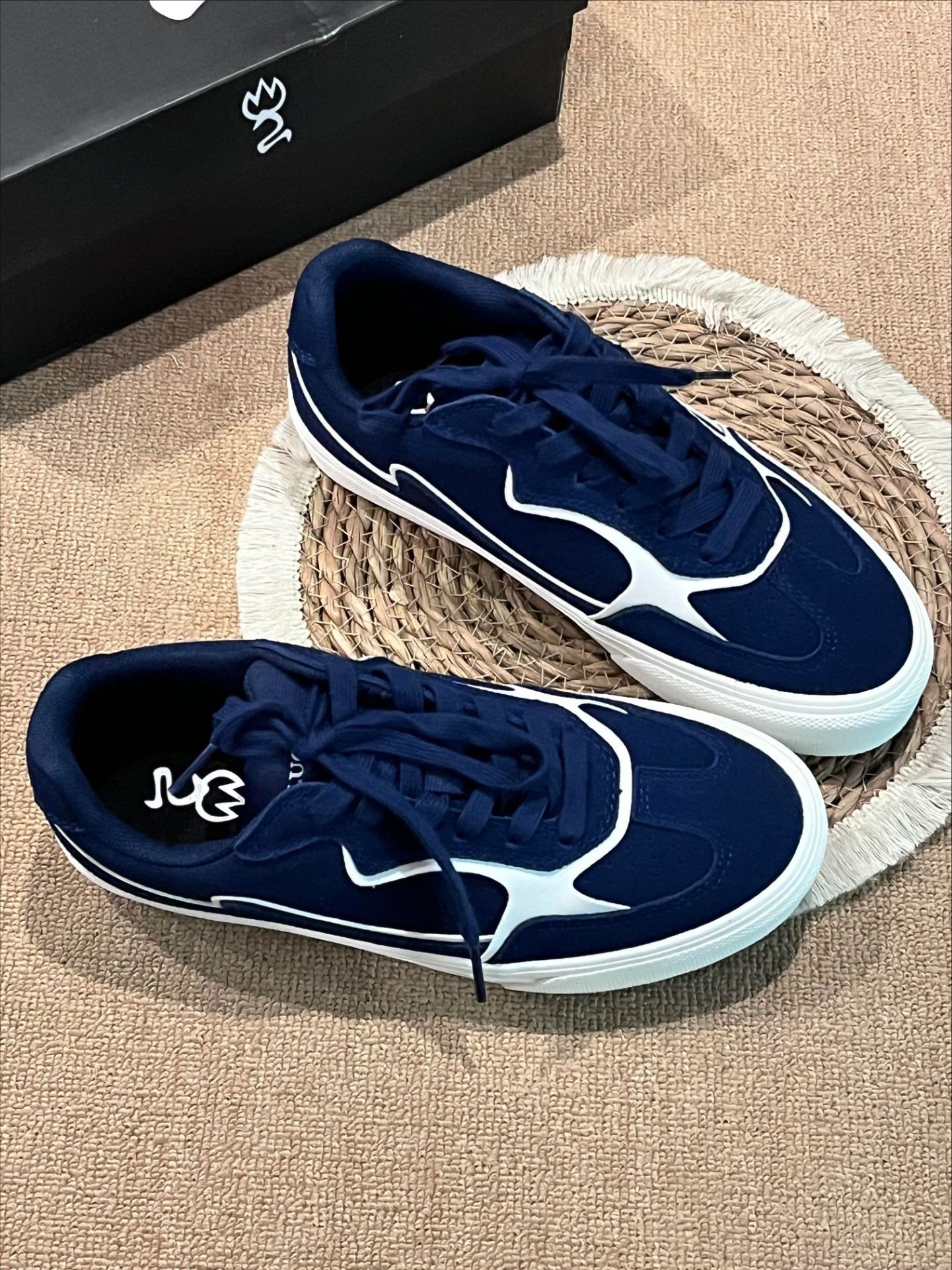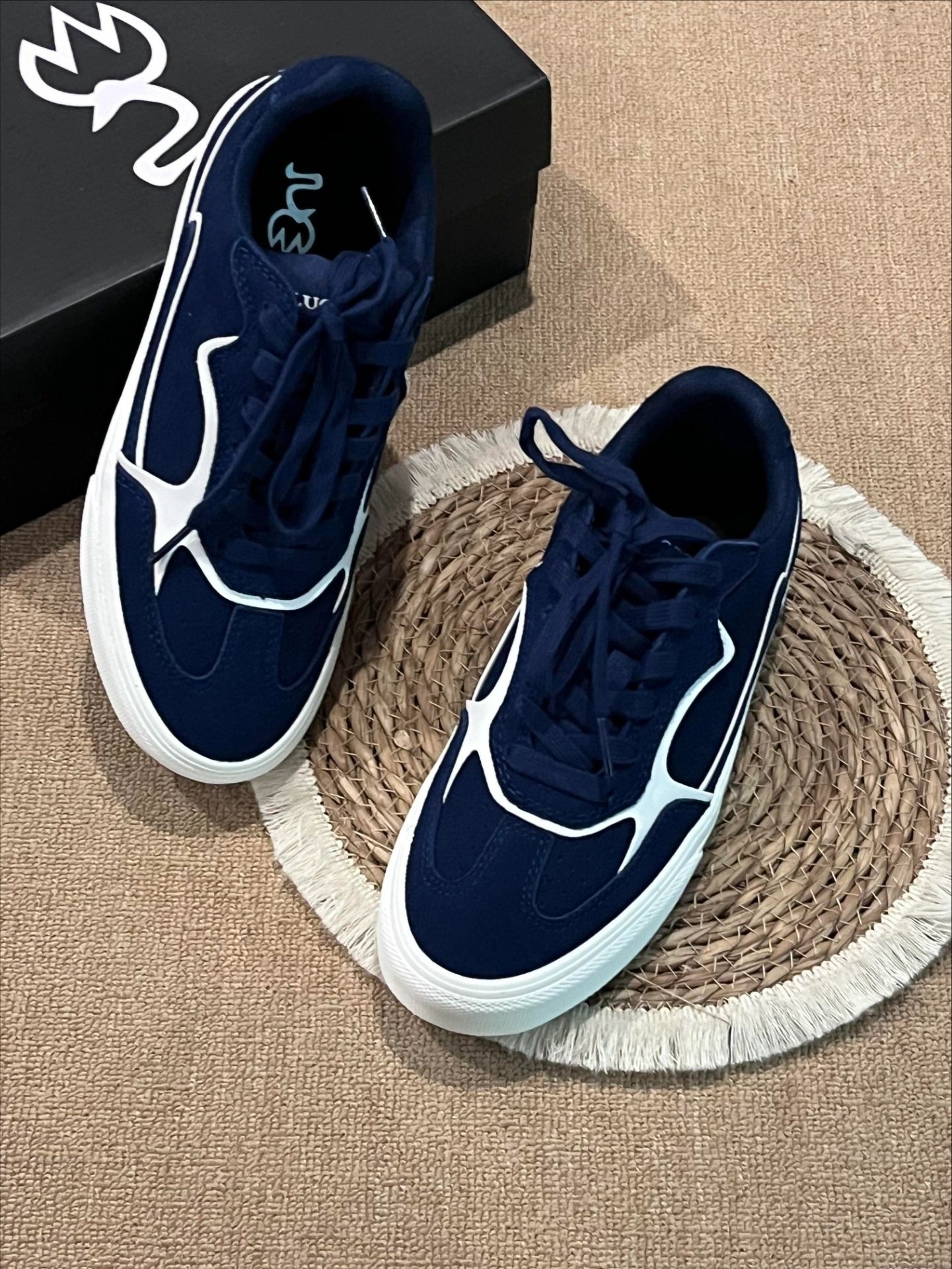 复古控必入的宝藏板鞋✨颜值直接封神! 高级藏青主色调搭配白色线条勾勒,简约又有设计感,小众不撞款,摆脱烂大街款式。 鞋底柔软防滑,鞋面耐脏好打理,日常懒人福音。 上脚自带韩系少年感,不管是休闲风、简约风还是慵懒风穿搭都能完美适配,男生女生都能冲,日常出门随便搭都好看,平价小众又高级,闭眼入不踩雷!