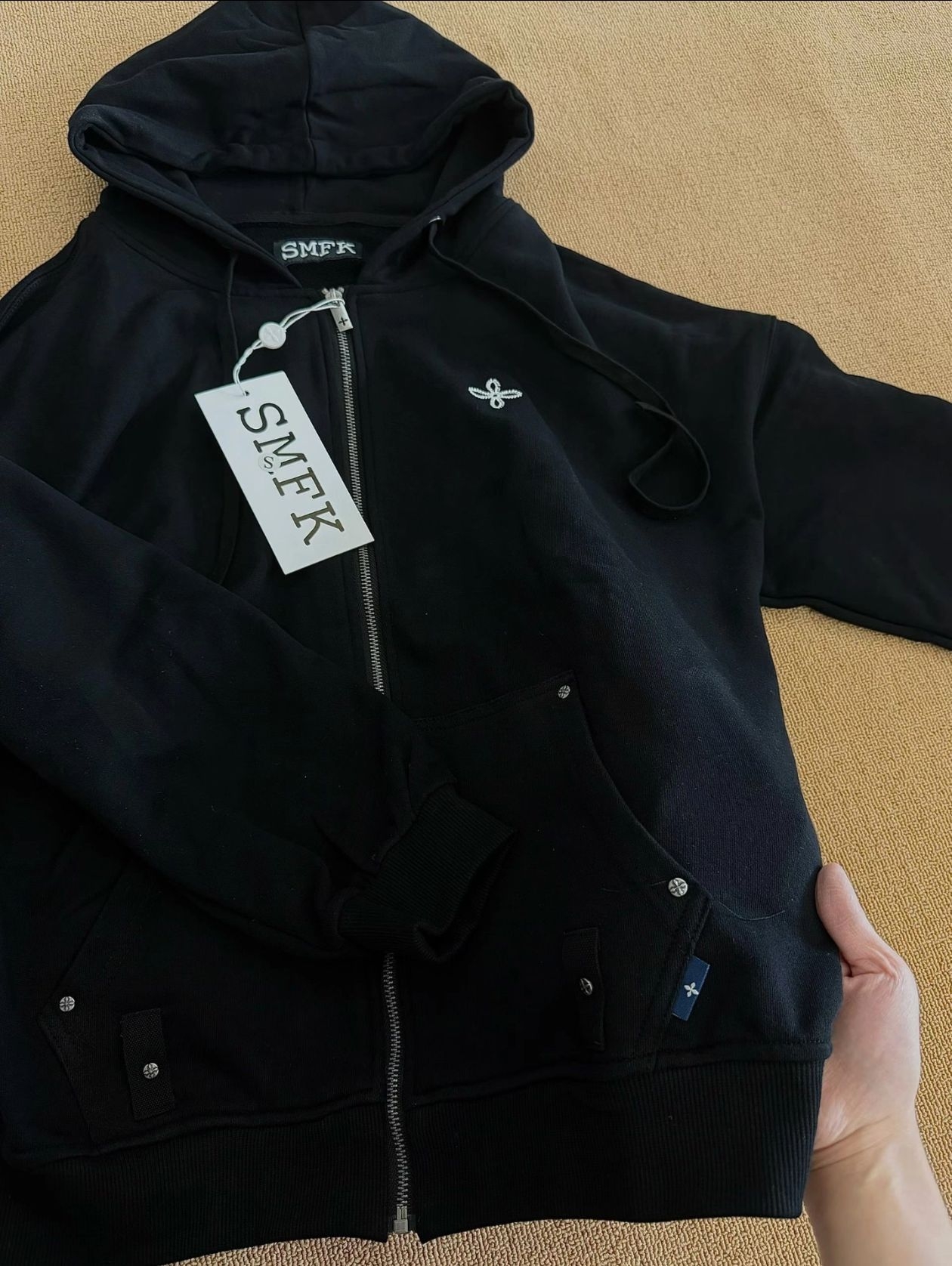 本篇笔记关联了【张佳宁同款】SMFK 纯色透气十字花阔身拉链连帽卫衣 荒野黑等商品,为用户提供真实的使用体验和购买参考。