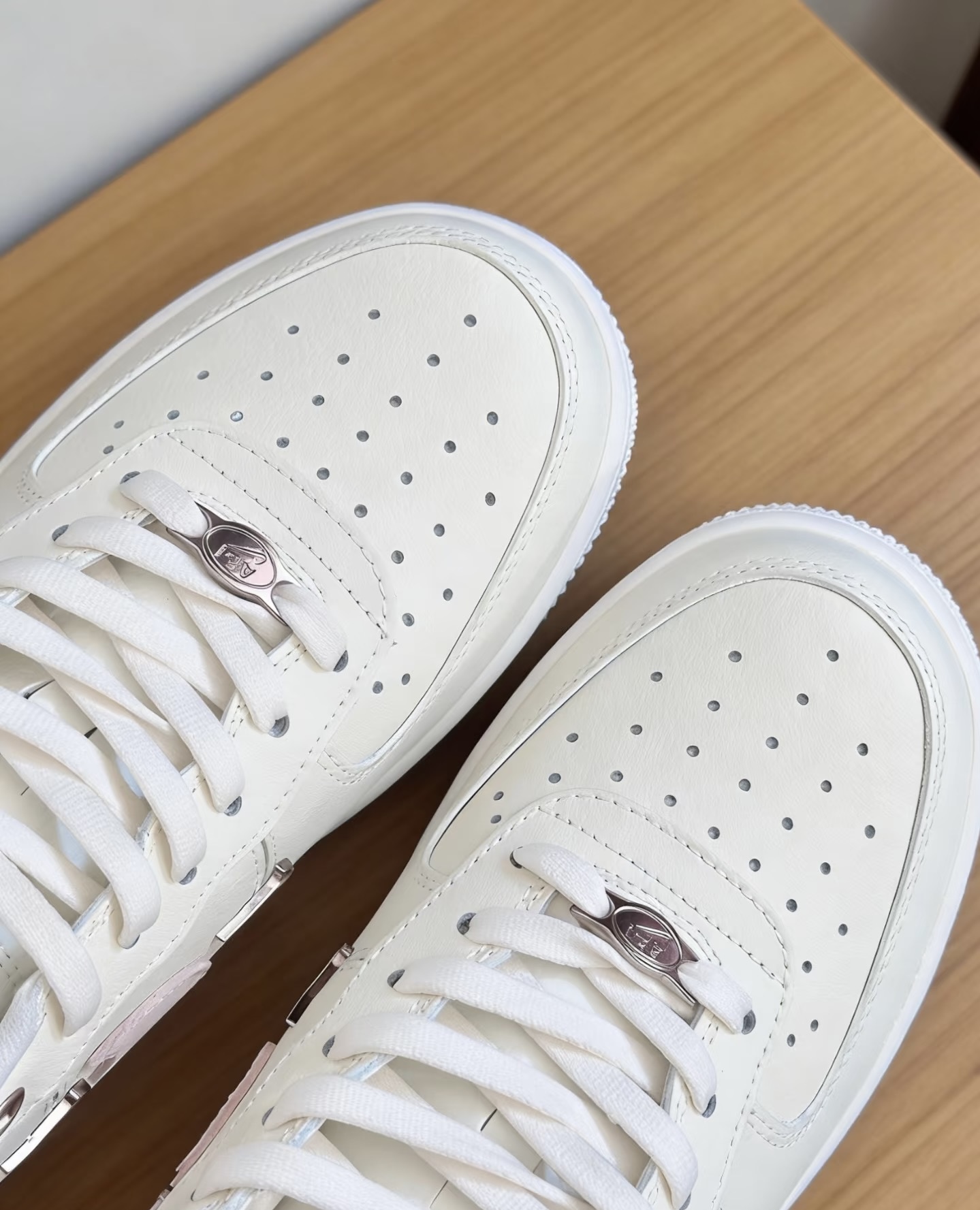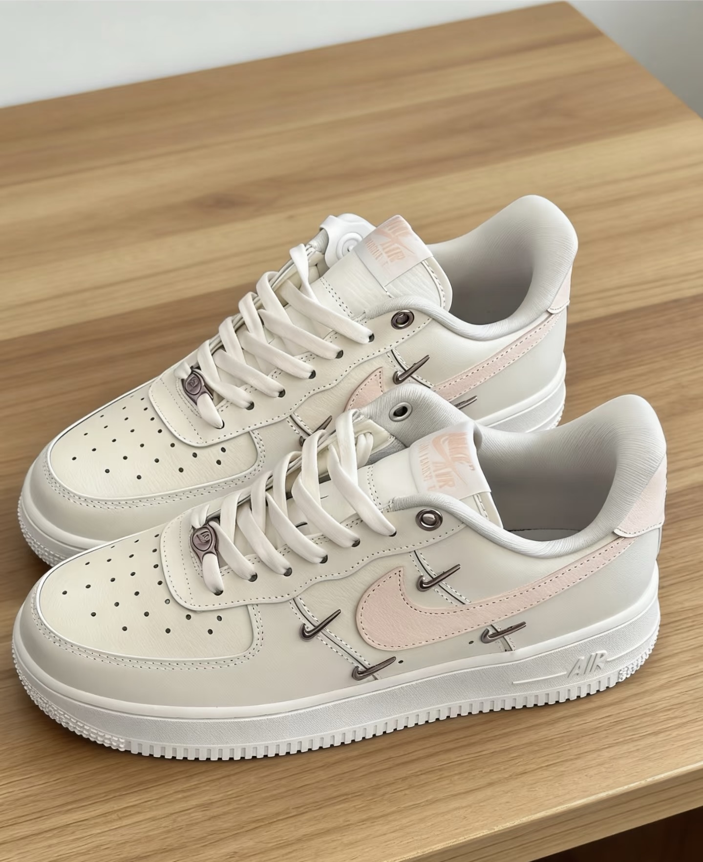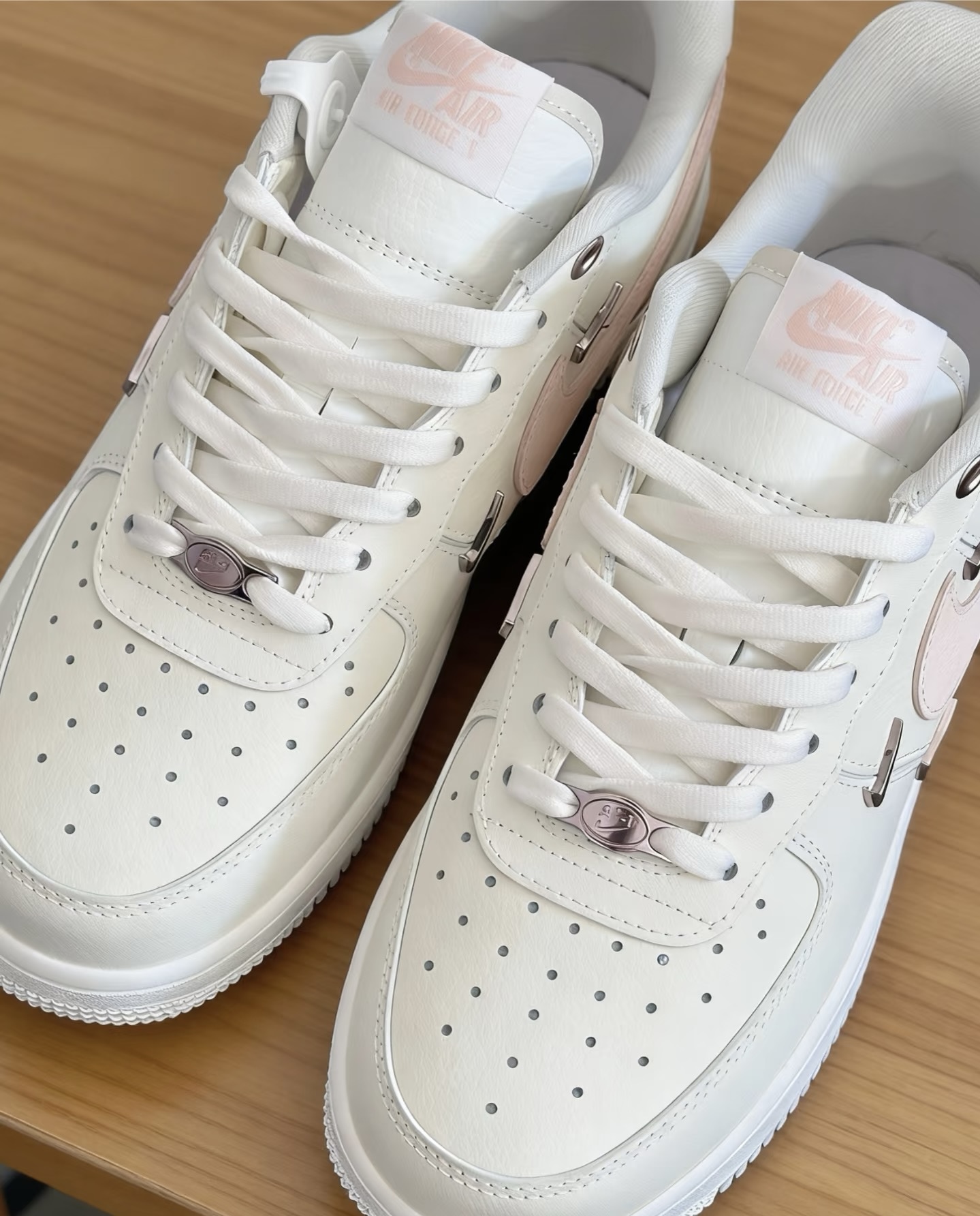 谁能拒绝一双奶呼呼的空军一号啊! 这种奶油米白打底,配上淡粉小勾的配色,真的太温柔了。 细节处的金属小扣子很精致,不会过于甜腻,属于百看不厌的类型。 搭牛仔裤、裙子都很仙,春天穿这双,氛围感直接拉满! #识货种草 #空军一号 #AF1 #奶油色球鞋 #少女心穿搭