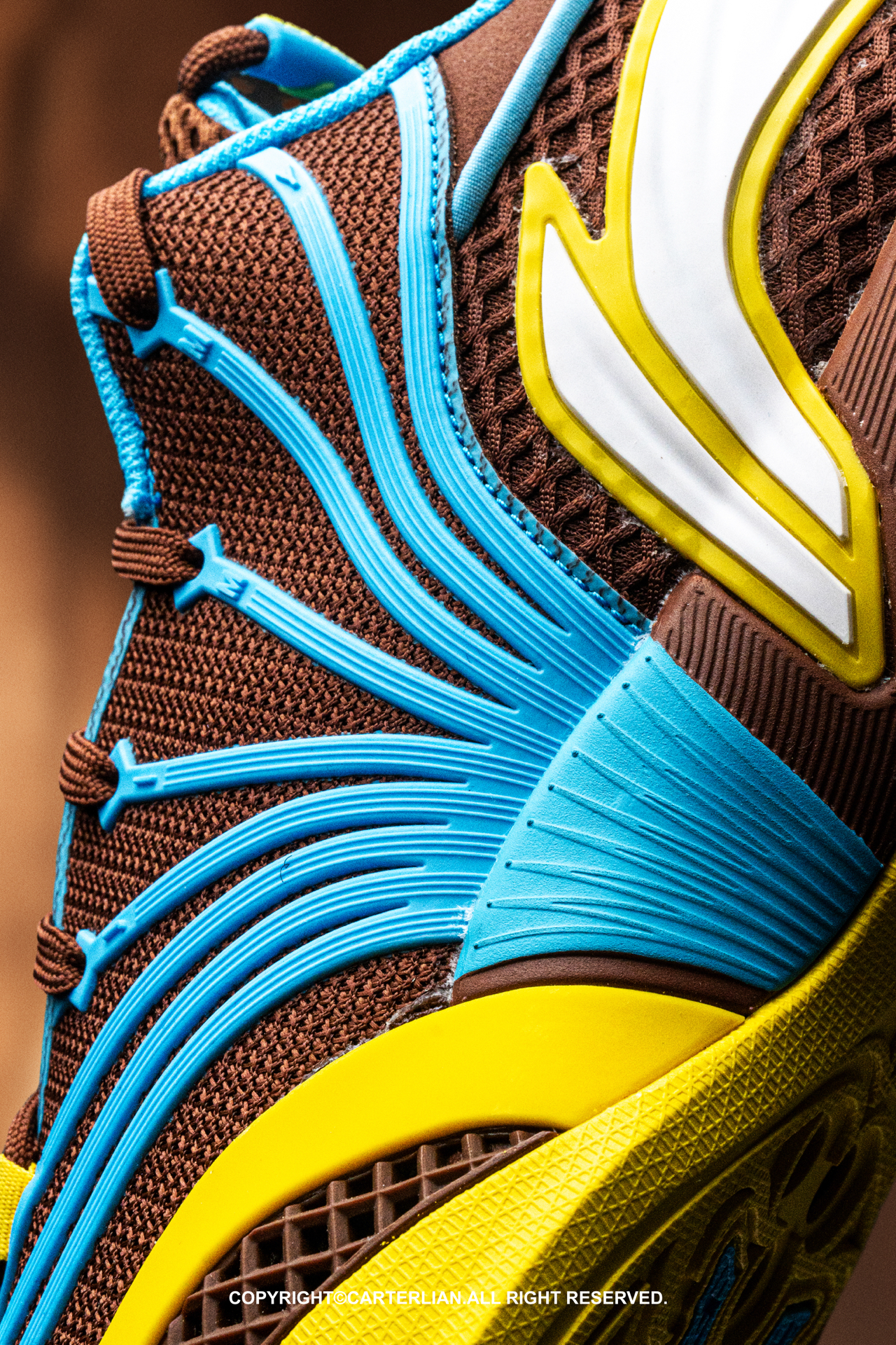 去年BUCKETS算是我实战榜单的TOP10之一了,而这次BUCKETS2来了,整双鞋设计也是融合了很多牛仔风格的元素。 鞋后跟的logo位置有点类似马刺的感觉,鞋头上翻的造型则看起来有点牛仔靴的花纹。 而整双鞋拿到手后第一感觉就是更加轻量化了,鞋面是网布与KPU材料的构成,侧边爪型的框架则是强化了整个鞋面的支撑,提升了包裹性。 这次鞋底纹路特别丰富,结合了巴特勒个人特质的介绍和牛仔文化里的雕花纹...