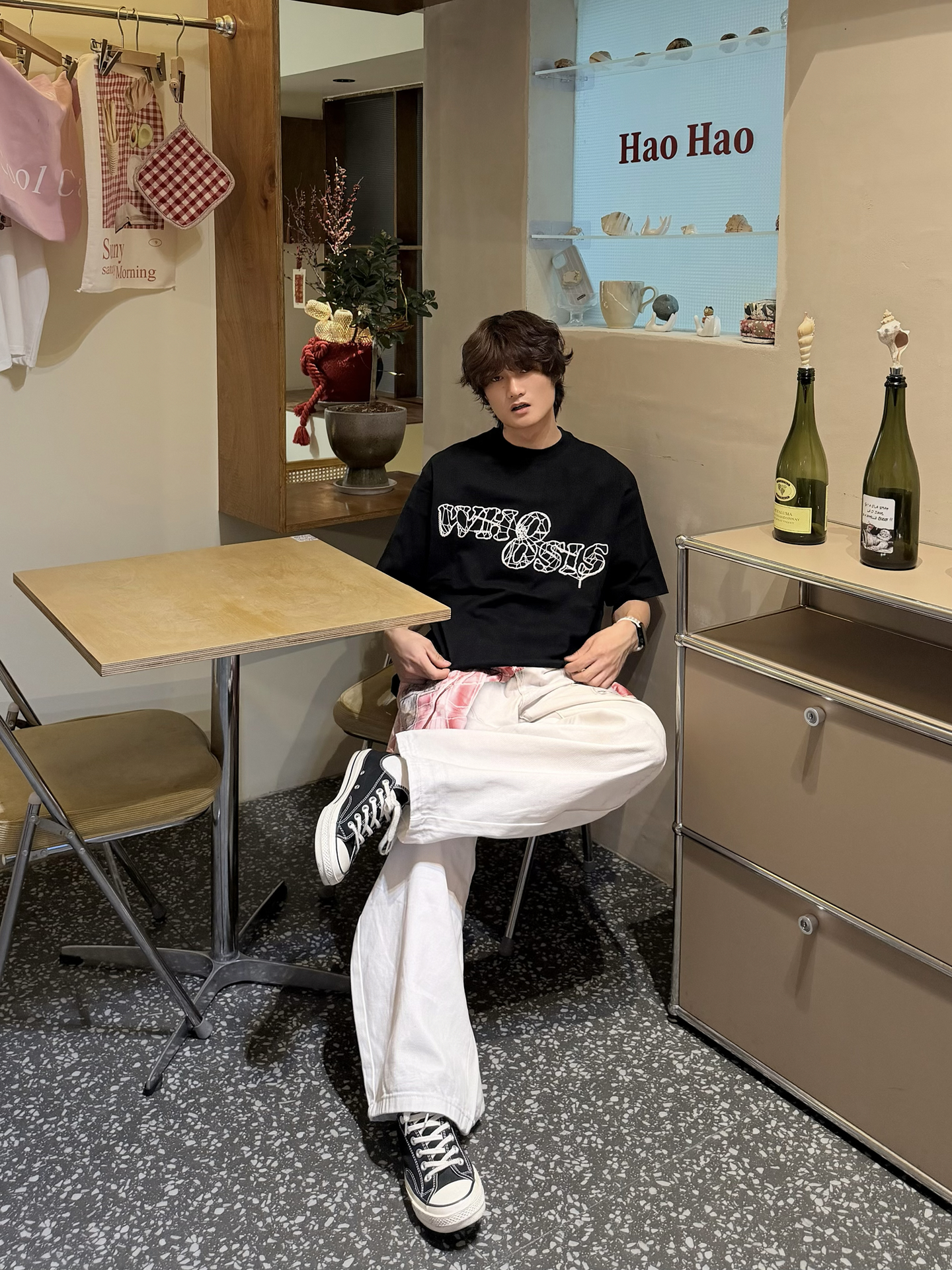 男生夏日街头穿搭get✅ 经典黑T+白色阔腿裤的万能组合 真的怎么穿都不会出错! 这件黑T的面料是那种挺括的纯棉,上身不软塌,很有型,美式字母印花设计感满满,低调又有细节 简单一套,随性出街,男生穿搭越简单越高级