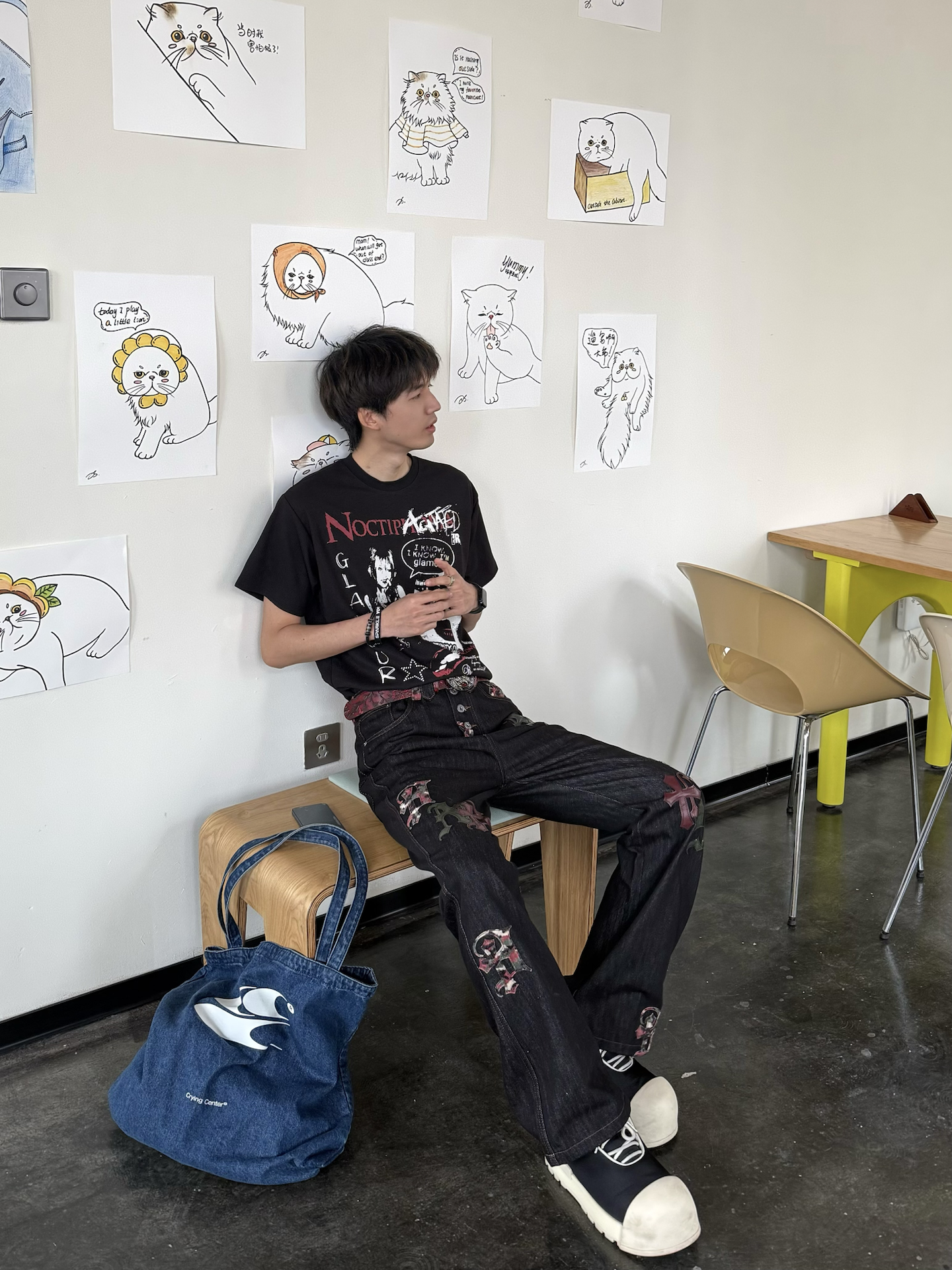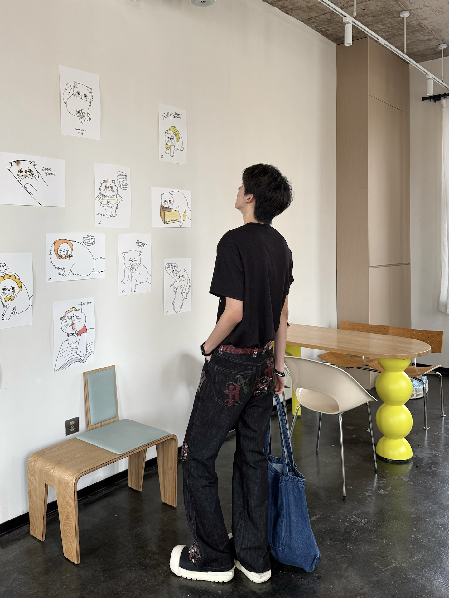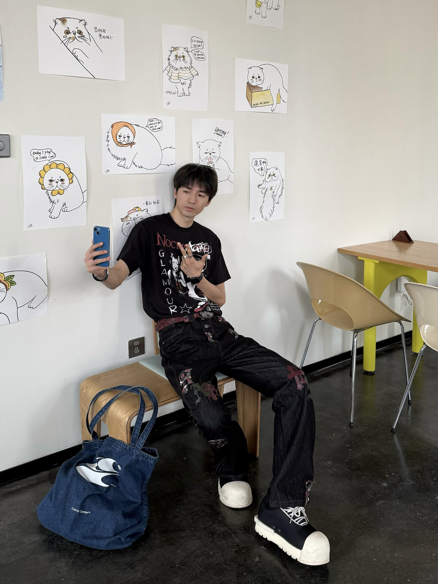 穿多了就发现 街头风不用堆太多东西 抓准一个核心色就够了‼️ 今天就定了红黑主调 黑T做底色 用T恤上的红印花做引子💥 裤子选带同色系贴布的 直筒刚好修饰腿型 用红纹雕花腰带收尾🤓所有红色元素刚好呼应上 再带点马年元素 不用费脑子想配色 也不用复杂叠穿 找准主色调来延伸才是关键✅ 下午在店里对着满墙猫咪画拍了半天 没个图片都挺独特 哈哈哈哈哈 感觉穿搭找好色调 在学技巧可能会更好穿✌️ ...