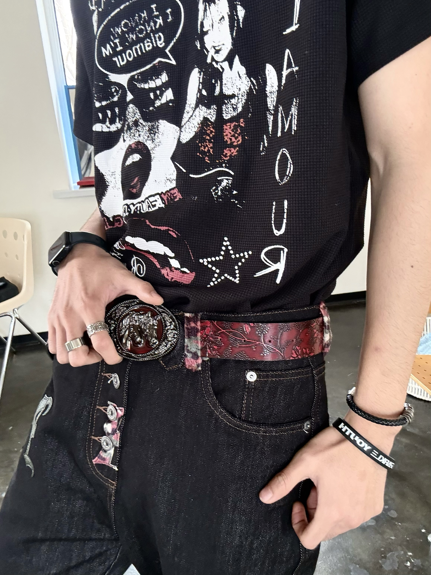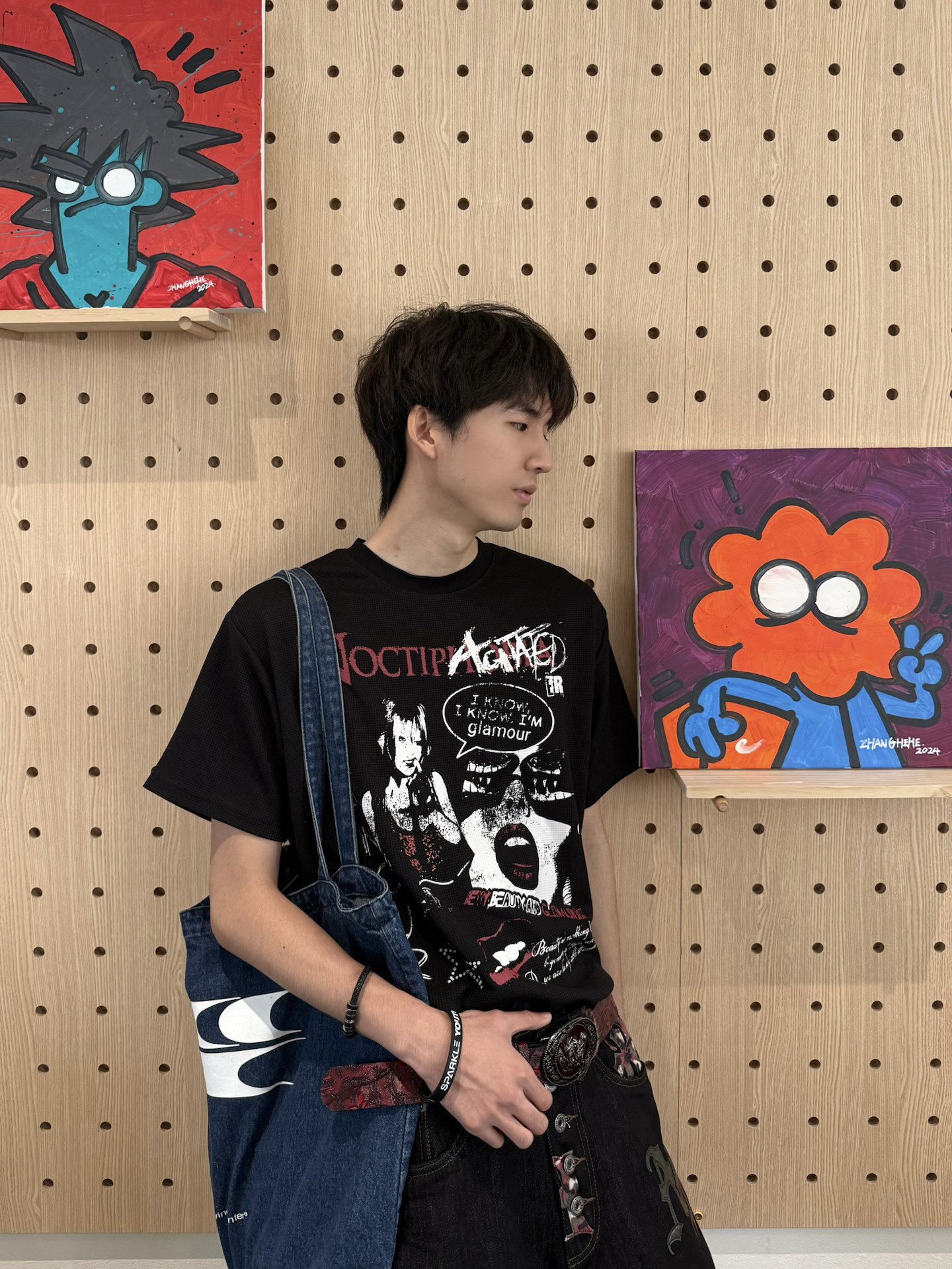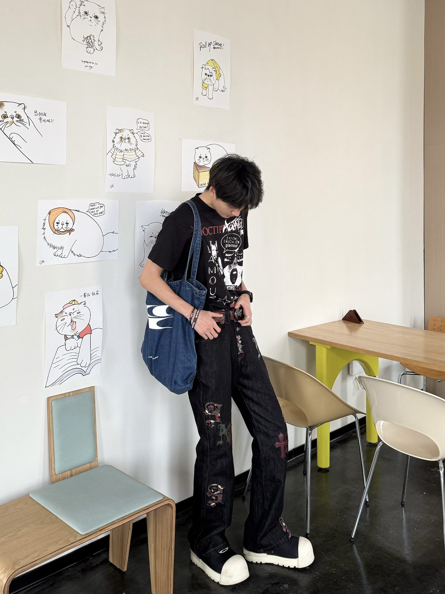 穿多了就发现 街头风不用堆太多东西 抓准一个核心色就够了‼️ 今天就定了红黑主调 黑T做底色 用T恤上的红印花做引子💥 裤子选带同色系贴布的 直筒刚好修饰腿型 用红纹雕花腰带收尾🤓所有红色元素刚好呼应上 再带点马年元素 不用费脑子想配色 也不用复杂叠穿 找准主色调来延伸才是关键✅ 下午在店里对着满墙猫咪画拍了半天 没个图片都挺独特 哈哈哈哈哈 感觉穿搭找好色调 在学技巧可能会更好穿✌️ ...