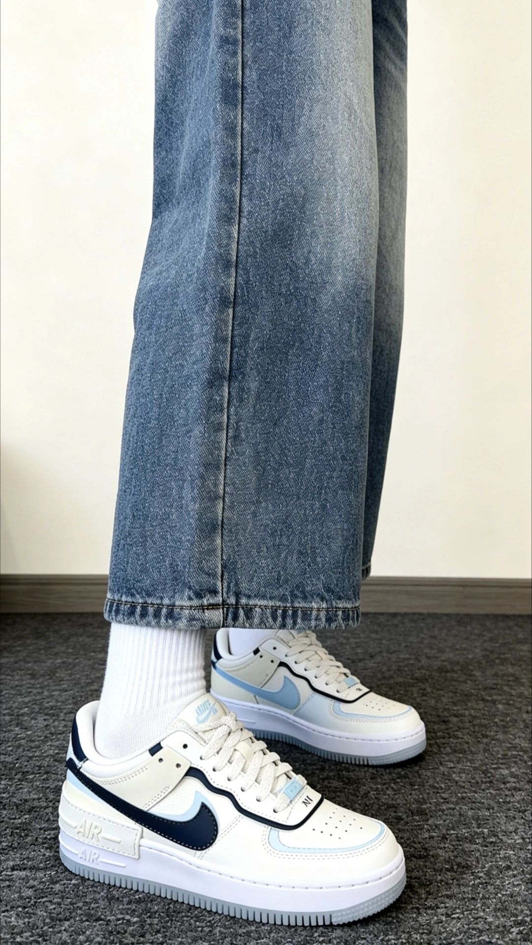 终于拥有了这双神仙配色的AF1! 这种通透的婴儿蓝真的太适合春夏了,看着就很凉快。 搭配白色鞋带和鞋底,干净又高级,完全不会烂大街。 上脚巨显白,黄皮姐妹也能放心冲,搭牛仔裤、裙子都绝了! 近期鞋柜里的颜值担当,必须安利。 #Nike #空军一号 #AF1 #北卡蓝 #球鞋分享