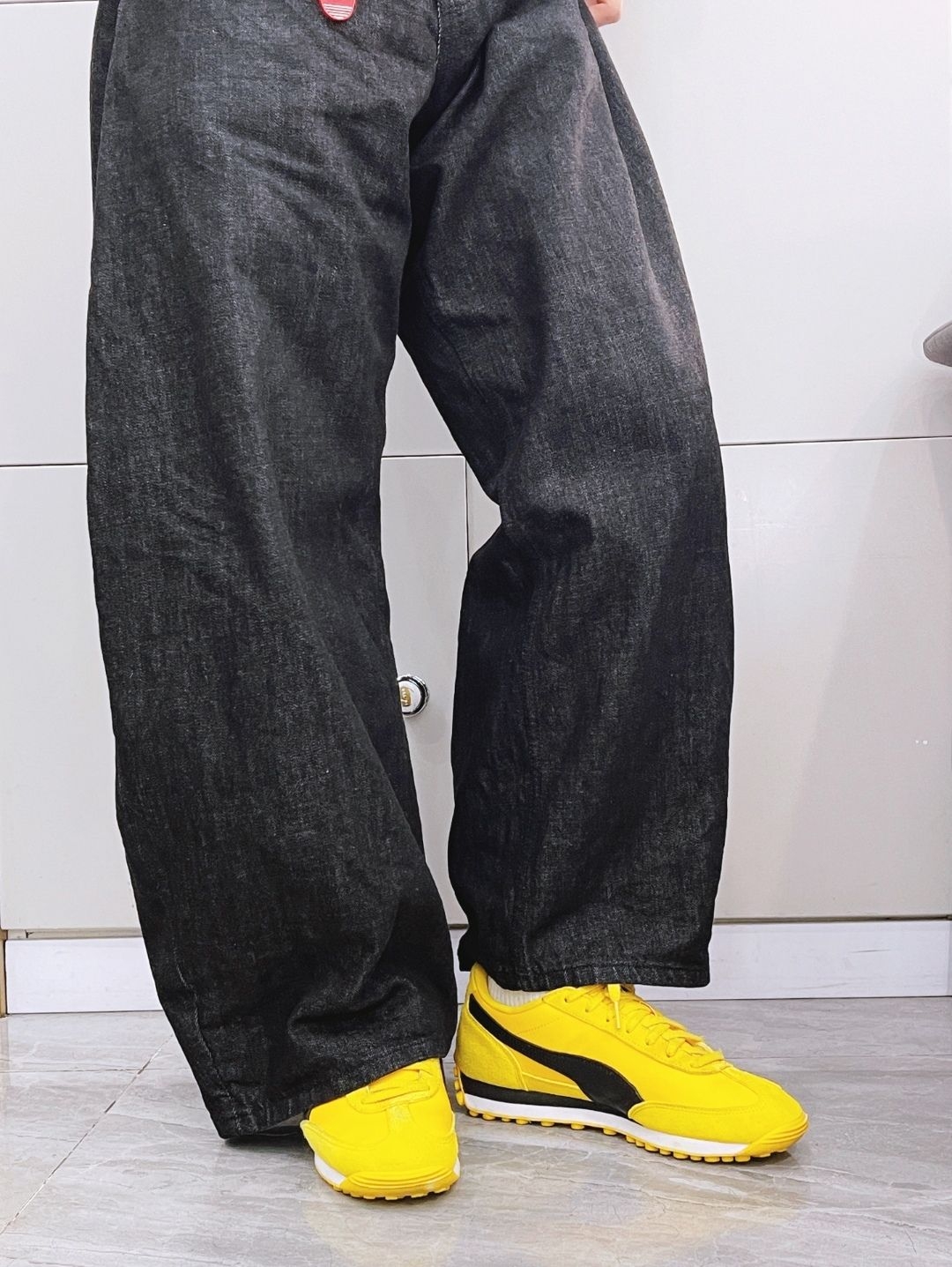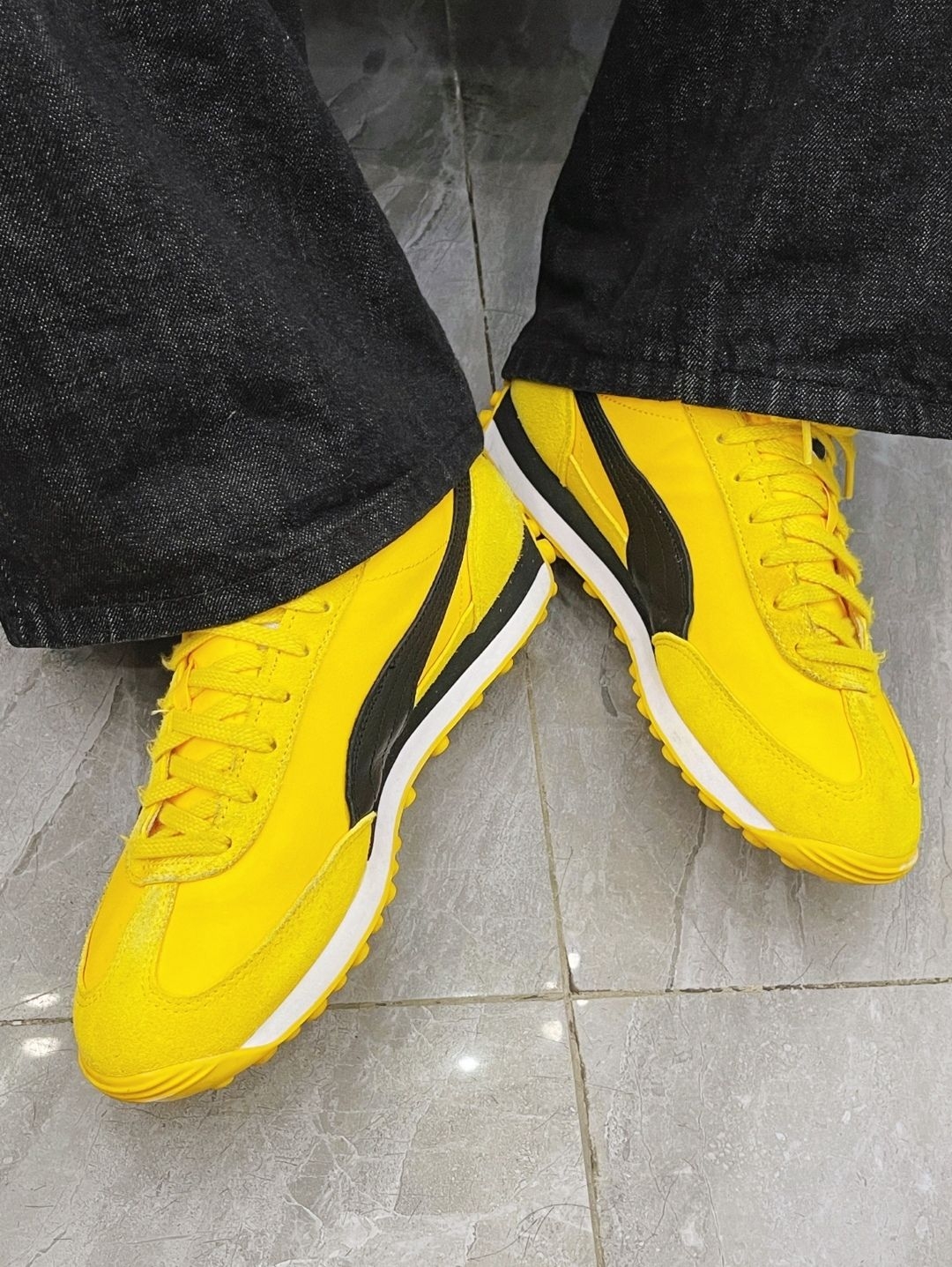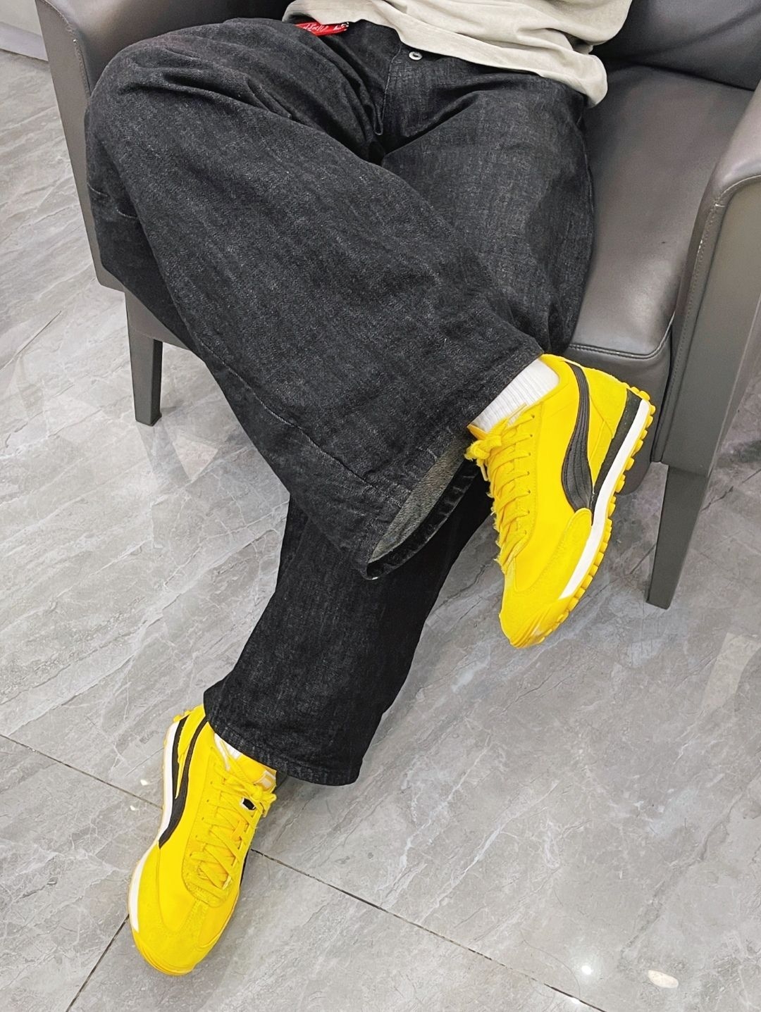 姜黄色的彪马德训鞋,配色吸👁️多巴胺 同事说,这是李小龙专属黄🍋哈哈😄 这双鞋很适合夏天穿,因为是帆布的面面,非常透气,不闷脚 鞋底是钉钉的设计,防滑耐磨👍 搭配一条黑牛弯刀裤,绝绝子男女同款哦