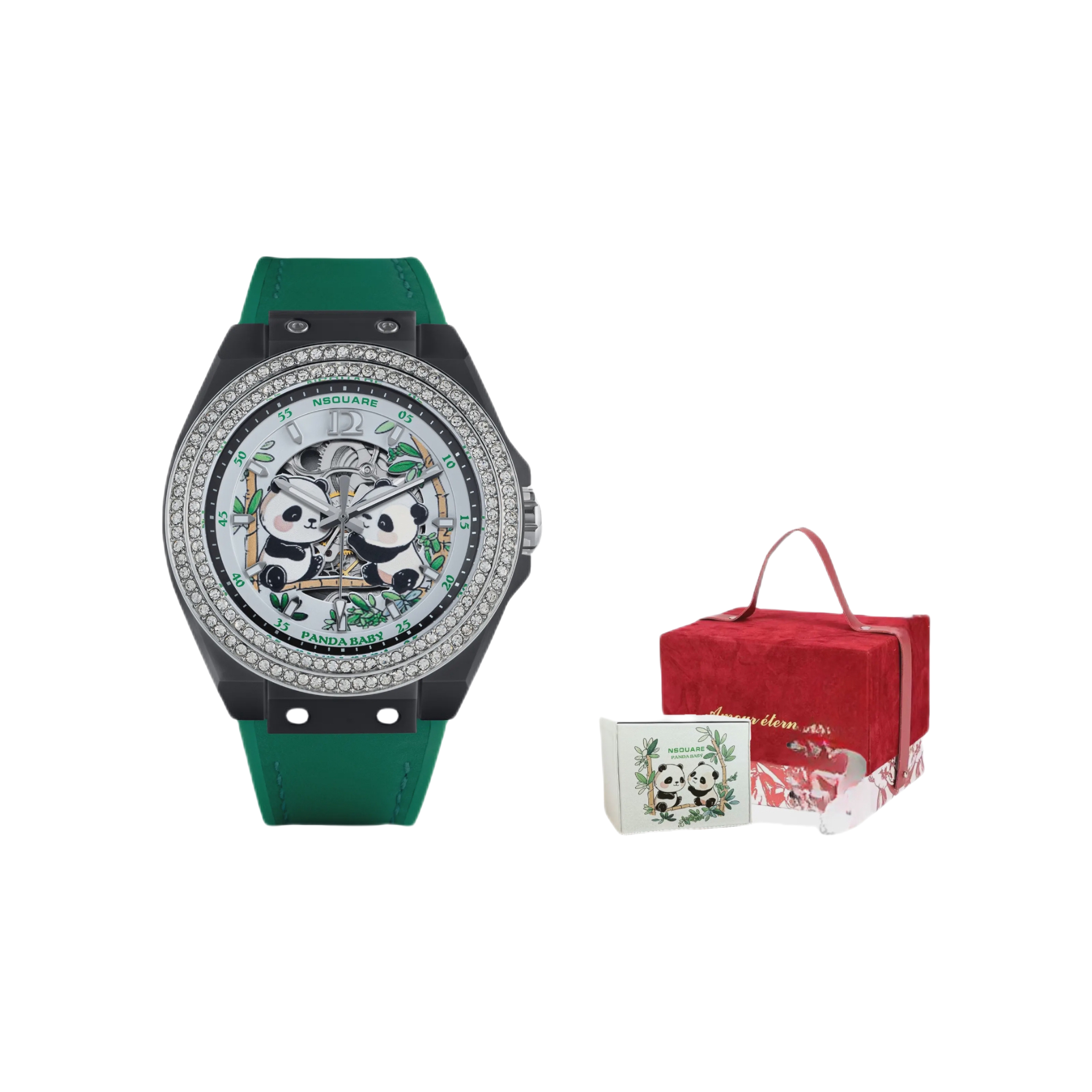 白T恤+黑短裤,本来挺普通的👀 但一抬手,这抹绿表带直接赢了✌️ 恩仕雅熊猫宝贝,白盘配绿带,清爽又特别~ 自动机械不用充电,50米防水也够用 感觉戴表不只是看时间,更是给穿搭加分的小细节🍃 现在我每天都想撸袖子秀一下😎