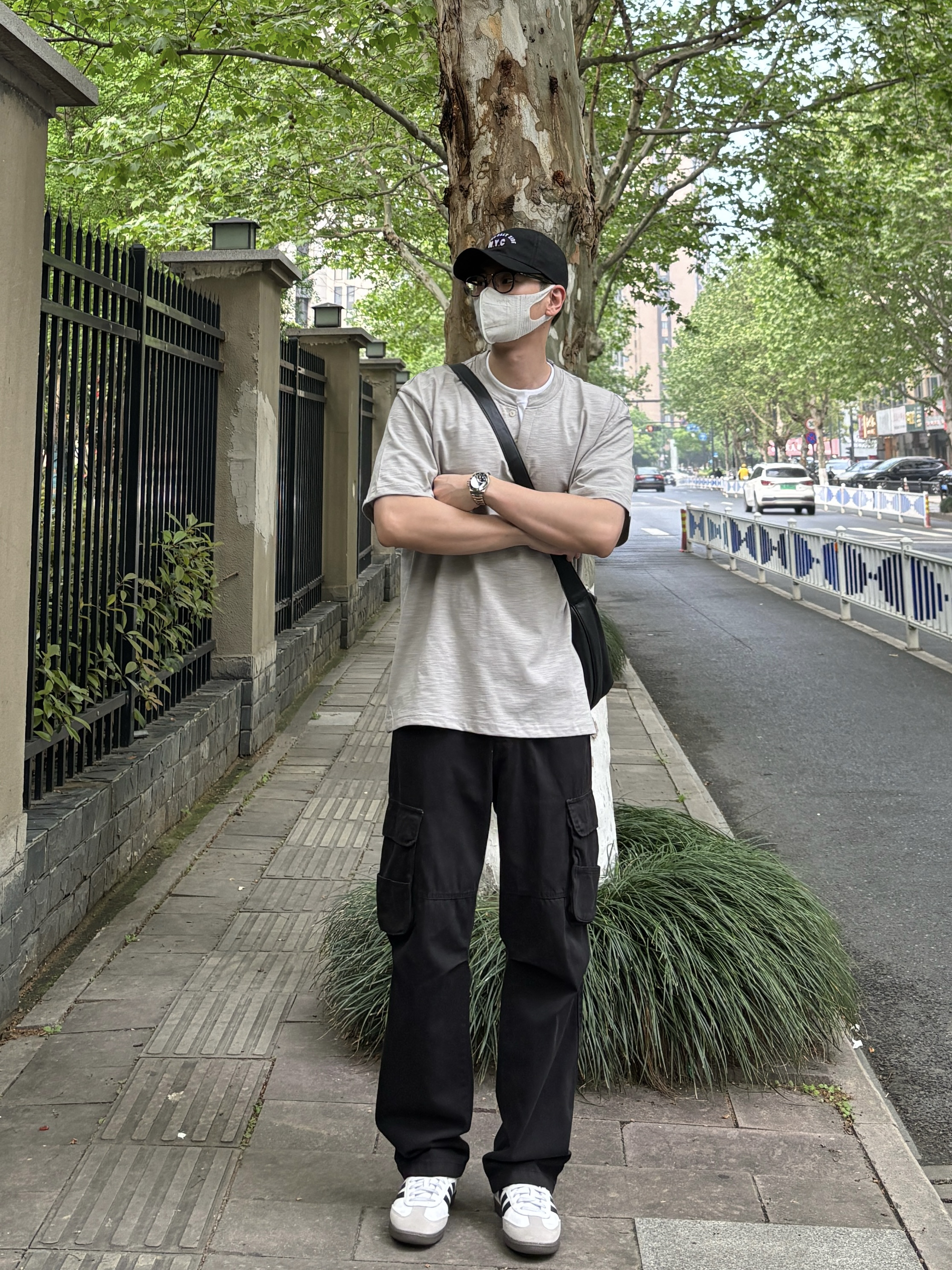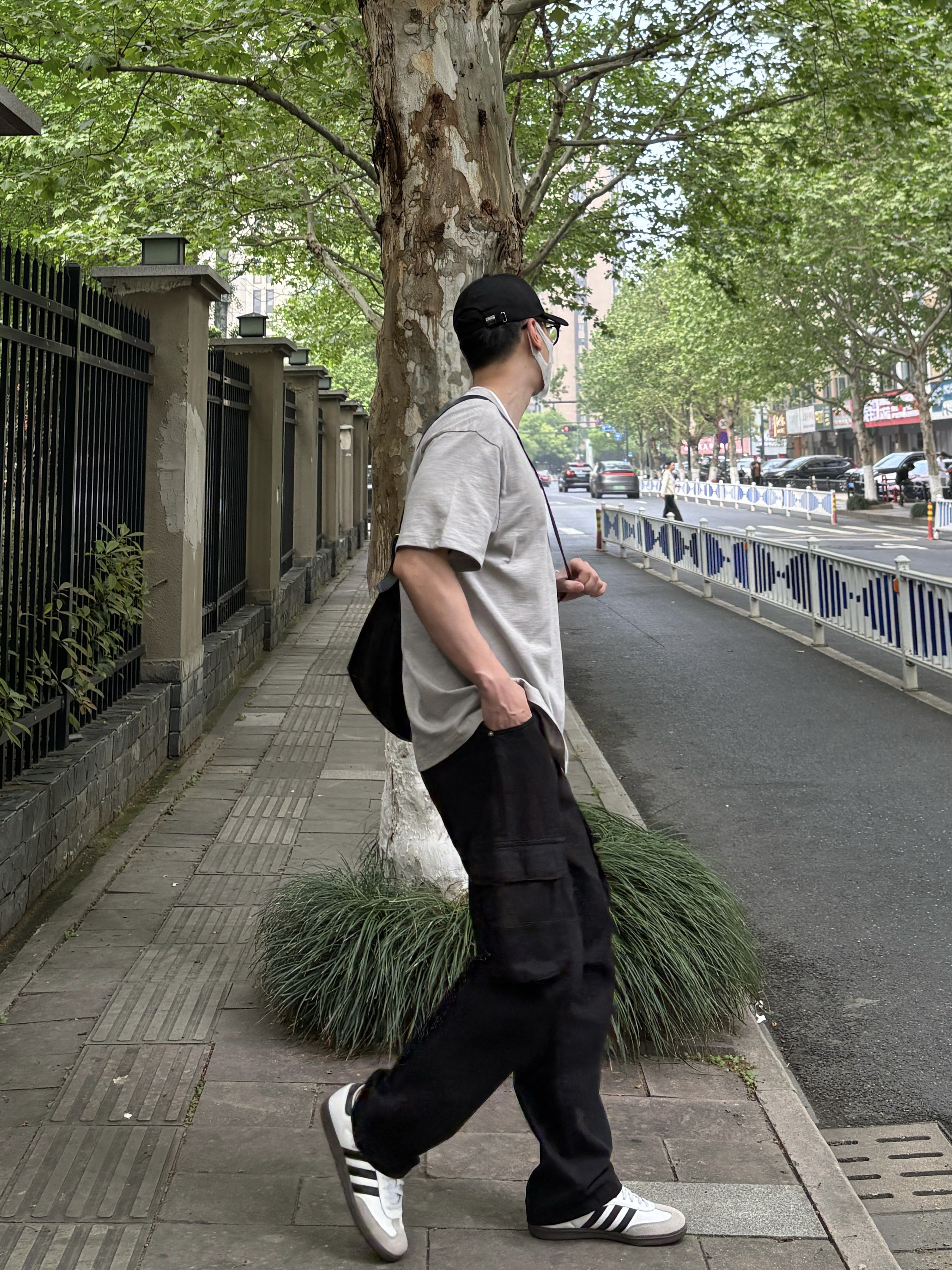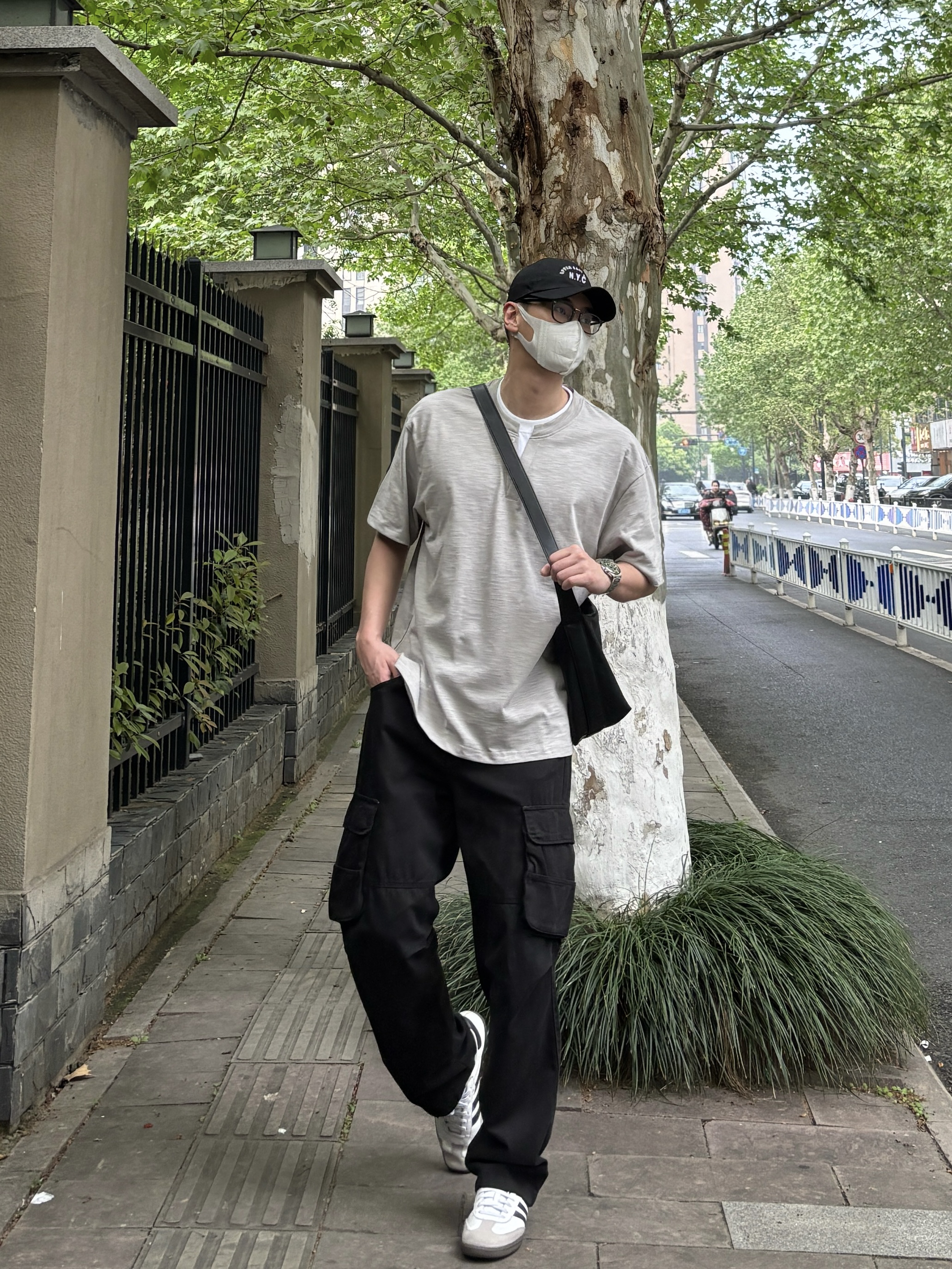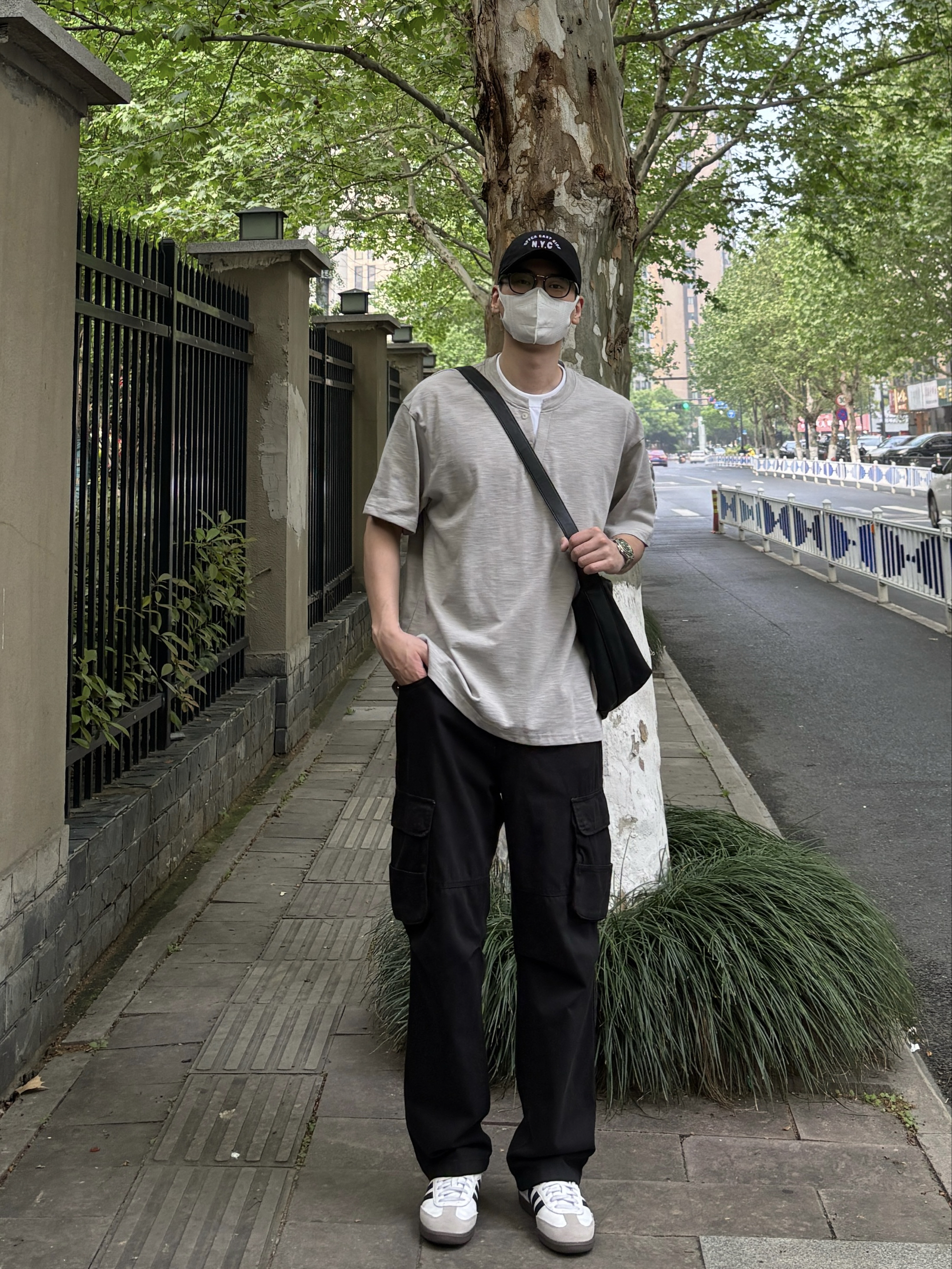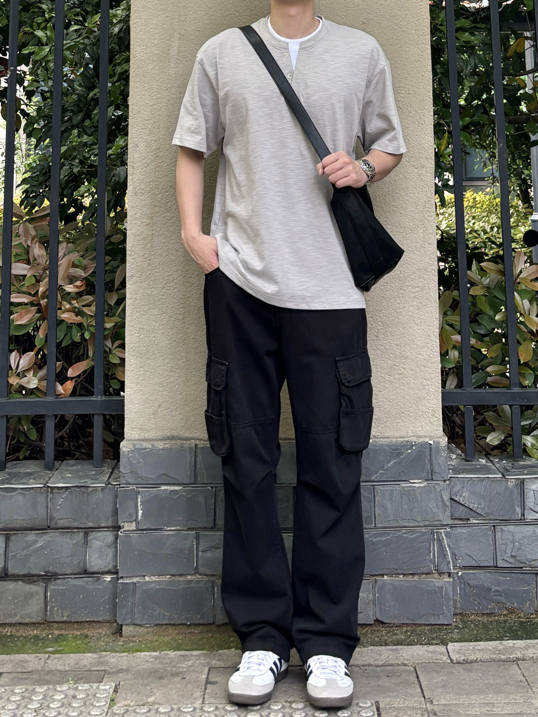 告别繁杂穿搭,极简风才是春夏搭配的首选,简约单品组合,轻松穿出干净少年感✌️ 上衣选择竹节棉材质的浅灰色圆领上衣,假两件拼接设计自带小众细节感,透气亲肤,适配闷热天气👌 裤子黑色水洗工装裤自带复古滤镜,做旧水洗工艺高级感十足,直筒剪裁不挑身材,行走自在不受拘束~ 鞋子上脚经典耐看的黑白复古低帮德训鞋 最后用皮质大容量斜挎包点缀整体,兼顾颜值与实用性,平时出门这样穿简约又有格调🤩 - 今日搭配 衣服...