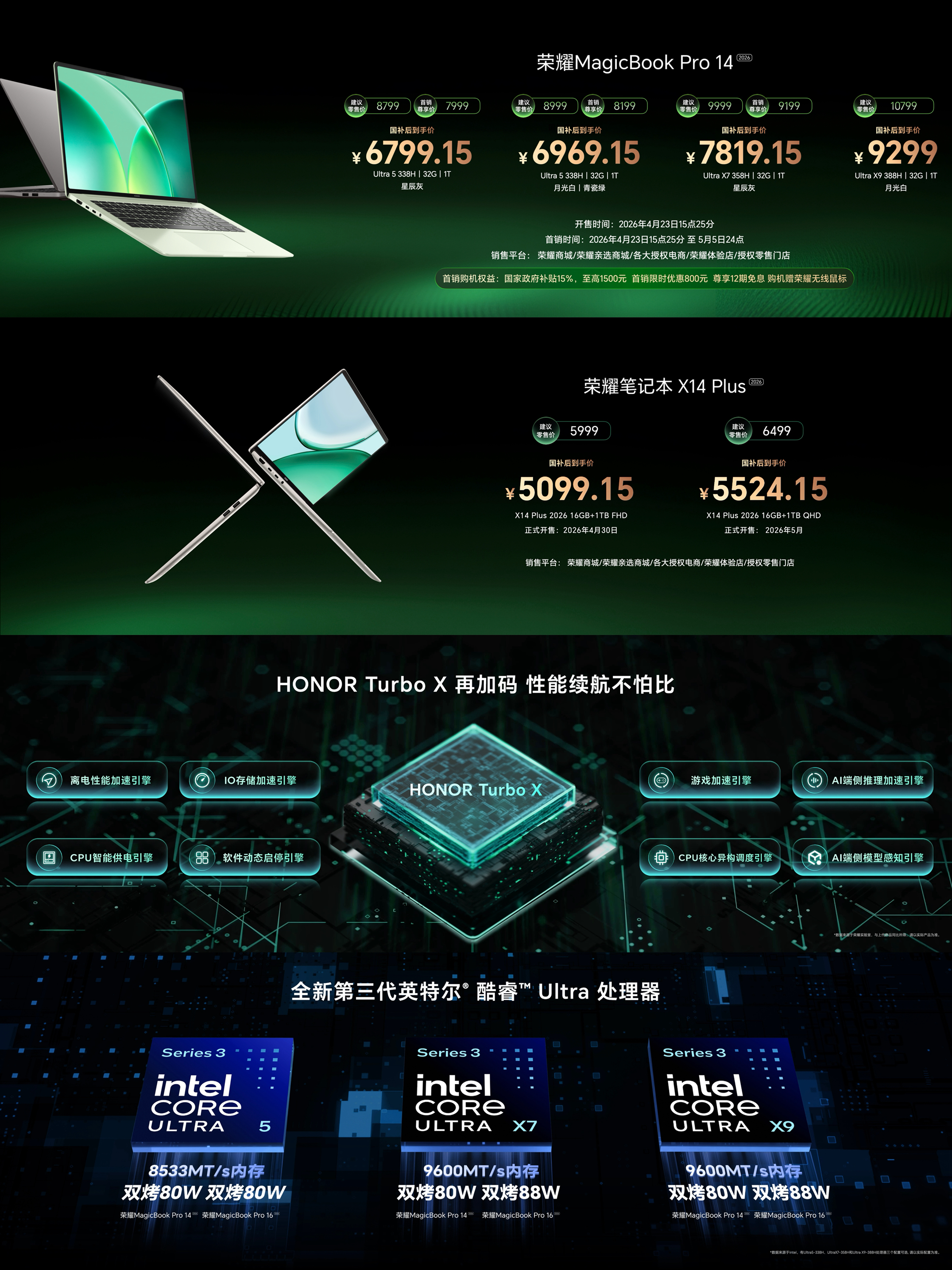 本篇笔记关联了HONOR/荣耀 MagicBook Pro16 酷睿版 2026款 16英寸 笔记本 绿洲护眼屏 巨量电池 青瓷绿等商品,为用户提供真实的使用体验和购买参考。