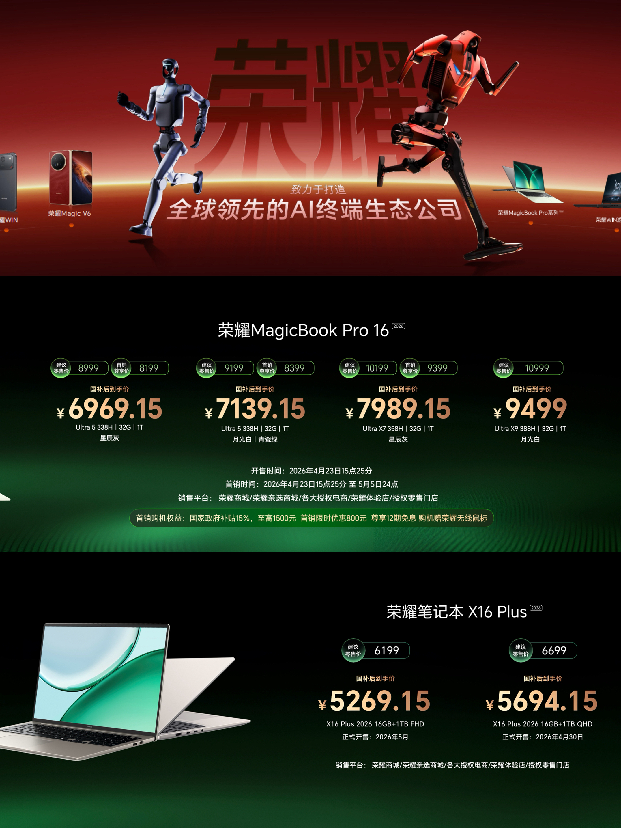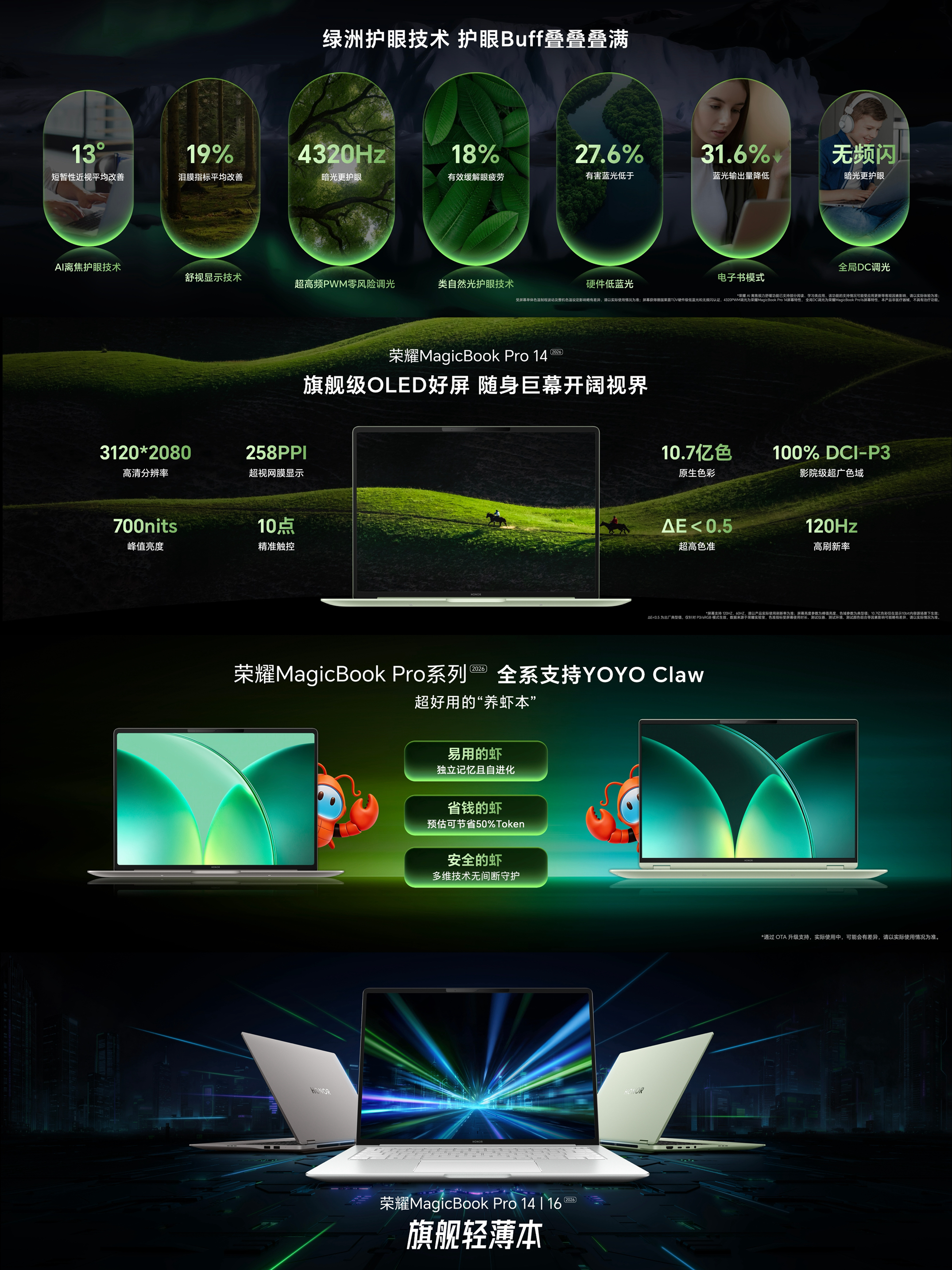 谁还没看荣耀成都新品发布会!这次的荣耀MagicBook Pro系列2026直接颠覆我对轻薄本的认知,续航、性能、性能、续航、屏幕以及AI等全方位拉满,堪称全能旗舰养虾本! 作为Panther Lake旗舰轻薄本新标杆,这款笔记本直接把续航卷到极致!全系标配92Wh超大电池,标配100W氮化镓充电器,可为荣耀笔记本、平板、手机快充,出差仅需携带一个充电器即可满足多设备供电需求。同时,笔记本支持8...