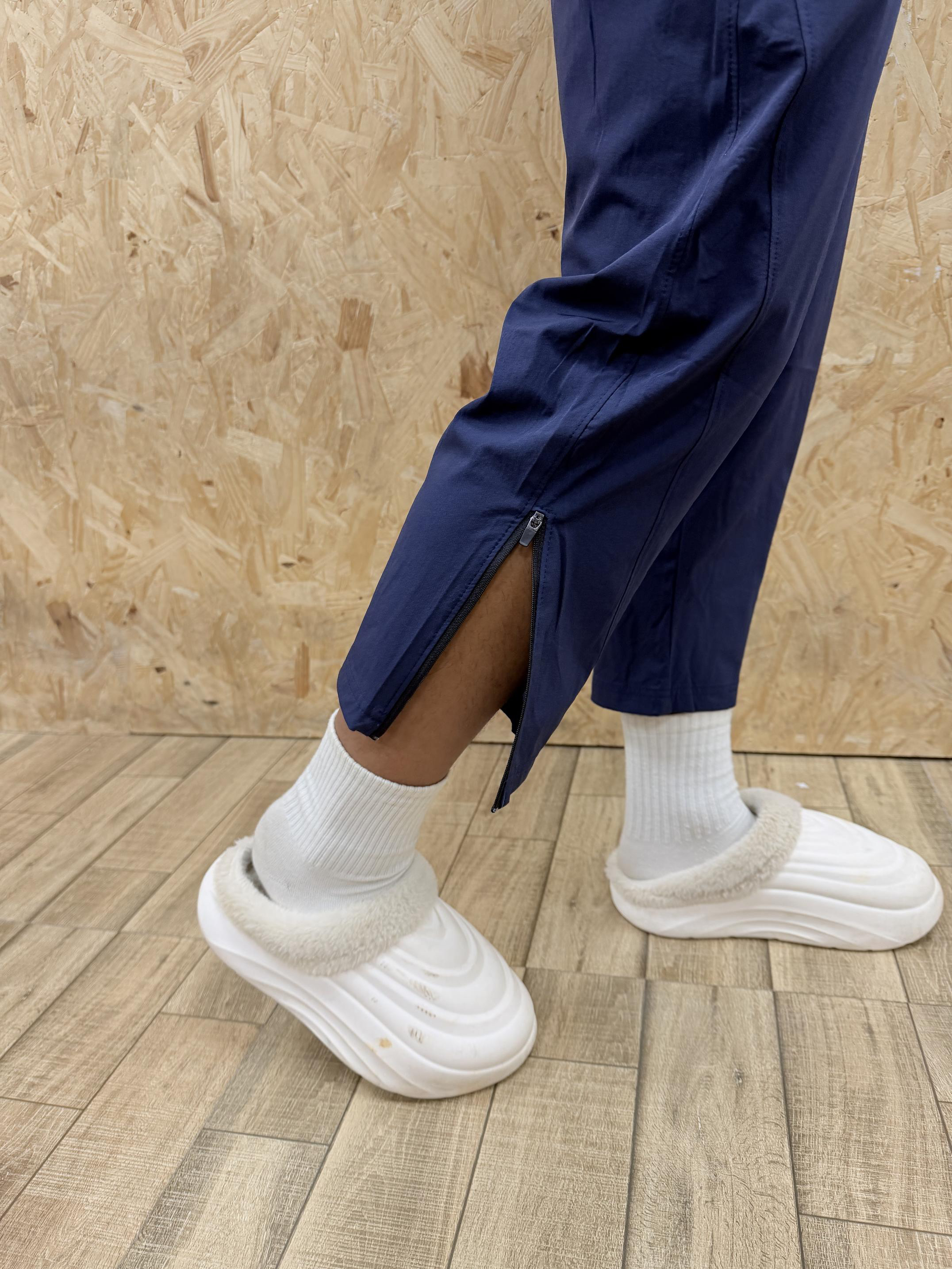 💙 维动 VEIDOORN 更迭篮球🏀运动九分裤^_^采用深蓝色梭织面料,轻薄透气 速干性能超赞,运动场景必备! 宽松直筒+九分裤脚,活动自如又显腿型✨ 我喜欢裤腿侧边拉链设计,实用又有细节感 左腿品牌樱花刺绣超有辨识 还是直筒微锥的版型,不管你是腿粗屁股大还是腿型不好 都可以轻松驾驭,上身只有裤型没有腿型! 我的日常训练、篮球、跑步都能轻松驾驭 舒适又时尚,搭配运动鞋或拖鞋都很OK!👟