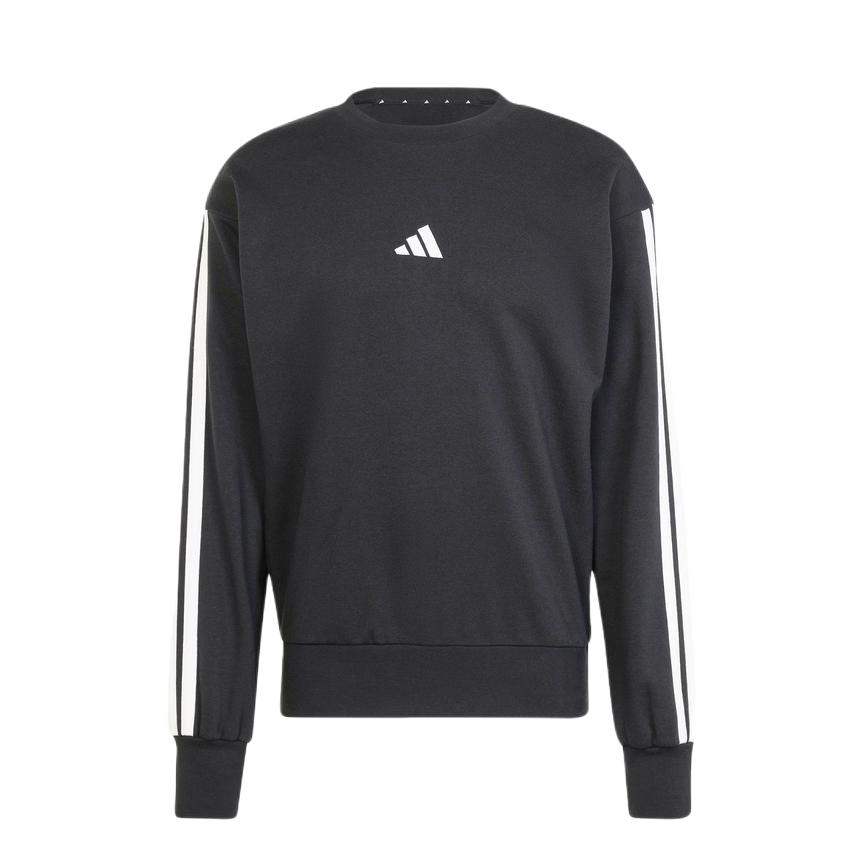 adidas 经典三条杠卫衣 黑色主色+白色三条杠,胸前logo超有辨识度! 黑白配色永不过时 针织面料柔软亲肤,穿着舒适,还宽松版型包容性强 日常休闲、运动、街头风都能轻松驾驭✨ 百搭属性,单穿or内搭都OK,日常出街随性又有范 春季穿搭超实用,是衣柜必备基础款!