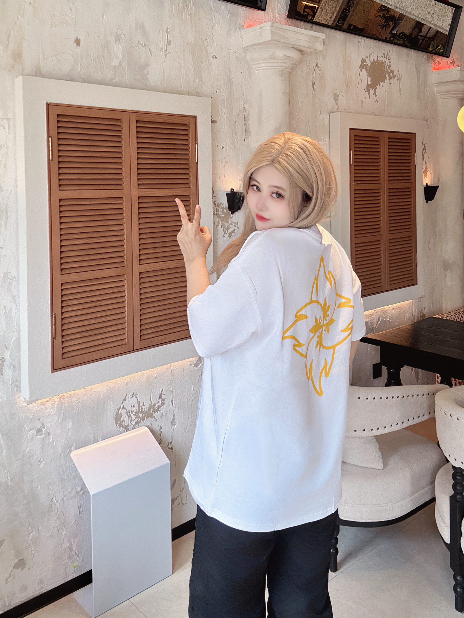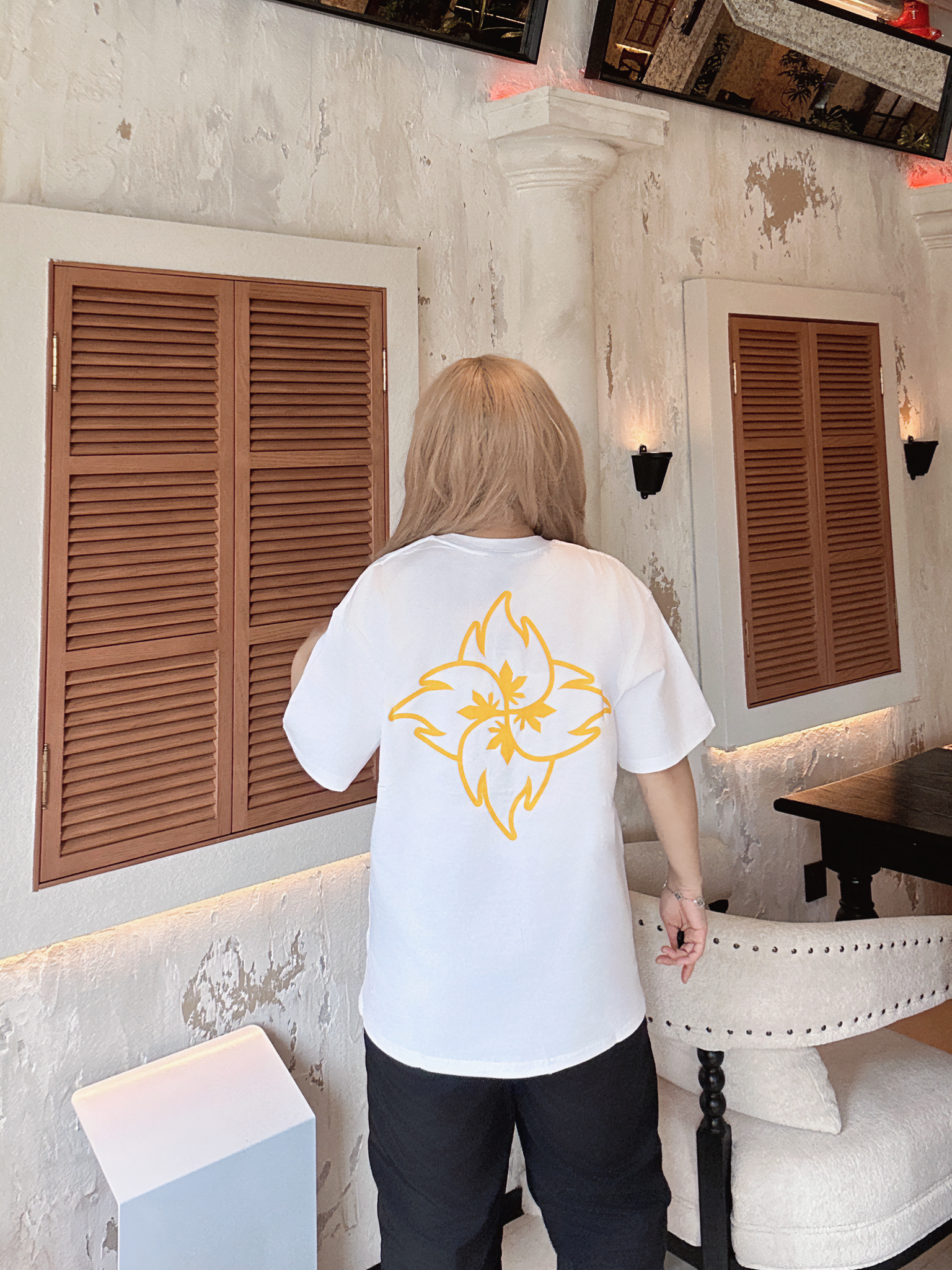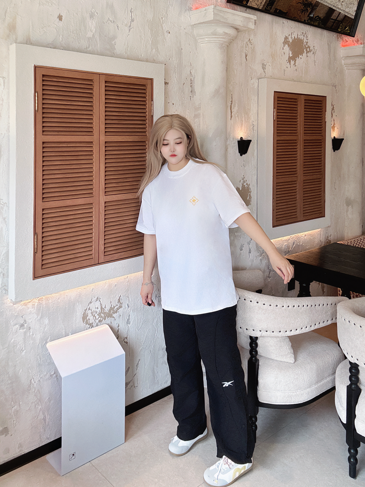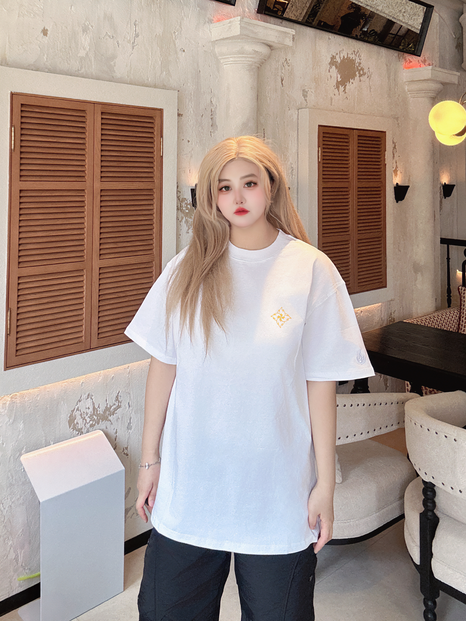 入夏短袖Q我先穿了( 白色尊滴很清爽的一件短袖TA 超级百搭版型也好简单叉休闲,简单的火苗飞镖印花亮点拿捏! 宽松的感觉就很舒服啊~ 中性的穿搭很帅气,承包我整个夏天的穿搭! 170/120/L