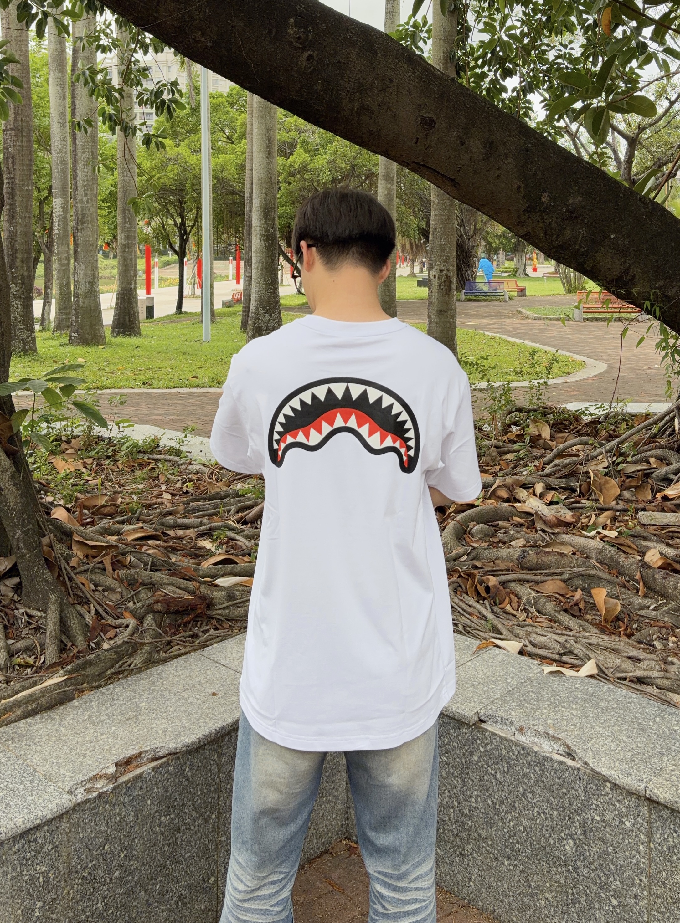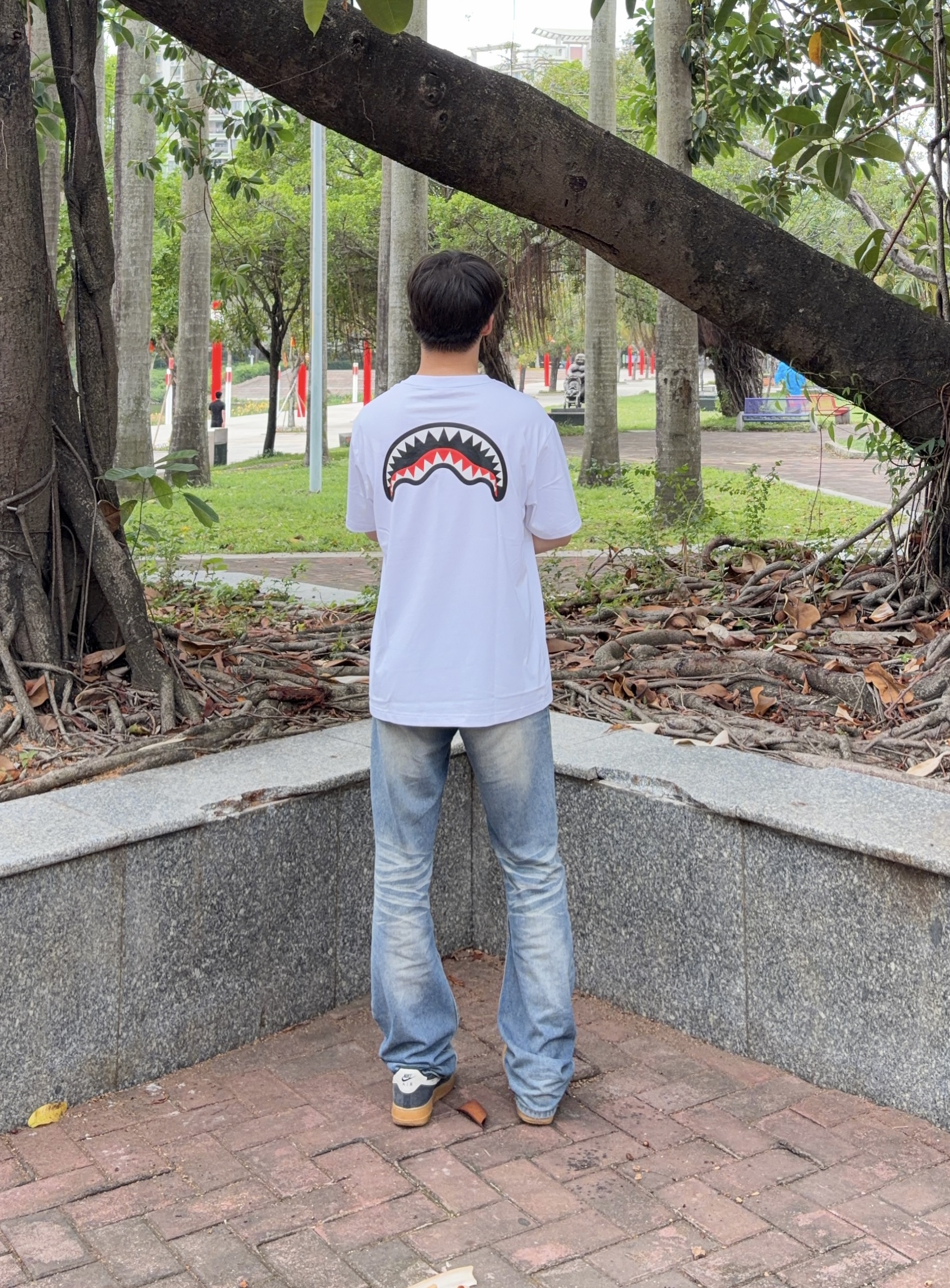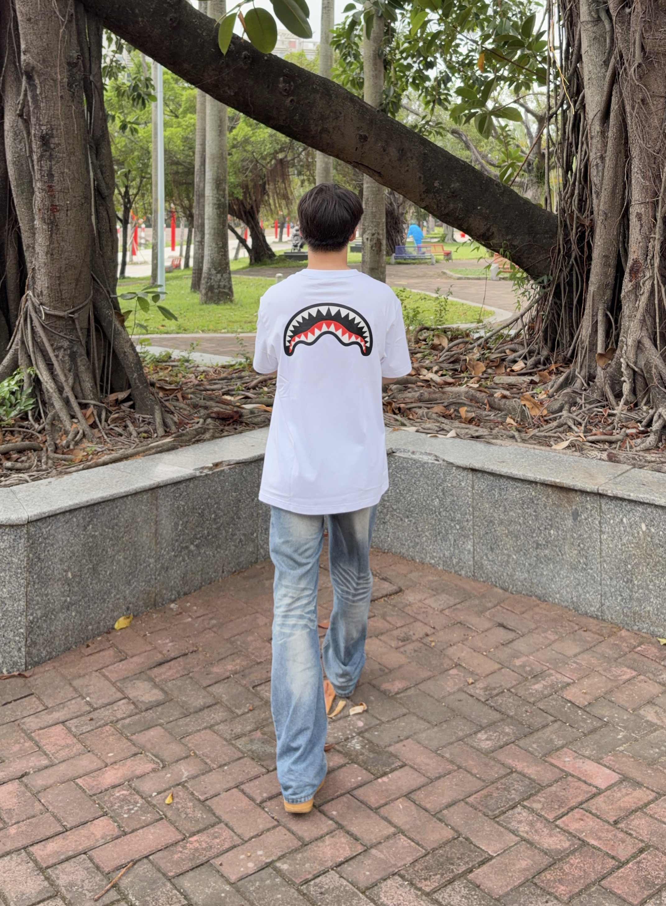 春日公园漫步🚶 被 SPRAYGROUND 这件 美式简约白T恤👕戳中 绝对是Offduty宝藏单品🌟 后背大鲨鱼嘴🦈印花设计感十足 宽松版型上身宽松舒适🥰 正面小logo低调不张扬 细节感拉满 棉涤面料透气舒适✅ 搭配做旧牛仔裤👖与休闲鞋👟 一套清爽随性的春日穿搭就完成了