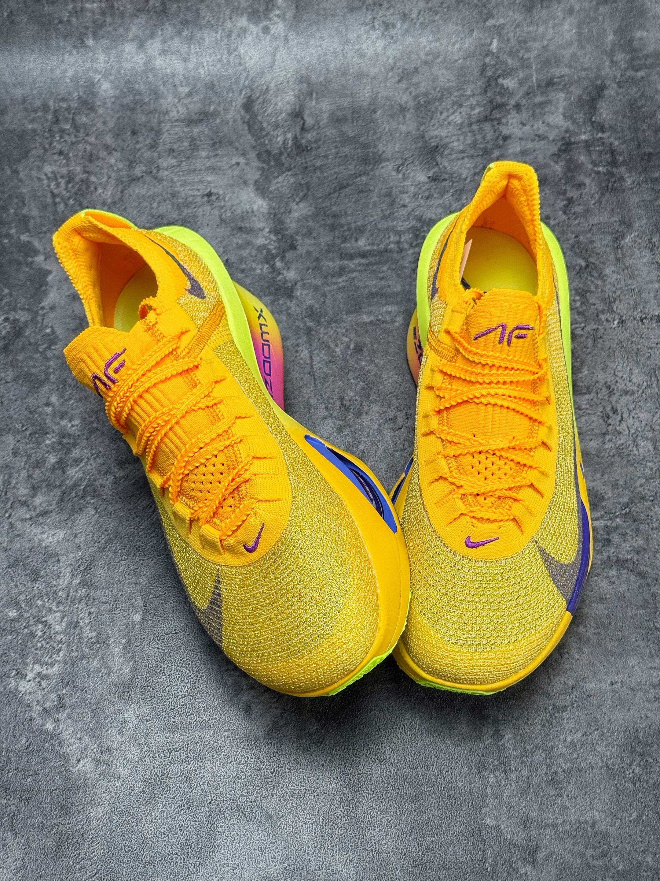 🔥 NIKE Alphafly NEXT% 3 公路竞速跑鞋 激光橙渐变鞋面+脉冲柠檬黄绿中底,自带赛场焦点属性。 双Air Zoom气垫+全掌ZoomX泡绵+碳板配置,回弹推进拉满,每一步都像在弹射起步。 轻量Atomknit鞋面透气贴合,马拉松破纪录级配置,专为冲线而生。 穿上它,下一个PB,从这抹亮色开始。