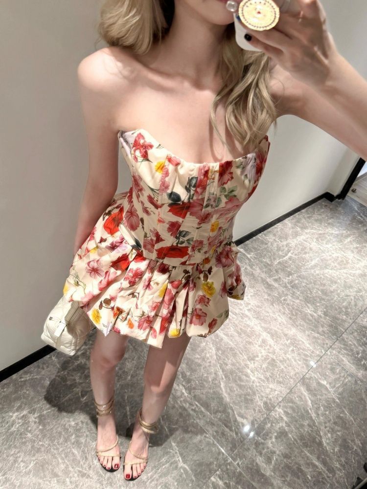 这套穿搭是今年超火的法式纯欲风碎花套装,把甜妹感和辣妹线条感平衡得恰到好处,细节超戳人 抹胸鱼骨上衣- 内置鱼骨设计,精准收腰,把腰线掐得又细又直,同时自带防滑条,不用担心滑落。 抹胸版型利落露出肩颈线条,衬得锁骨和直角肩超好看,自带纯欲氛围感。 米白底+红/黄调碎花,像把春日花园穿在身上,明媚又温柔。 花苞蓬蓬短裙- 短款花苞裙摆自带蓬松感,视觉上拉高腰线,显腿长效果拉满,同时又像小蛋糕裙一...