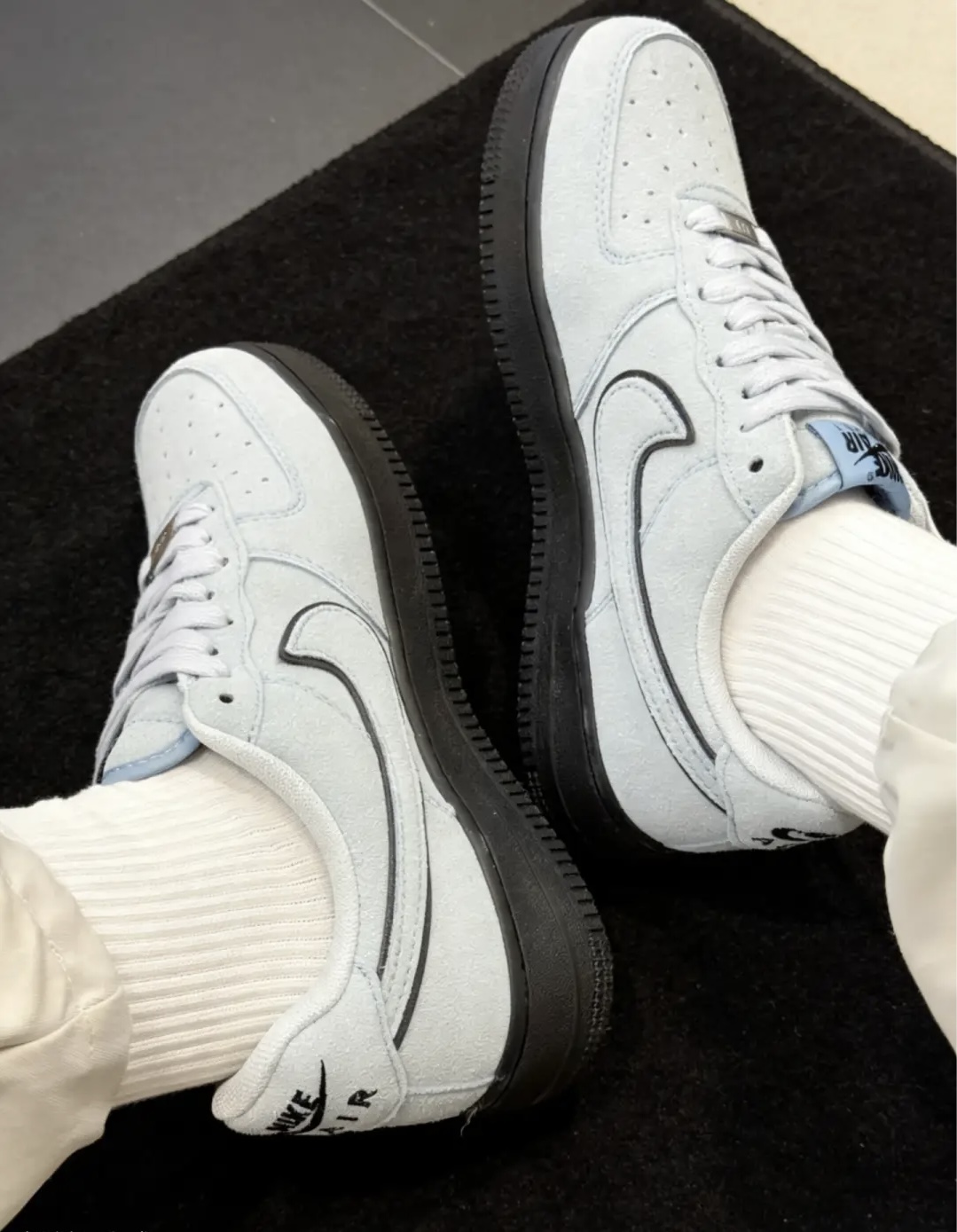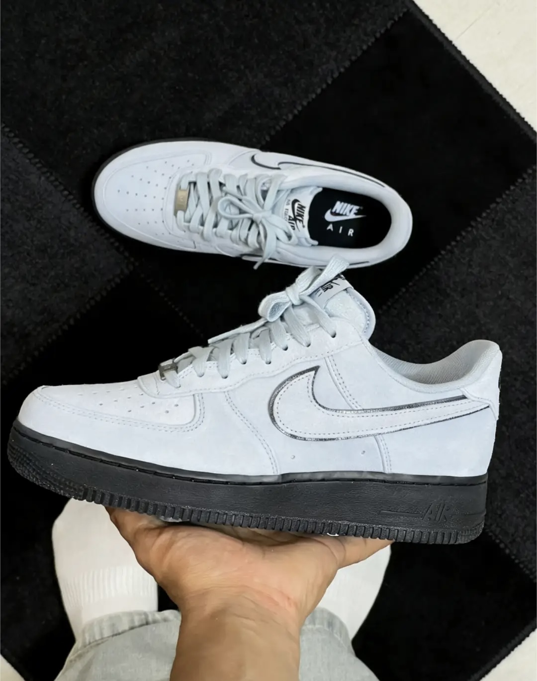 浅灰麂皮鞋面+黑生胶大底 低饱和灰调真的高级到骨子里 质感细腻软糯,随手一拍都是大片既视感 经典AF1鞋型,上脚巨显脚瘦修长 黑底悄悄增高,气场直接拿捏 不烂大街的配色,低调又自带酷感 日常通勤、校园出街、citywalk随便穿 一年四季都能焊在脚上的百搭神鞋 男生上脚干净利落,氛围感直接拉满💥 #Nike #空军一号 #灰白黑板鞋 #识货好鞋推荐