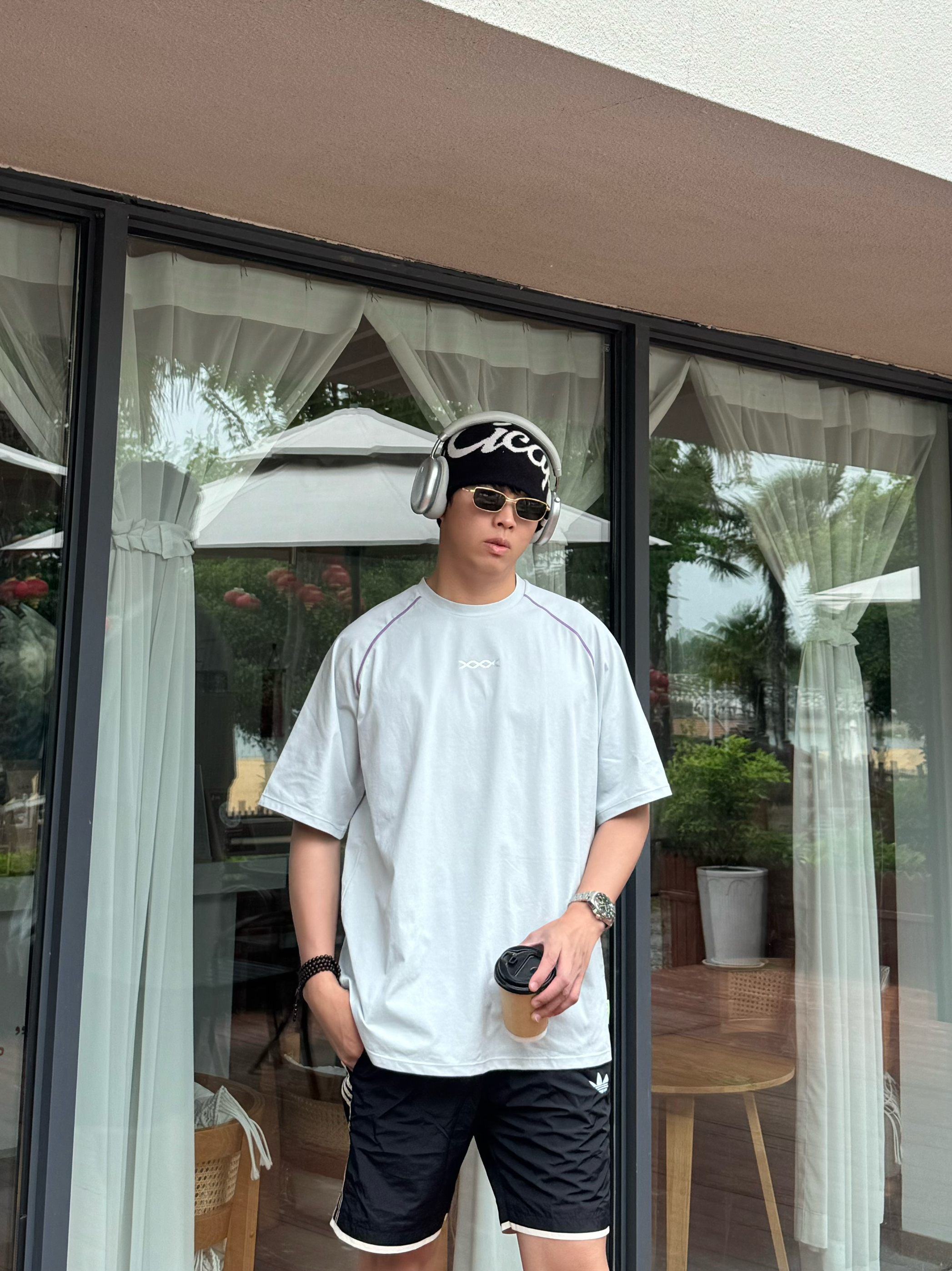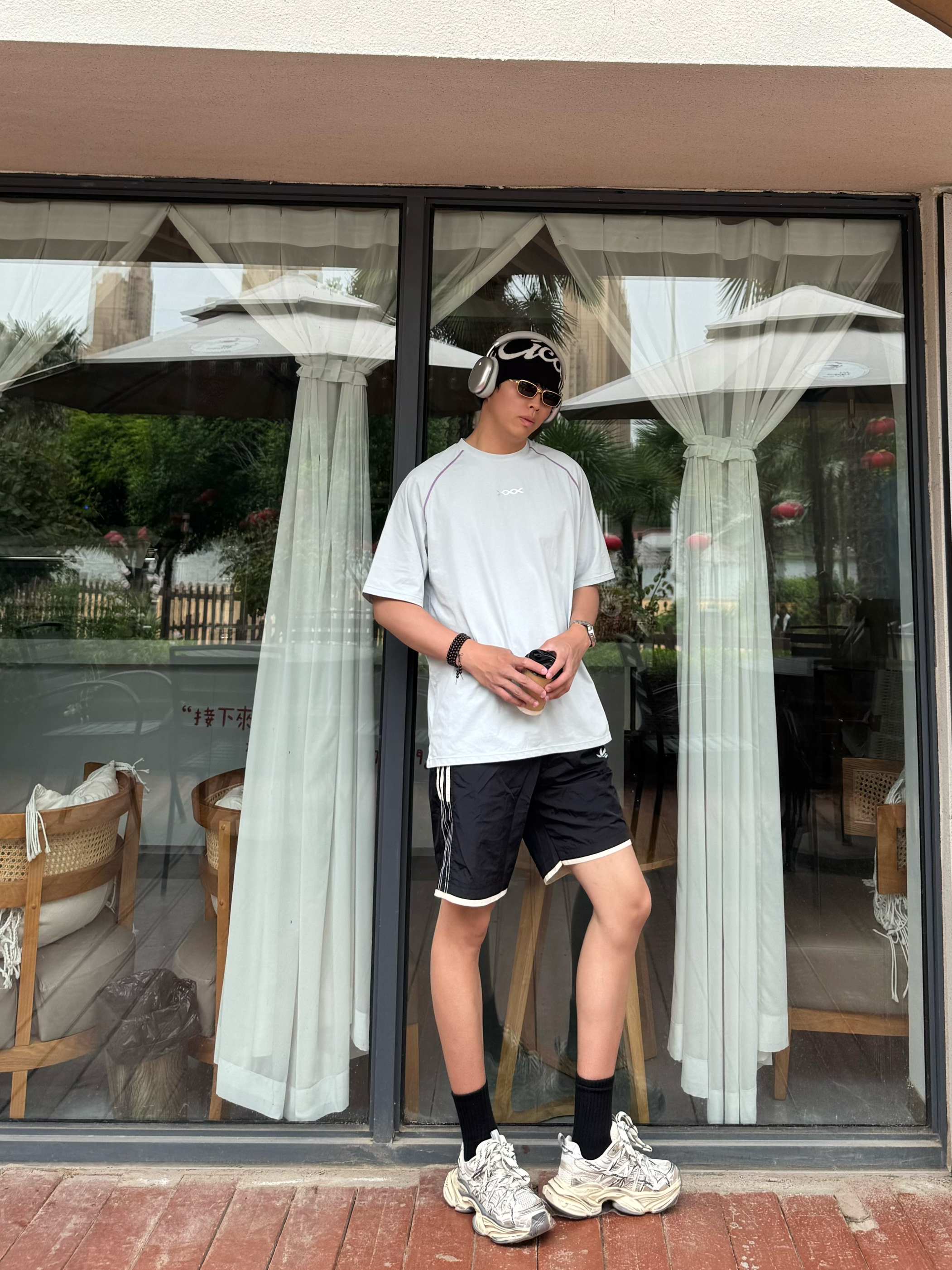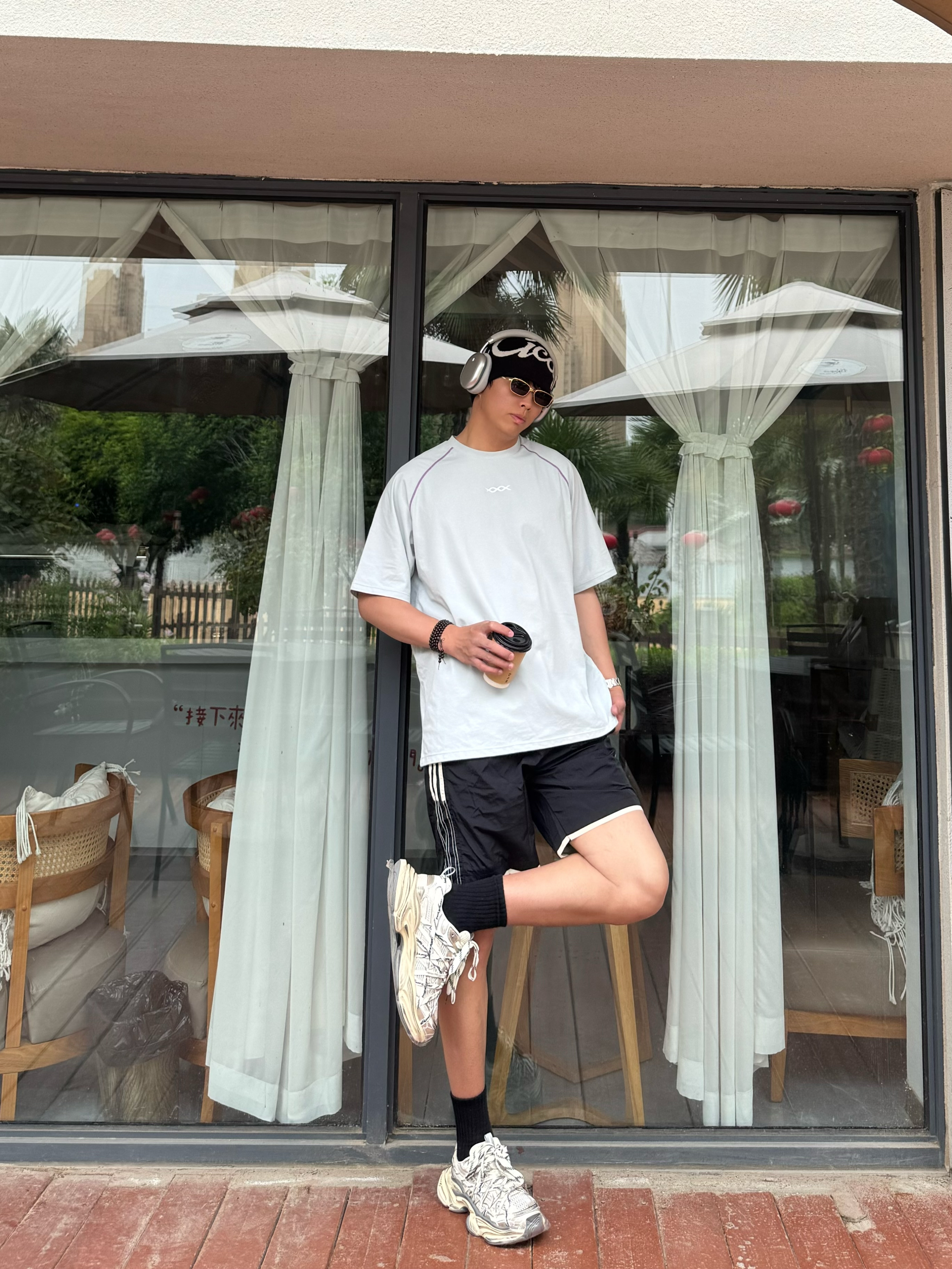 本来以为就是件普通灰T,拿到手直接惊艳!面料是那种滑滑的速干料,比纯棉透气10倍。肩膀的撞色缝线小细节超加分,不会像烂大街的白T那么单调。183/160斤穿XL刚好,长度盖过屁股,搭短裤牛仔裤都巨帅。