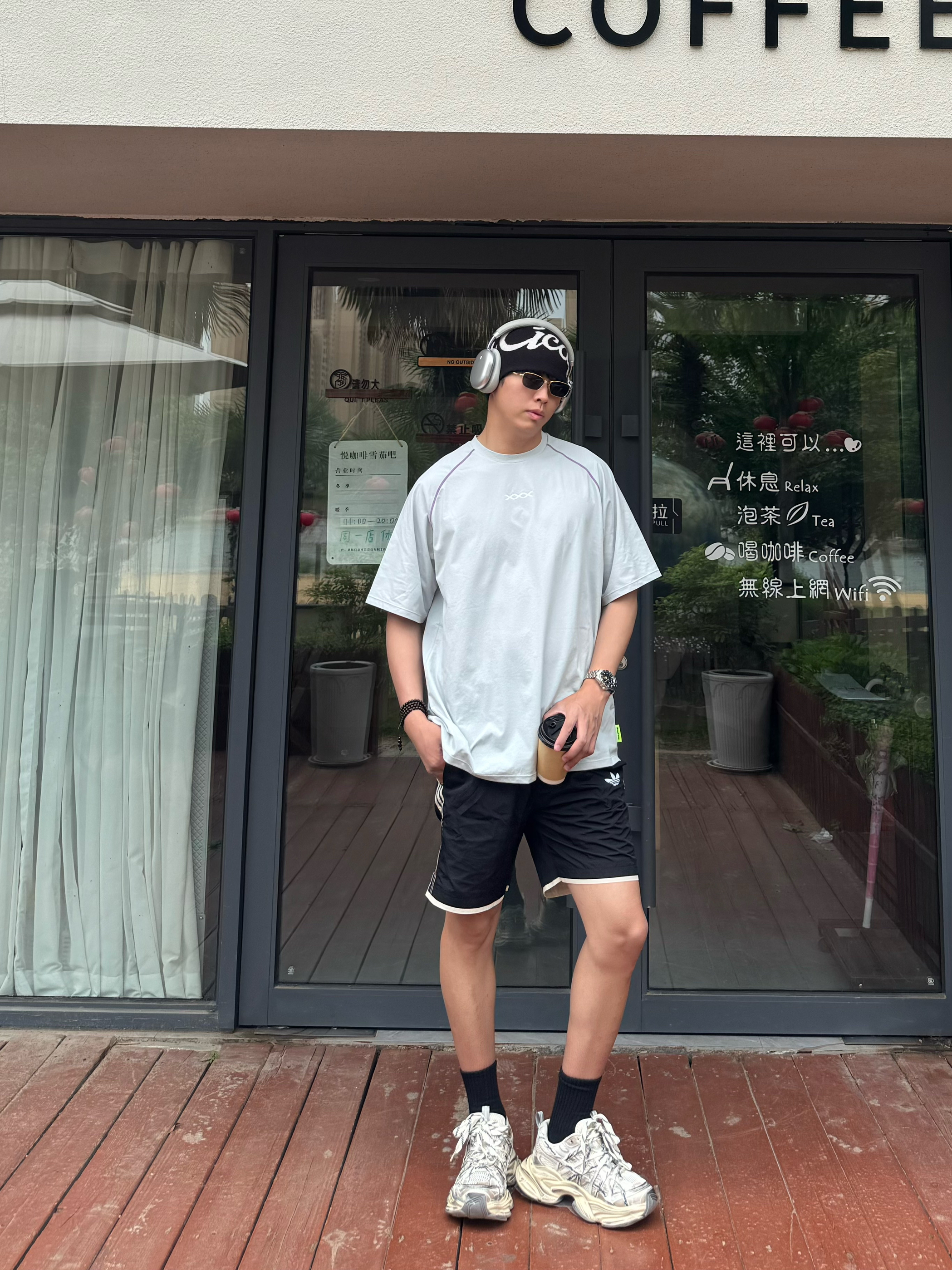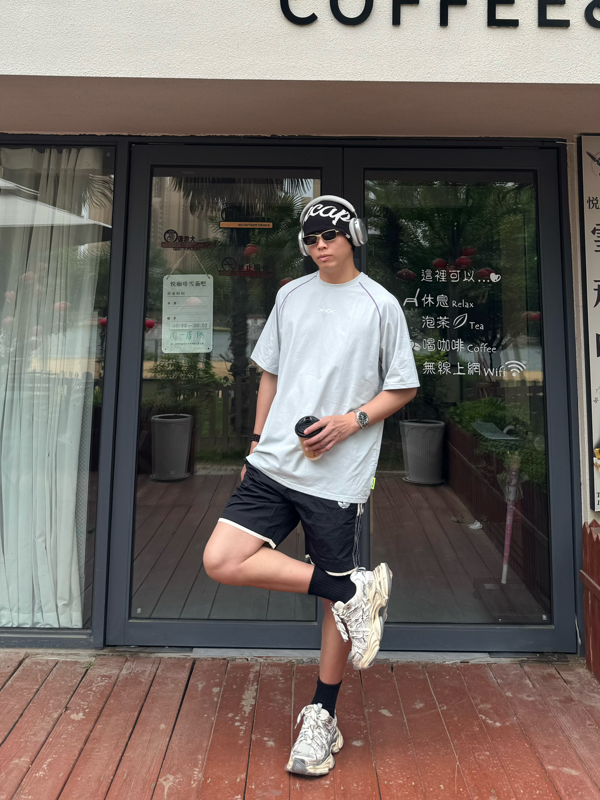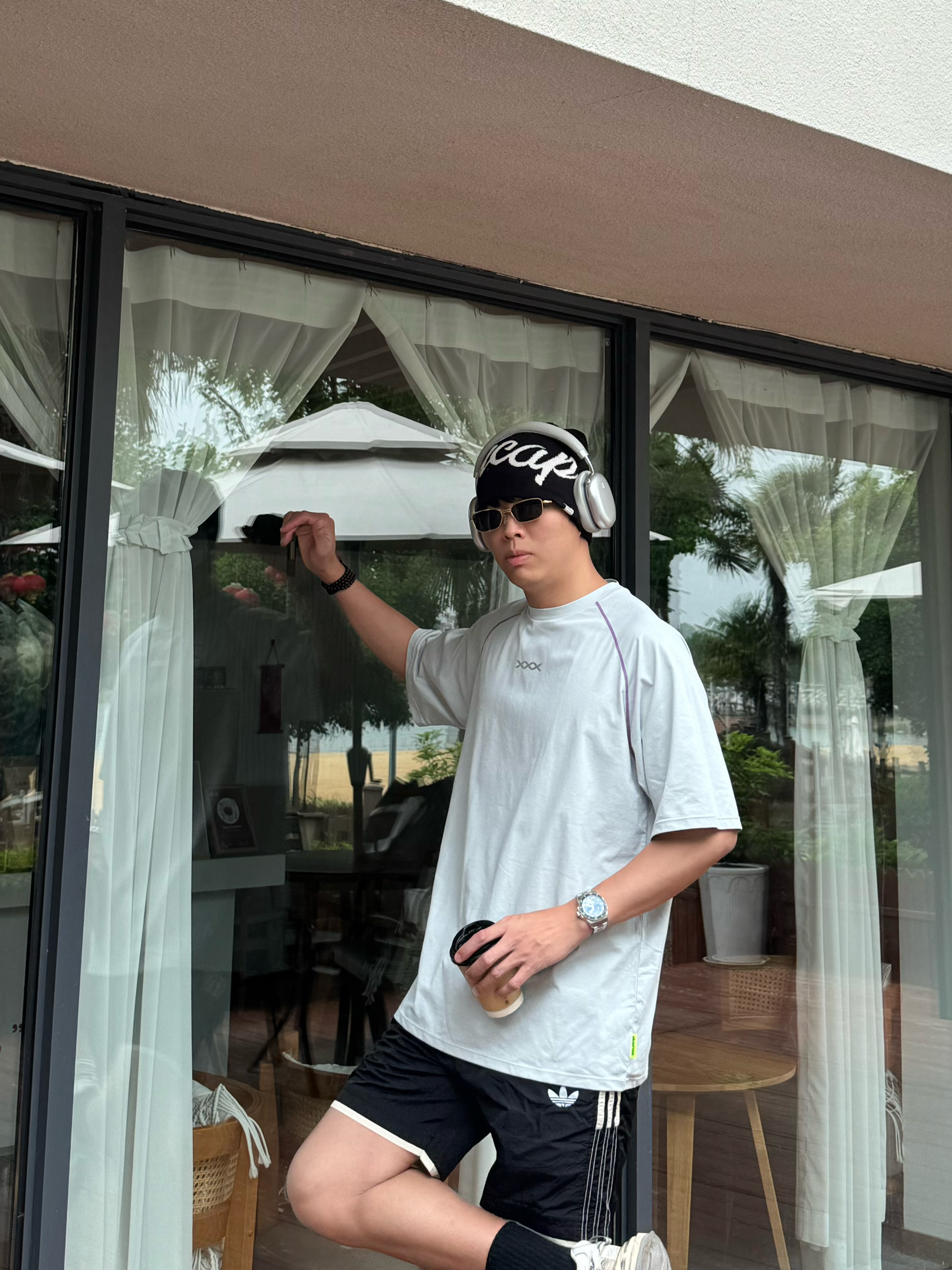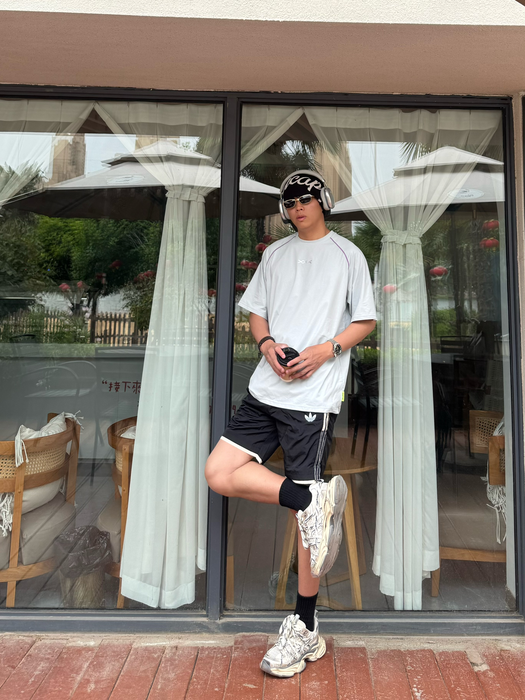 本来以为就是件普通灰T,拿到手直接惊艳!面料是那种滑滑的速干料,比纯棉透气10倍。肩膀的撞色缝线小细节超加分,不会像烂大街的白T那么单调。183/160斤穿XL刚好,长度盖过屁股,搭短裤牛仔裤都巨帅。