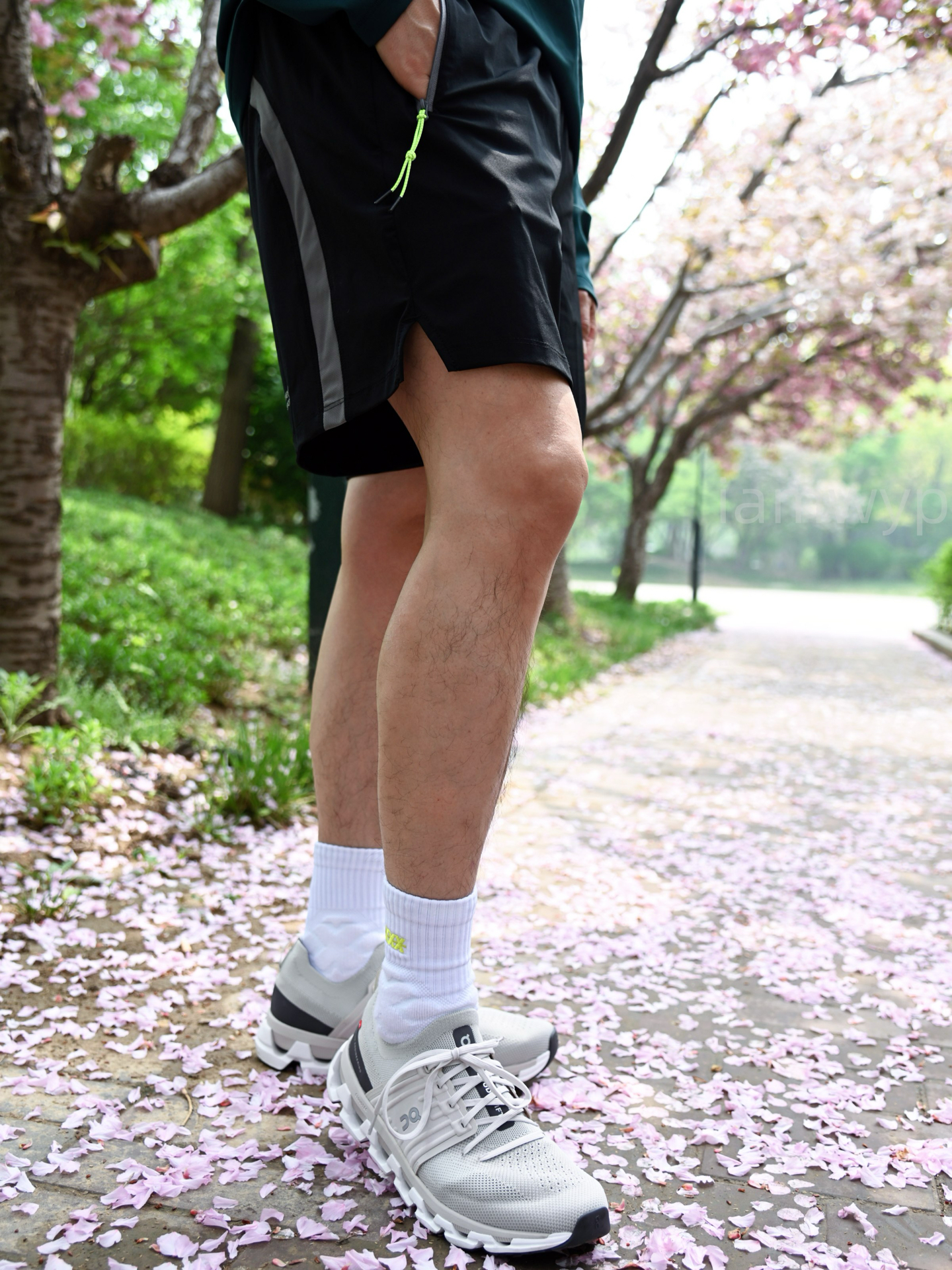 早八出门已经有点热了,相比还在穿秋裤的一些人,穿短裤出门虽早但绝对不会迟到。 这样的一身确实很轻松,绿色上衣我觉得还是非常拥抱大自然的。黑色为主的短裤宽松还吸汗,不管是在开车还是户外运动都始终保持干爽,一双轻便舒适的休闲跑鞋已足以穿遍这个春夏,即使通勤路上也会拉满回头率。那么你们喜欢上长下短的穿搭方式吗?