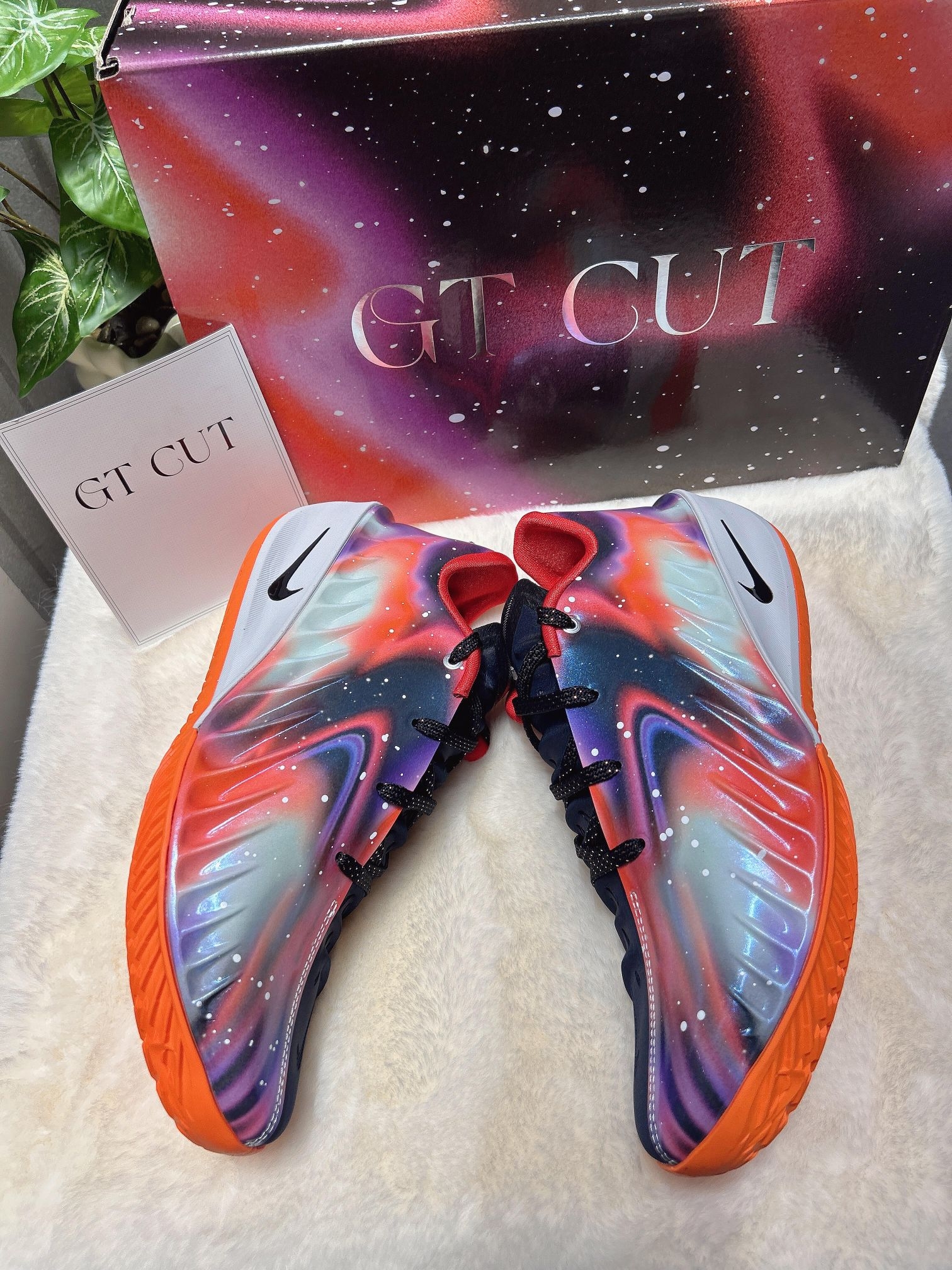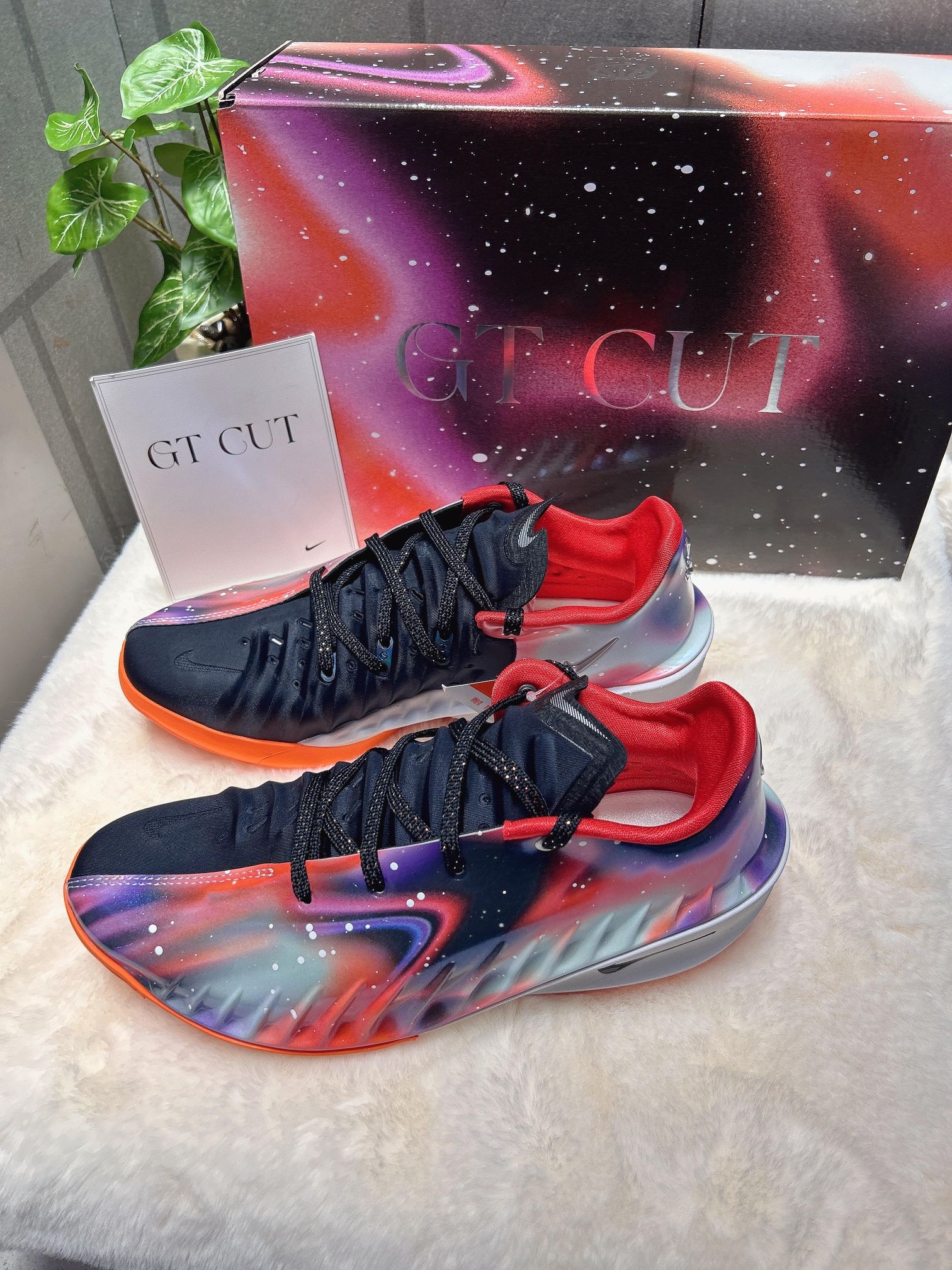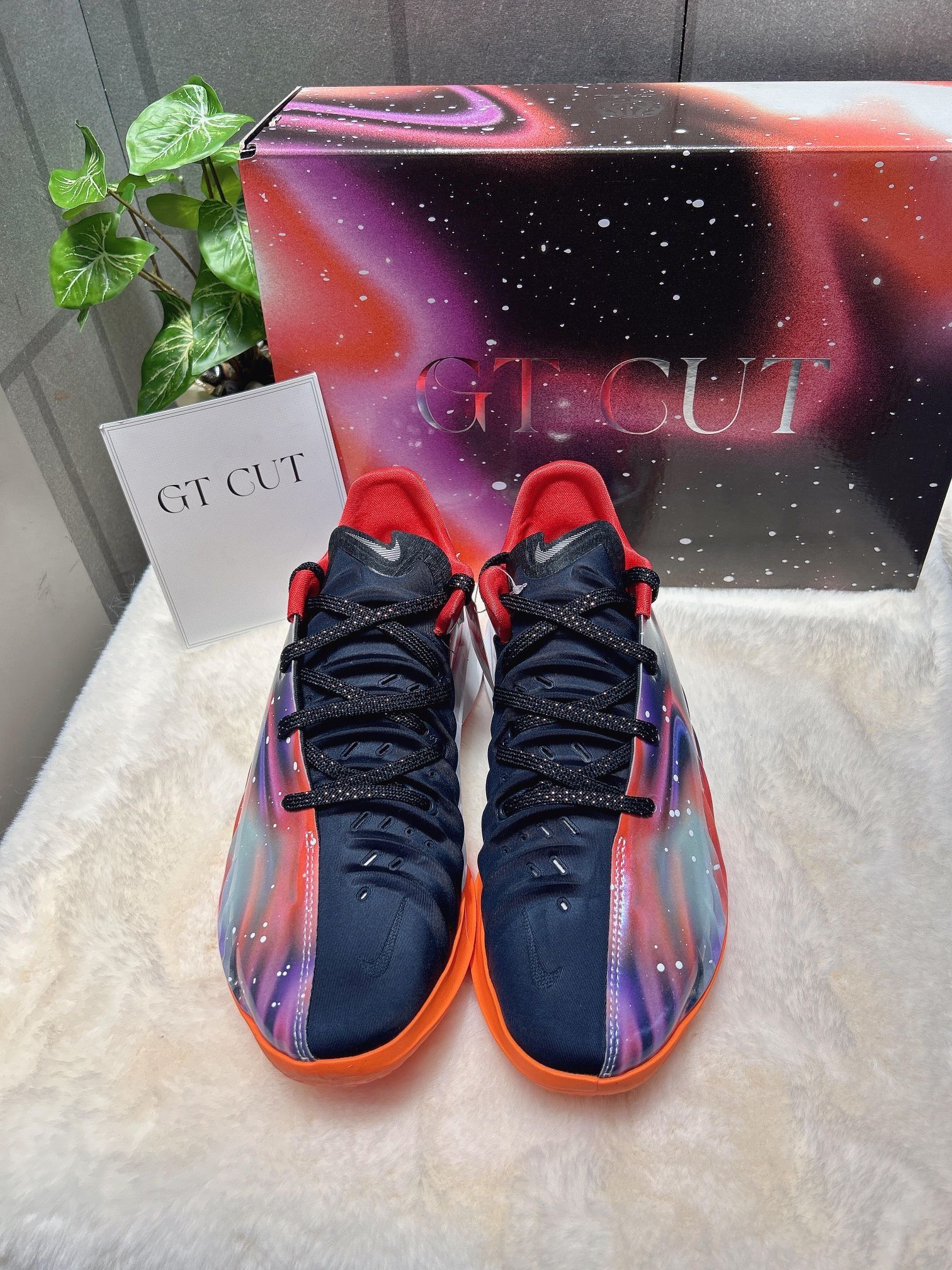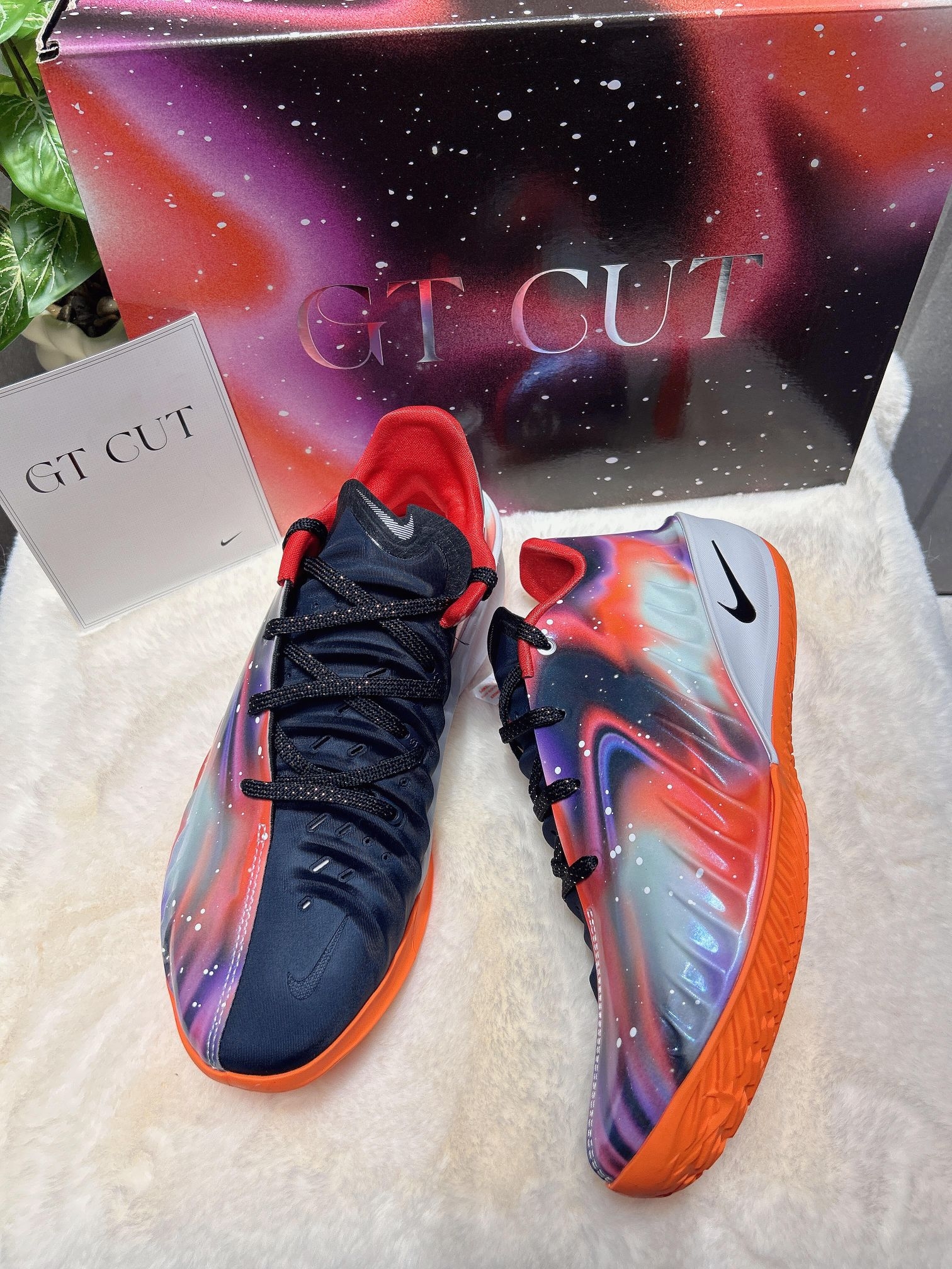 很难不爱这双Nike GT.Cut4耐高星空限定配色! 直接把整片银河穿在脚上,颜值真的狠狠拿捏✨ 鞋面采用炫彩质感面料搭配黑色拼接设计,星云渐变的氛围感拉满,高级又吸睛。 细节直接拉满,暗藏CHBL中国篮球联赛专属彩蛋标识,国风篮球情怀直接拉满,专属感十足,帅气又有纪念意义。 实战脚感依旧在线! 整体包裹性紧致贴合,上脚贴合双脚不压脚, 突破、变向、急停都格外丝滑稳定,缓震回弹在线, 兼...