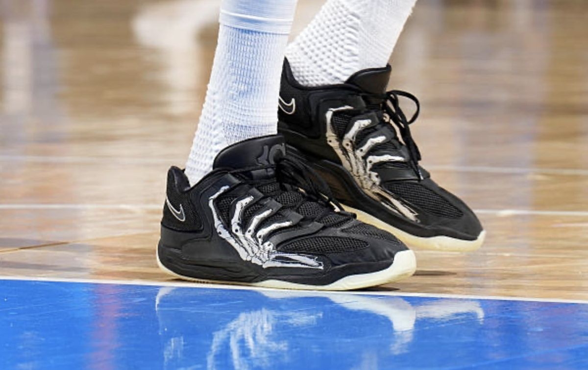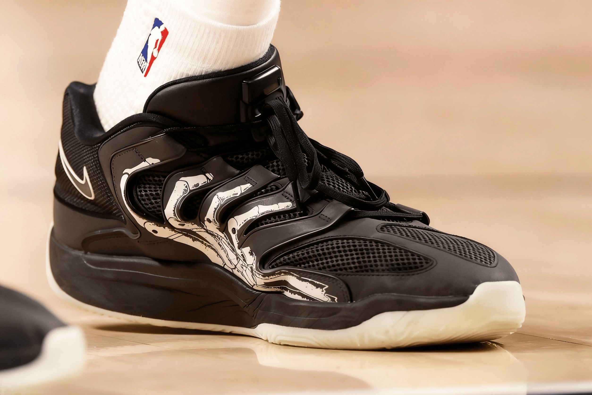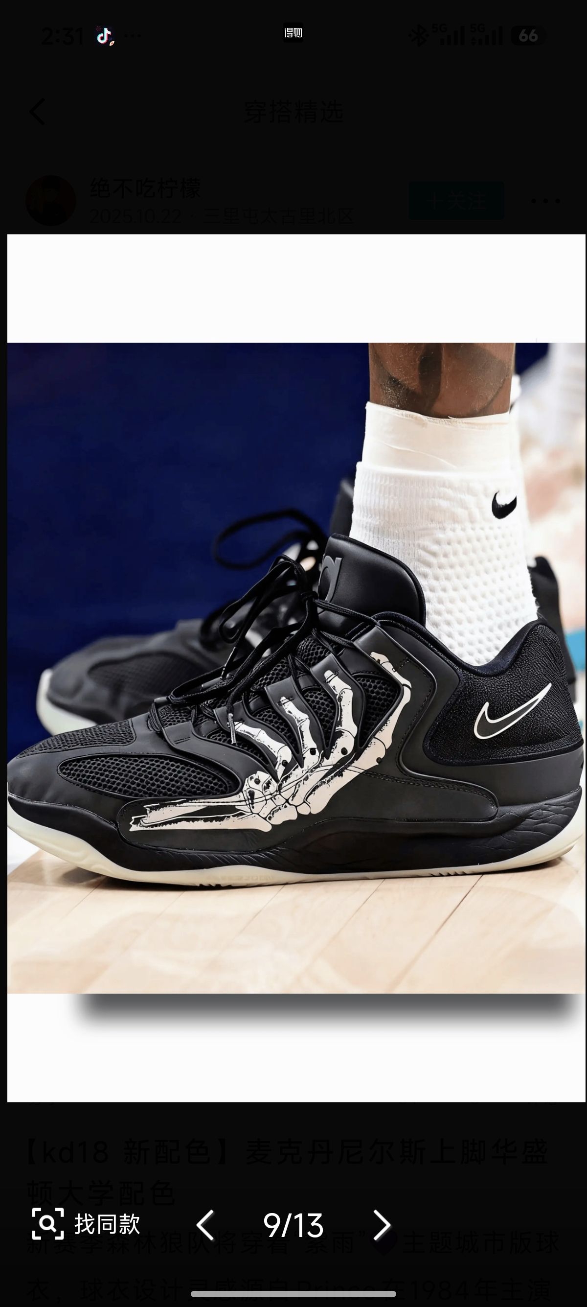 今天麦丹直接让穆雷崩溃了,只有在场上就是如影随形,缠斗不断。防守太硬了,nb。 🔥 死神降临!麦克丹尼尔斯季后赛上脚这双KD 18「万圣节骨手」,直接打出20+10的硬数据! - 黑白骨手的设计把杜兰特的“Slim Reaper”绰号刻进鞋里,鞋面的骷髅骨纹细节直接拉满,外底还是夜光材质,关灯就是球场最杀的存在。 - 实战性能更是能打:前掌Zoom Turbo气垫+后掌Air Sole,...