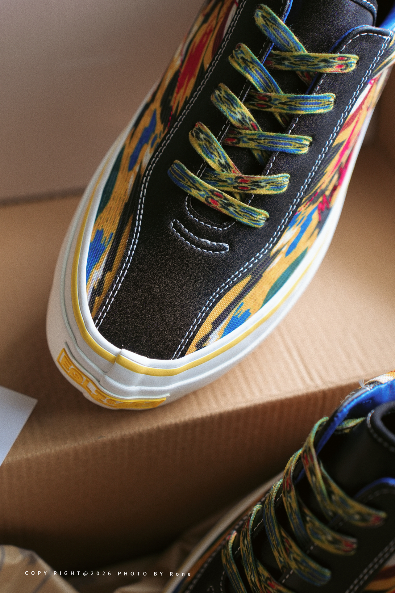 宝子们~今天聊聊EQLZ和卡米然联名的404美式板鞋。 这款联名鞋款颜值在线,融入浓郁民族风情与地域文化设计,扎染涂装很有个人风格。早前的联名款式热度不低,入手难度不小。 这次新出的黄色款,视觉氛围更出彩,配色搭配大胆,美式氛围浓厚,上脚观感耐看。 大家觉得这款板鞋后续会不会收获不错的人气?