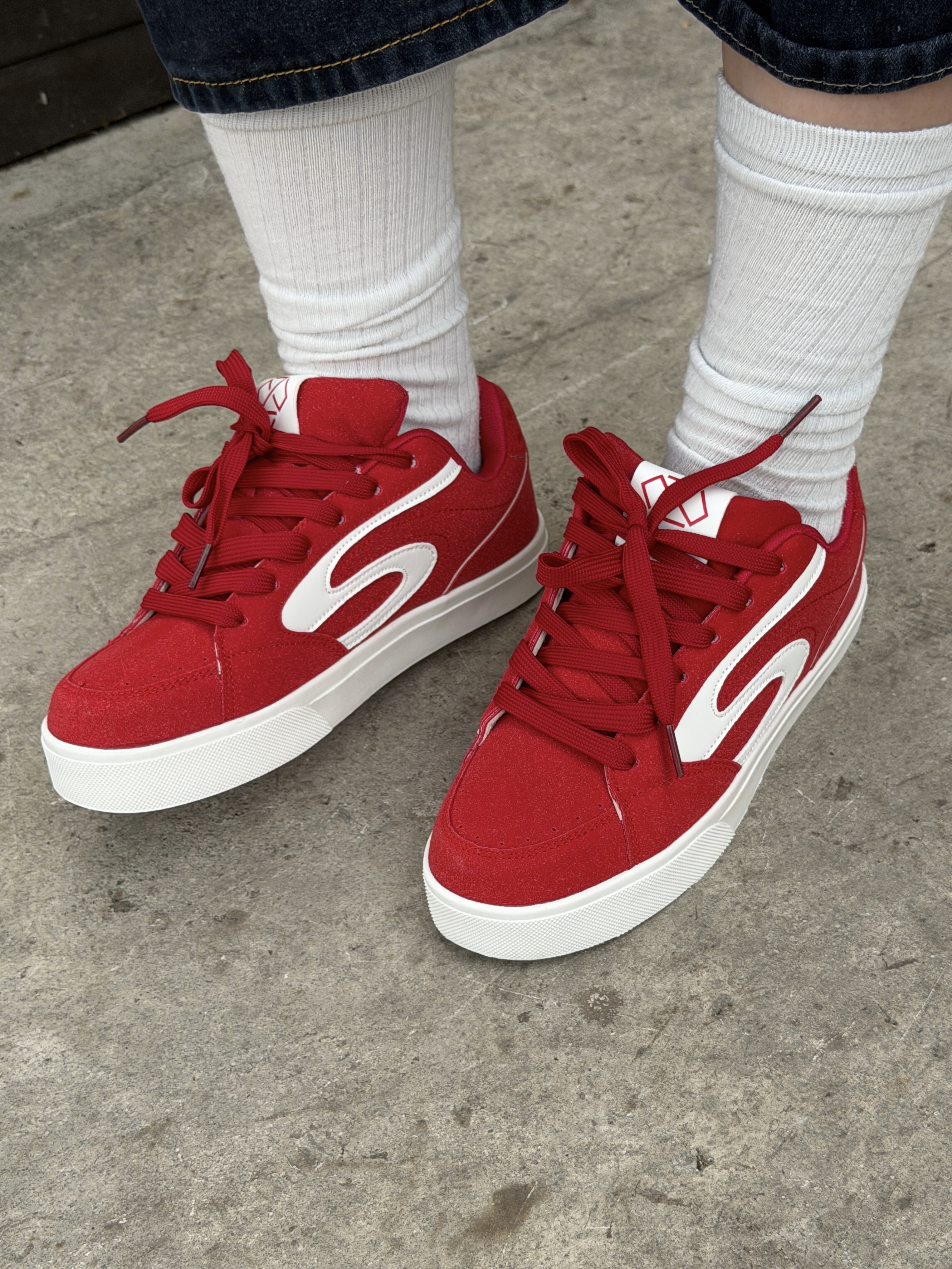 谁能拒绝一双显白又百搭的红色板鞋呀❤️ 上脚真的这双鞋子惊艳到! 脚感软乎乎的 版型很修饰脚型 复古红色超亮眼 搭配简单T恤+牛仔中裤 轻松拿捏随性街头 不挑穿搭还巨显活丽平价又好穿,通勤上学都可以闭眼冲~