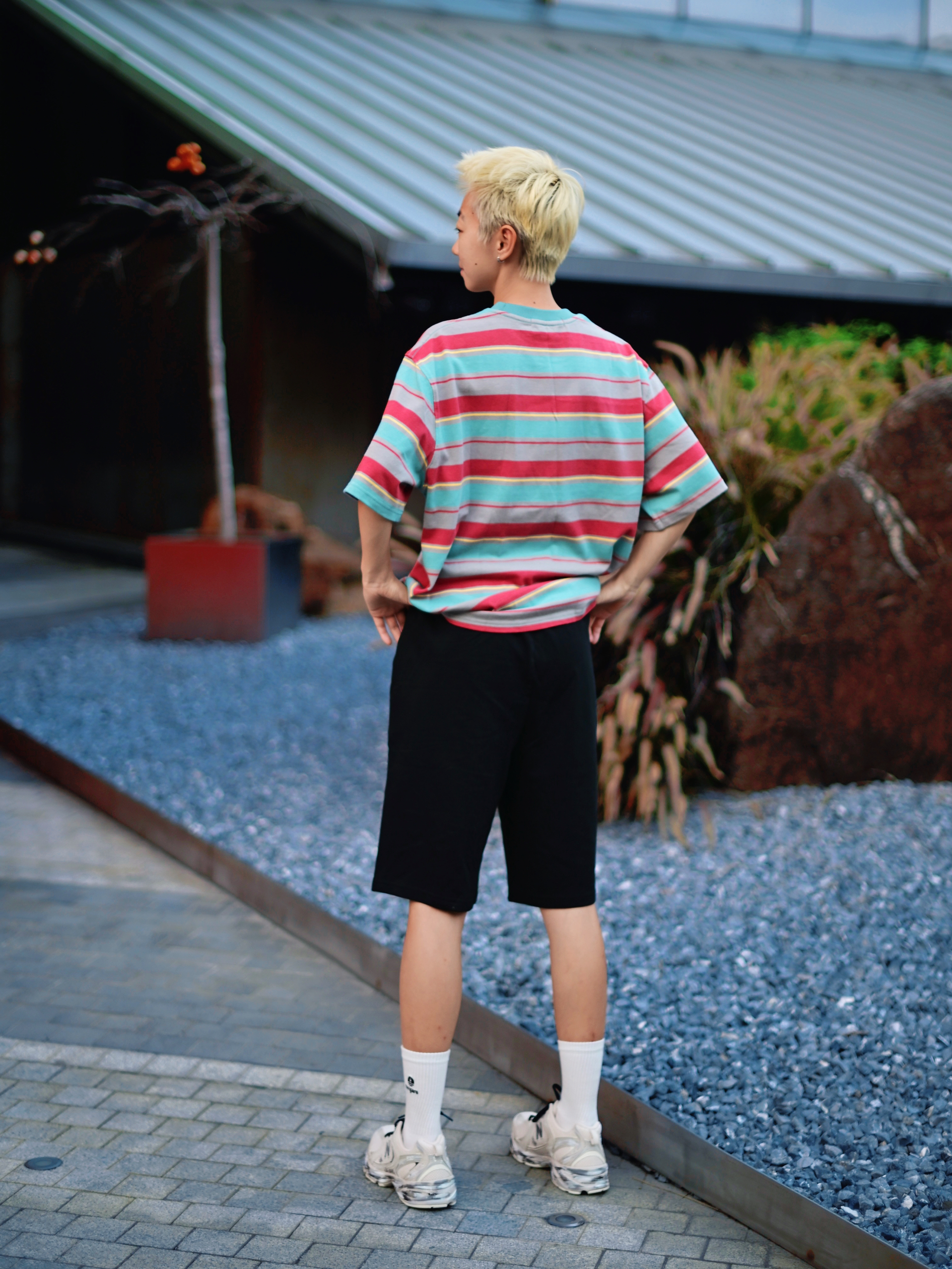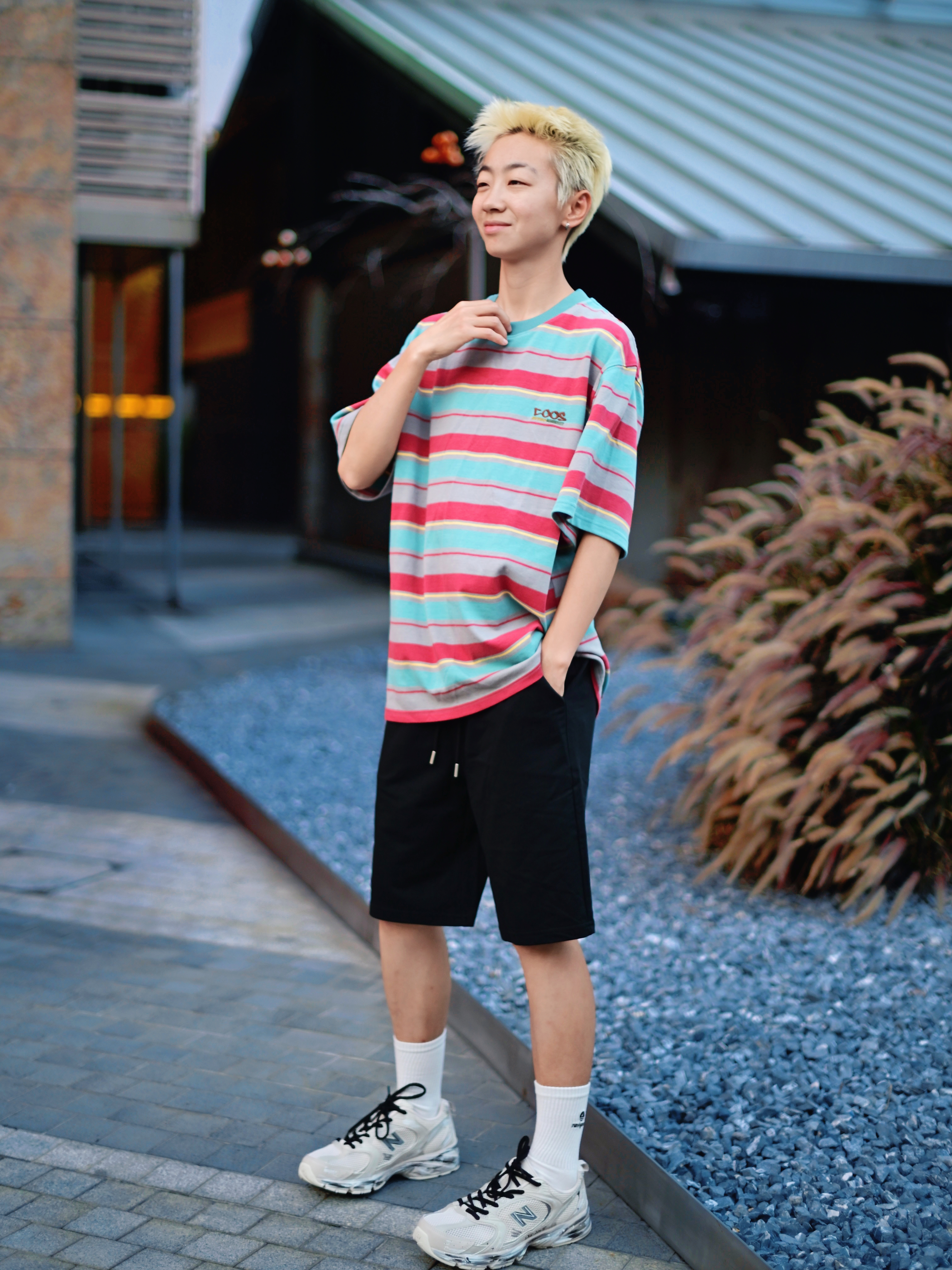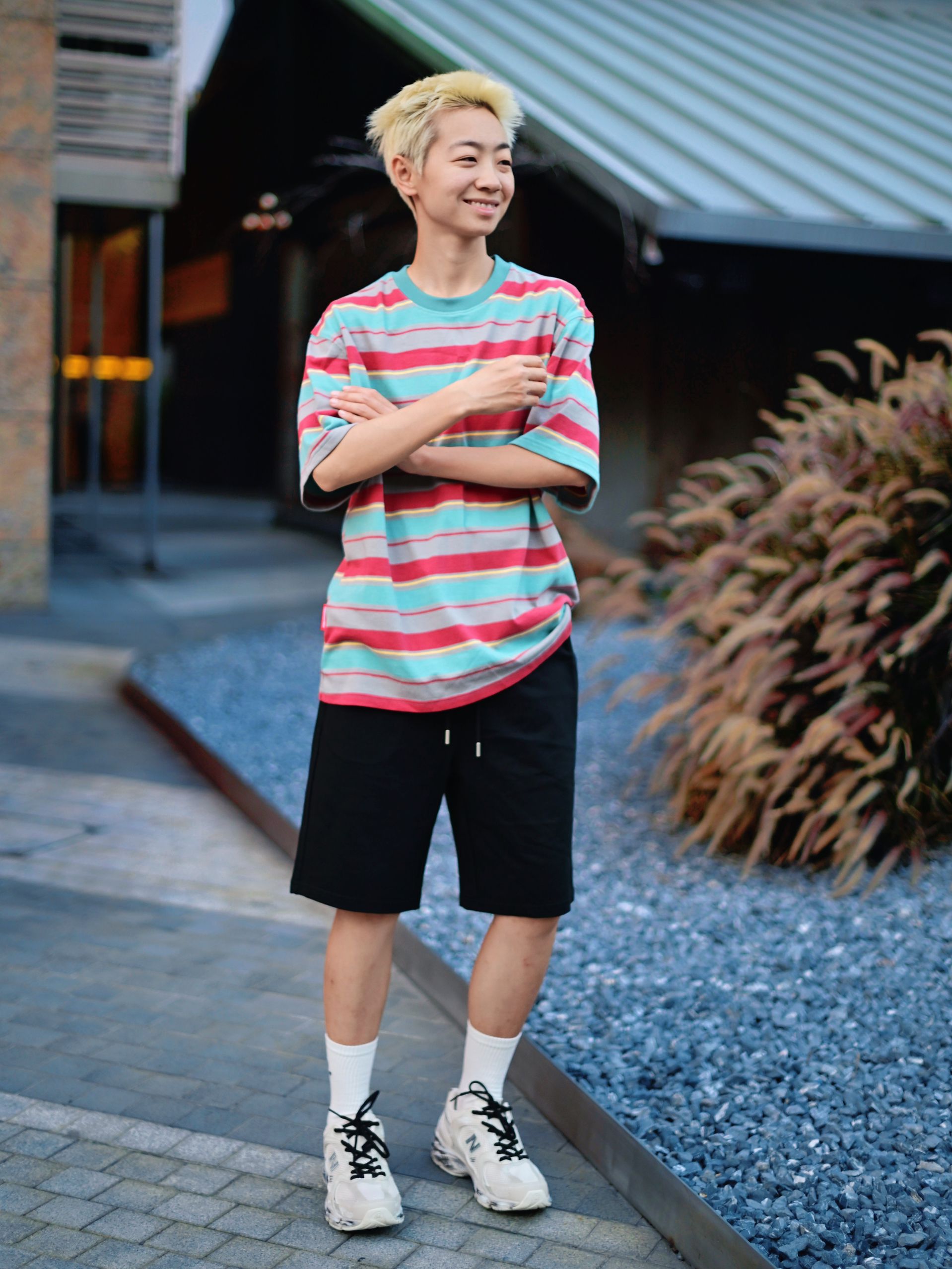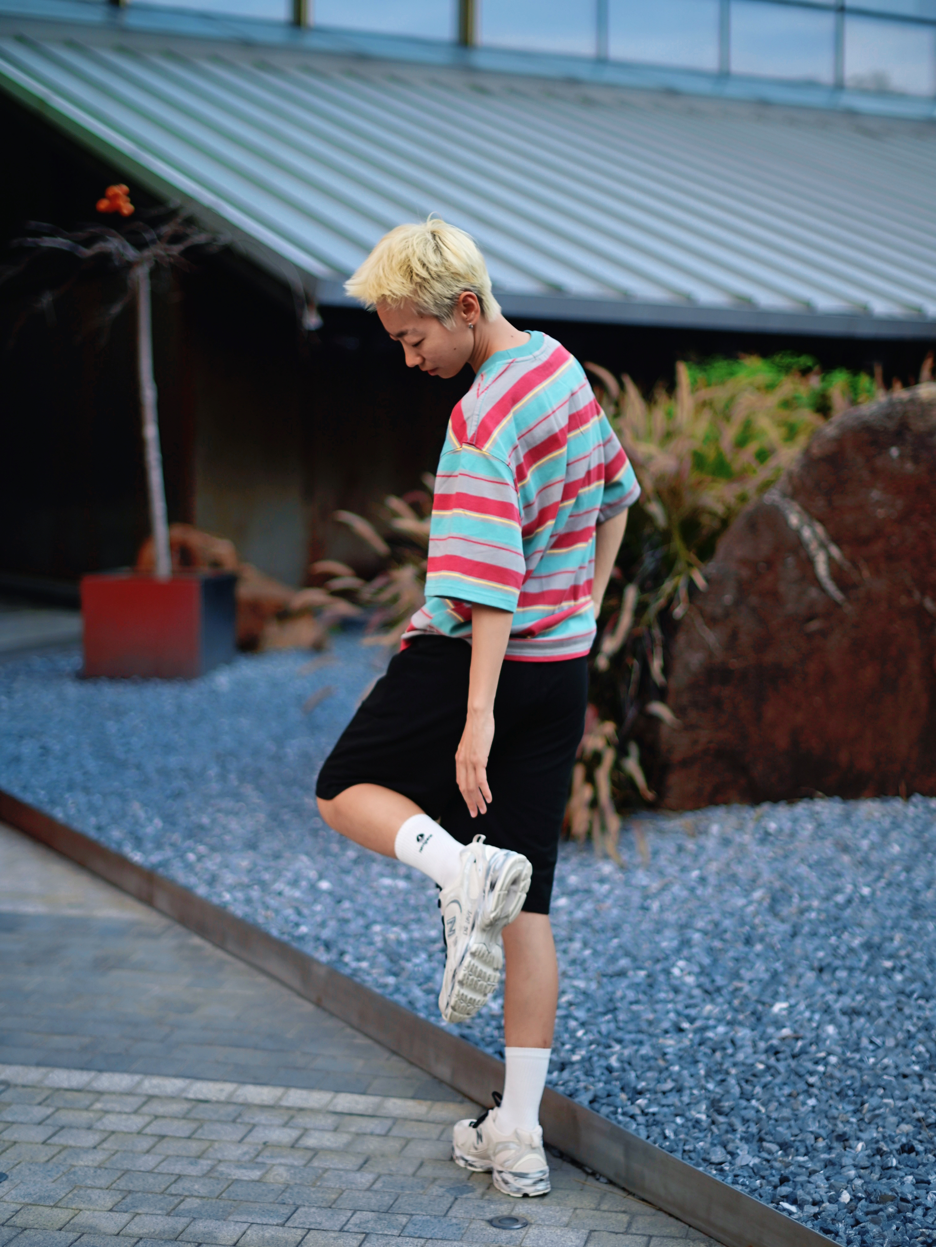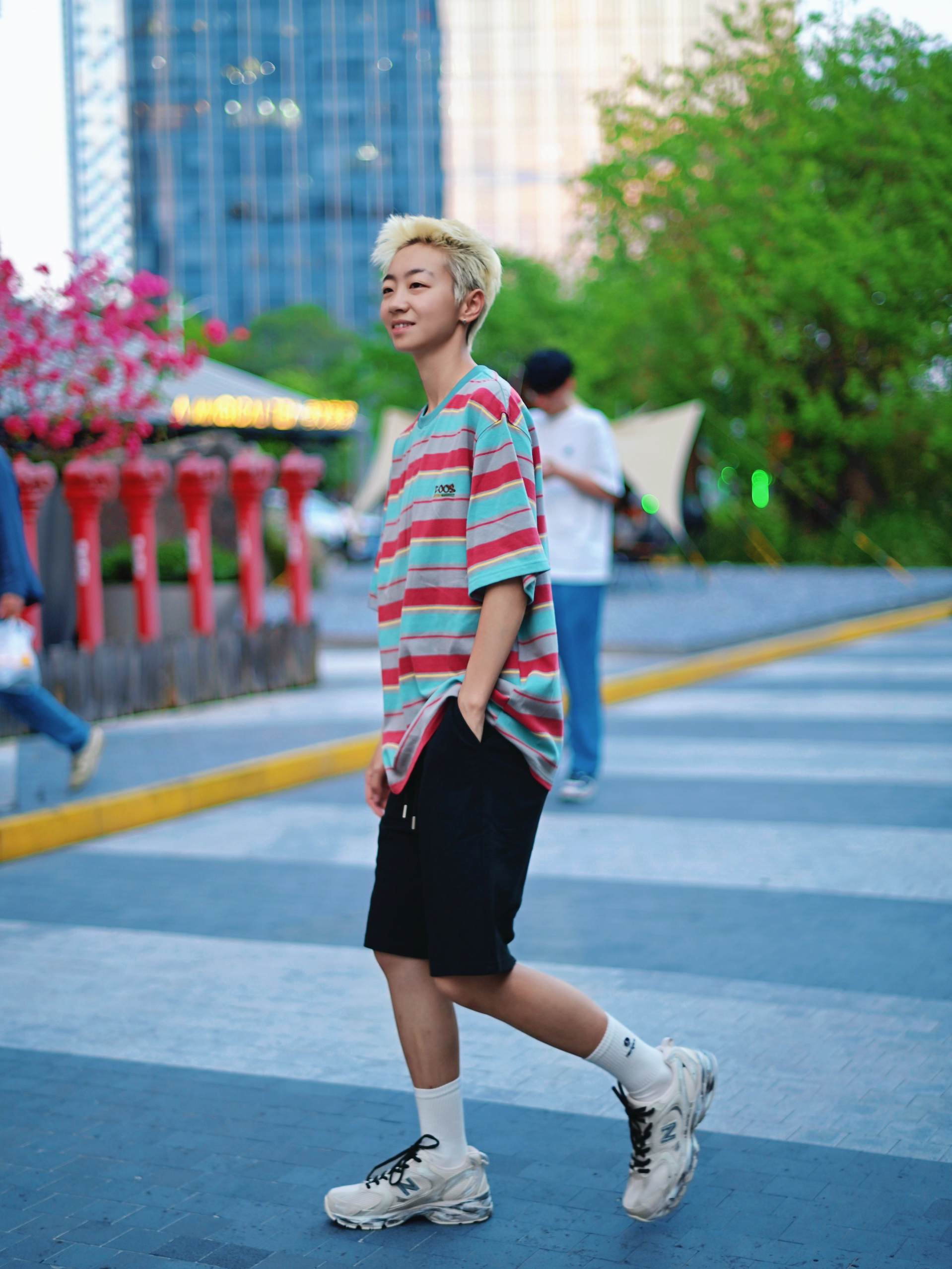 172CM|55KG 👔:m👖:m|👟:39码 春夏的街头,总需要一点复古色彩来打破沉闷 今天这身look,上脚New Balance NB 530 “Funi胶片”跑鞋👟 棕白交织的鞋身自带做旧故事感 低帮设计透气又利落 上装选择了一件红蓝条纹的宽松T恤,明媚的撞色瞬间提亮视觉重心,oversize的版型营造出慵懒的垂坠感。下装搭配一条黑色运动短裤,经典的黑与上衣的彩色形成对冲,干净利落又不失...