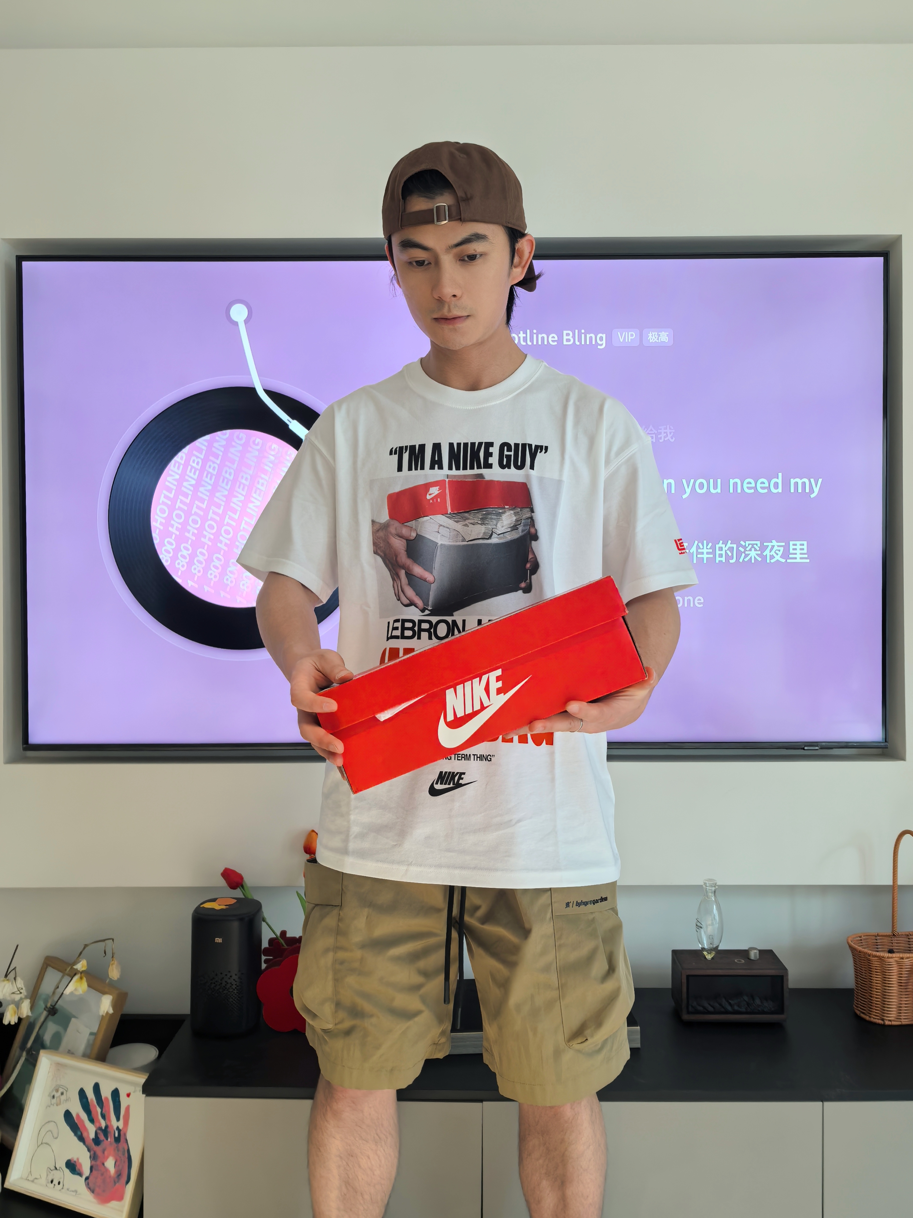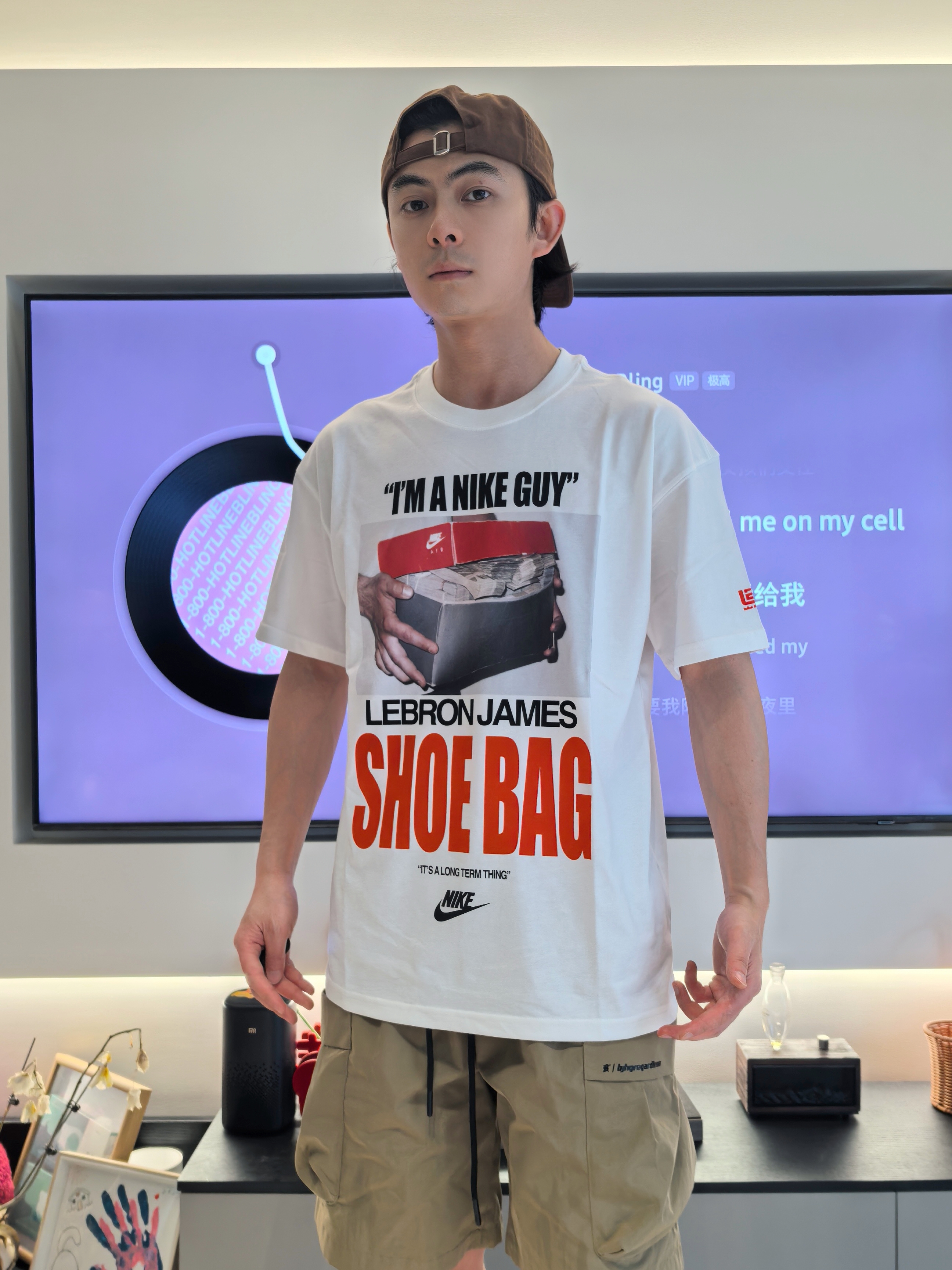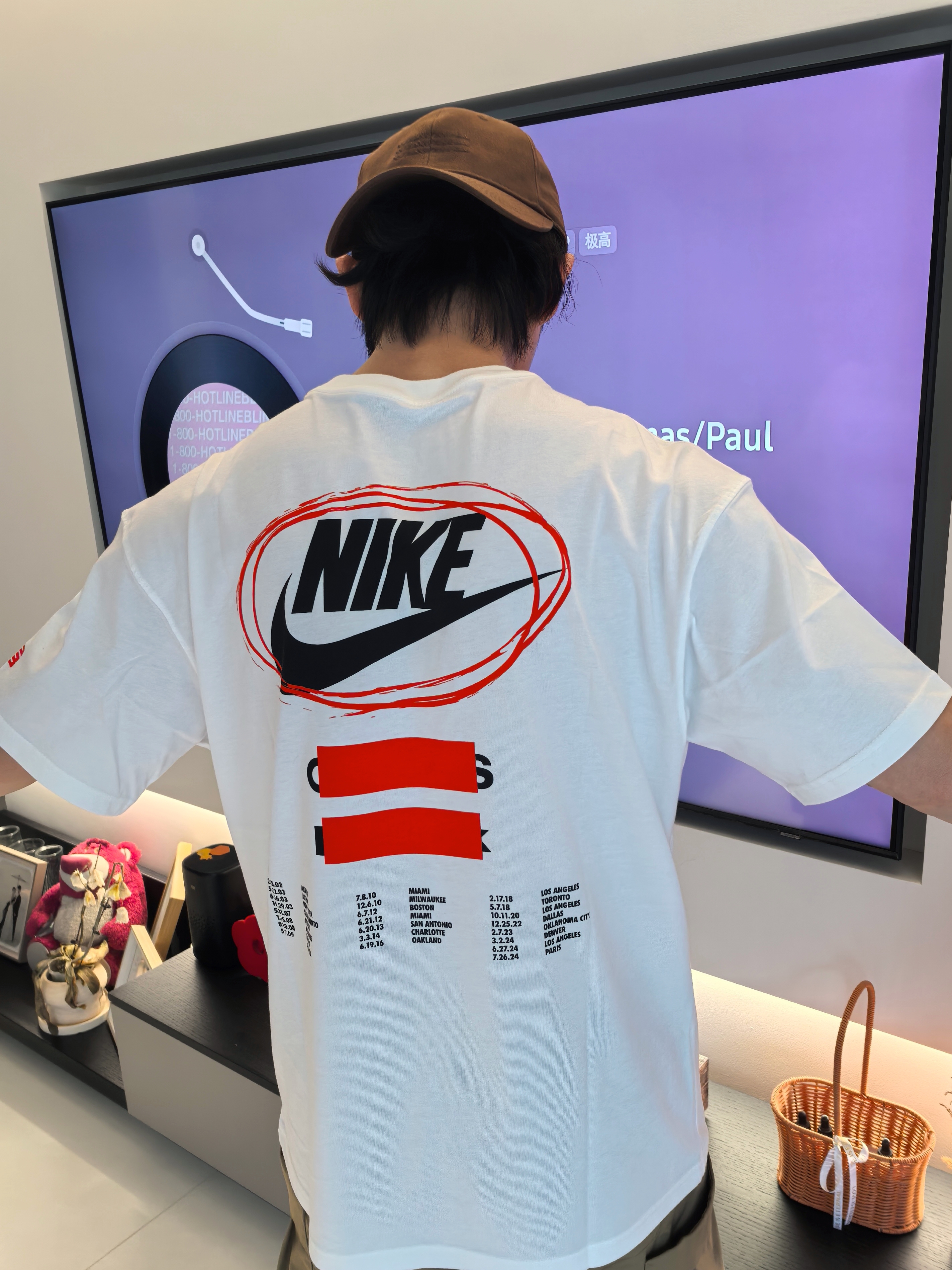 平常都喜欢穿耐克鞋子 🧊最近发现它的一些短T还不错,今天我就上身了这件鞋盒印花的耐克短T 纯白基础色调打底,但是印花却挺独特的,就是大家熟悉的橙红鞋盒,复古感浓厚 🏷️我个人比较喜欢背后的目录风格