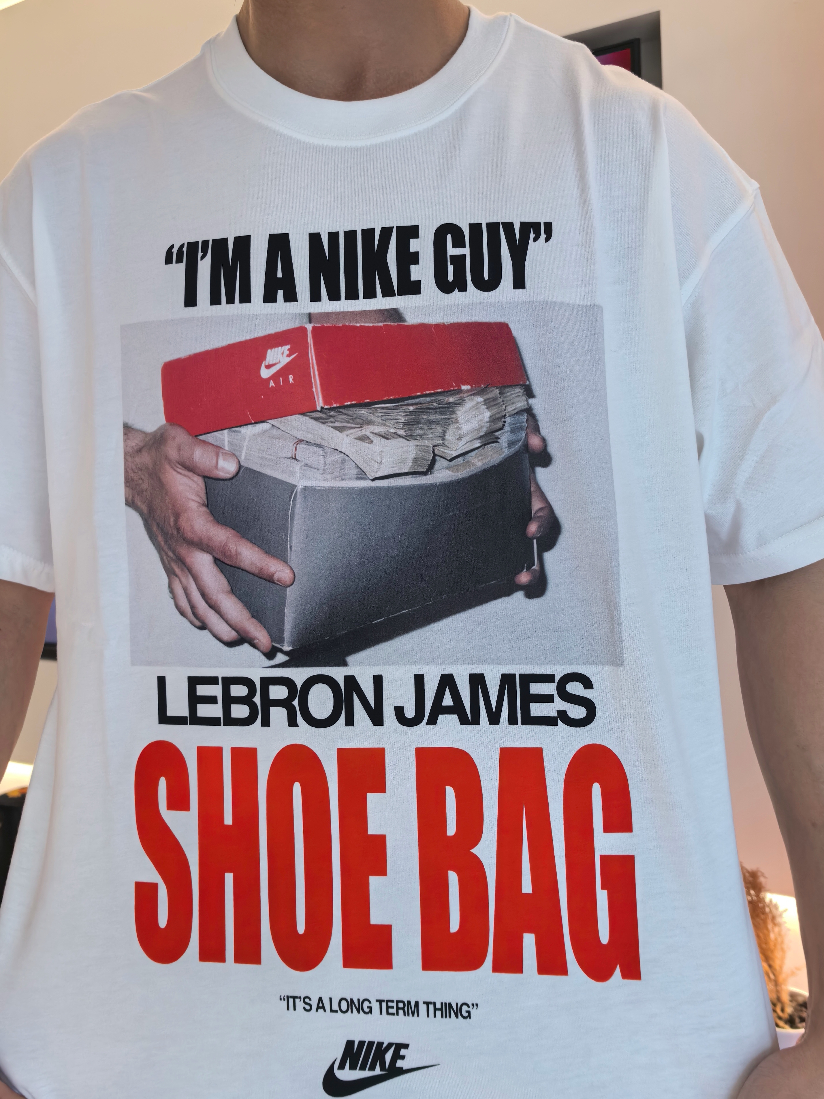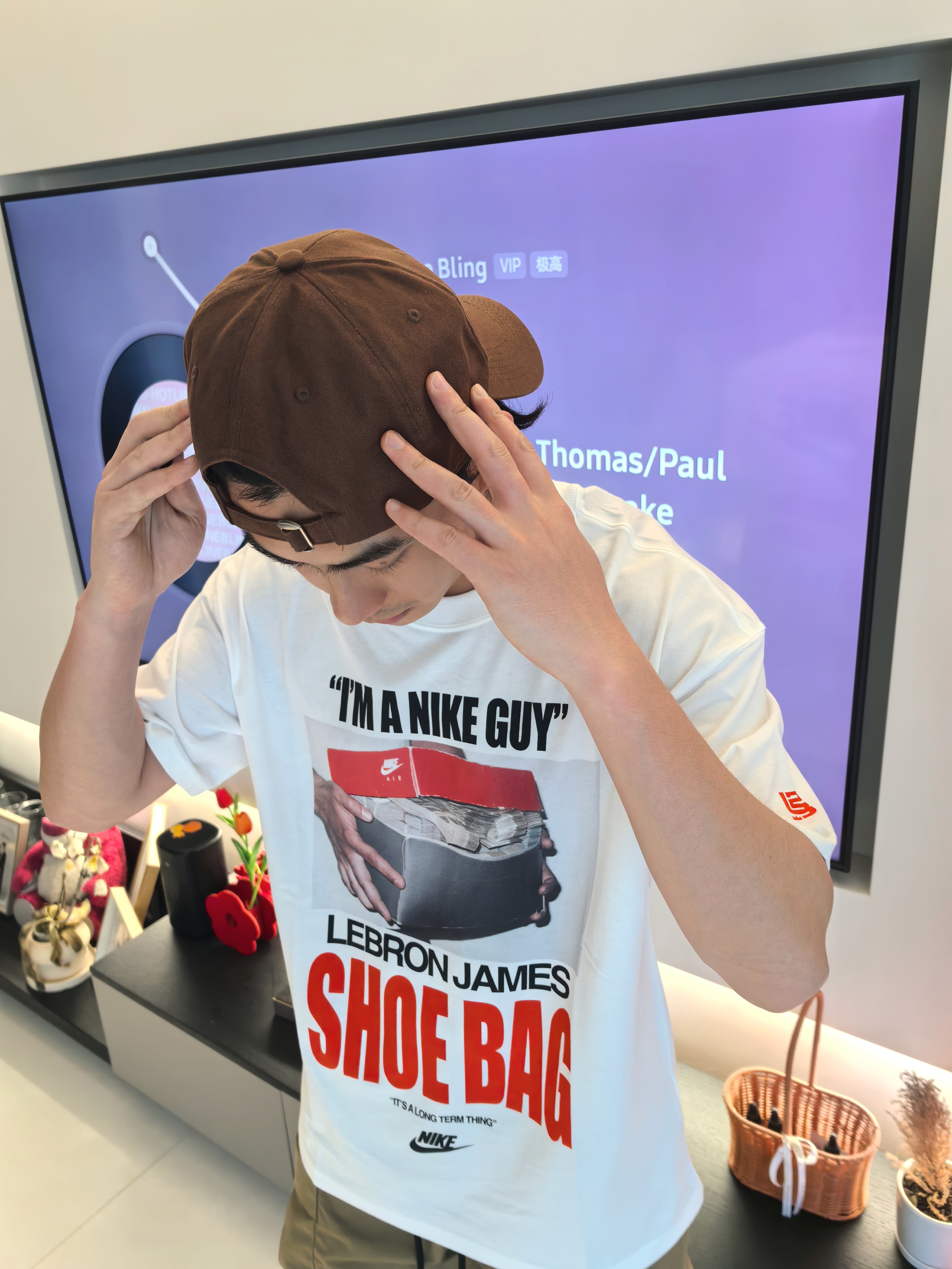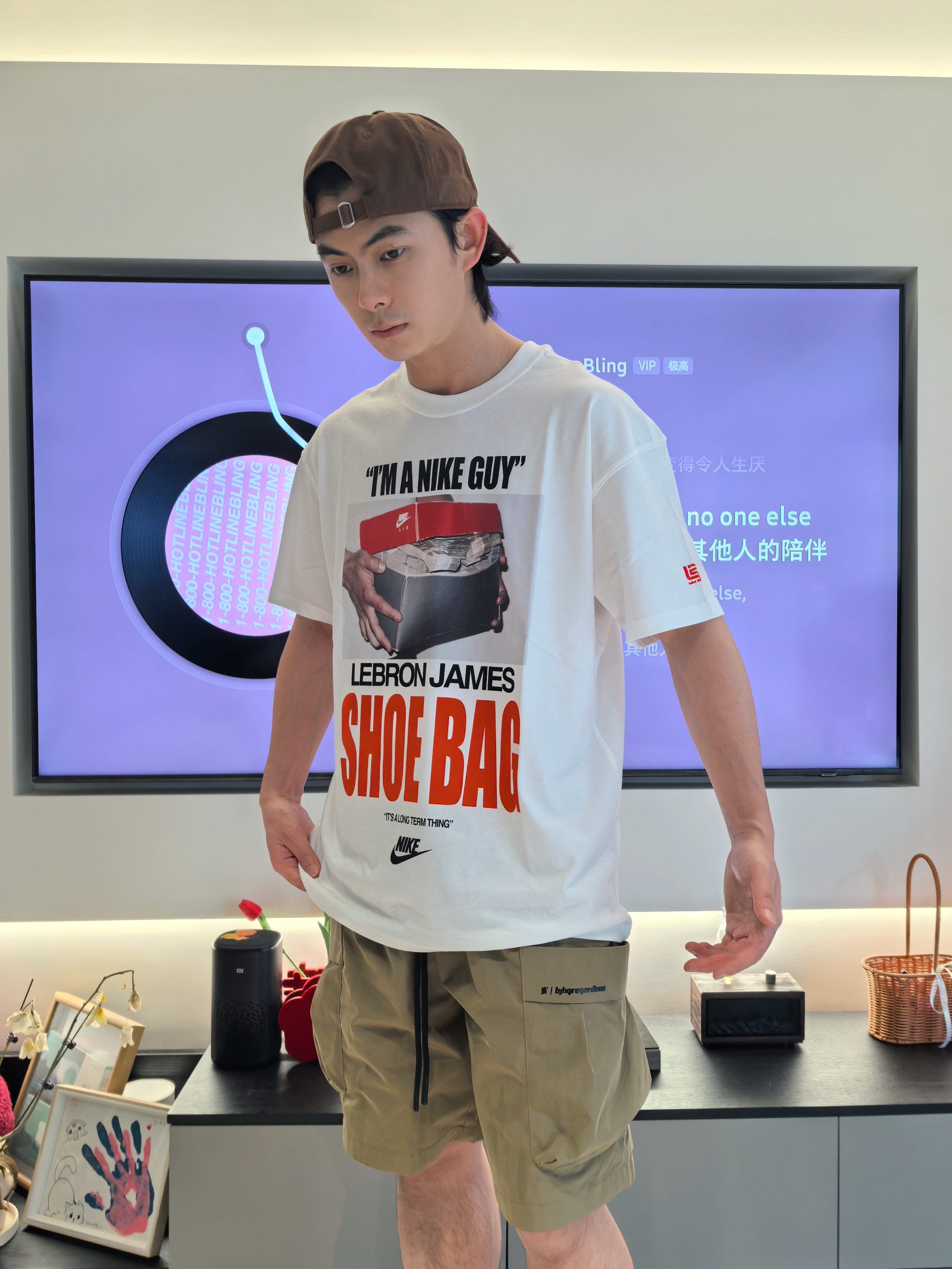 平常都喜欢穿耐克鞋子 🧊最近发现它的一些短T还不错,今天我就上身了这件鞋盒印花的耐克短T 纯白基础色调打底,但是印花却挺独特的,就是大家熟悉的橙红鞋盒,复古感浓厚 🏷️我个人比较喜欢背后的目录风格