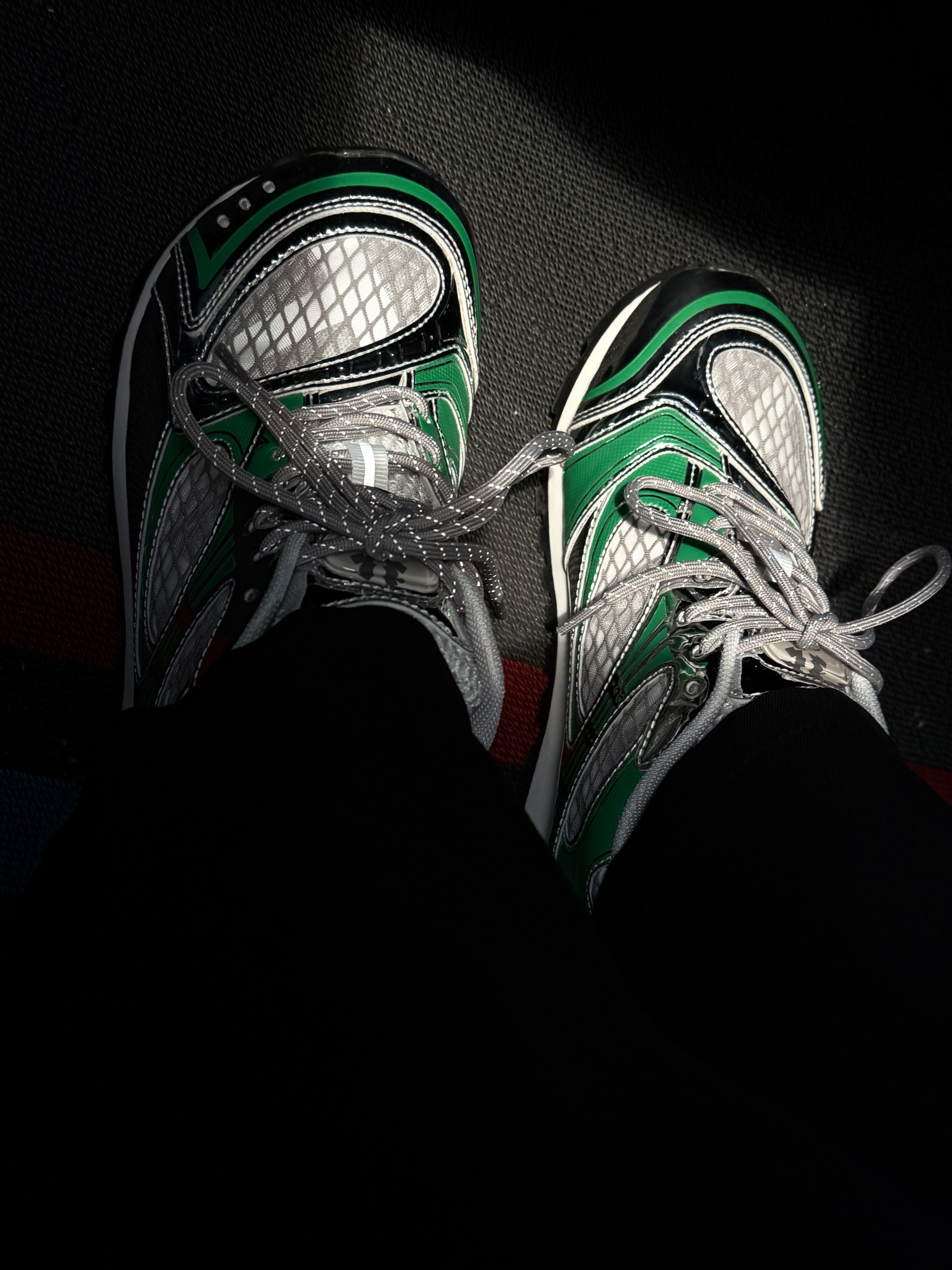 163 48 👔 👖 GGON 👟 DAVIS 赫德.戴維斯 一不小心就被帅住! 德训鞋里的配色天花板来了 绿银撞色设计 大胆又吸睛 不规则的歪头鞋型有点类似于胖头鞋 但是又没有那么笨重 日常可以去搭配一些亮色或者黑白都很不错 美式街头与户外机能通通拿捏🫴🏻