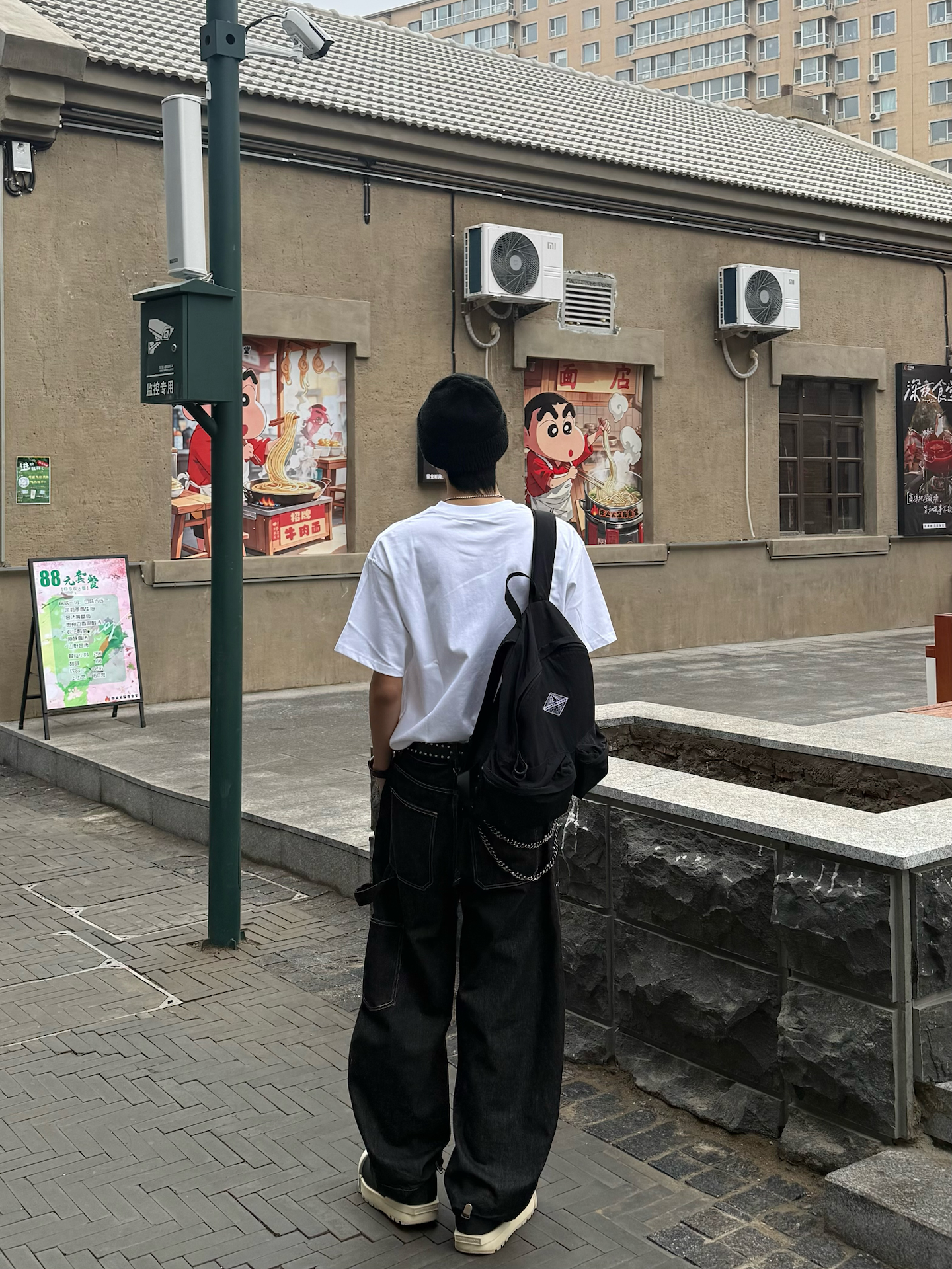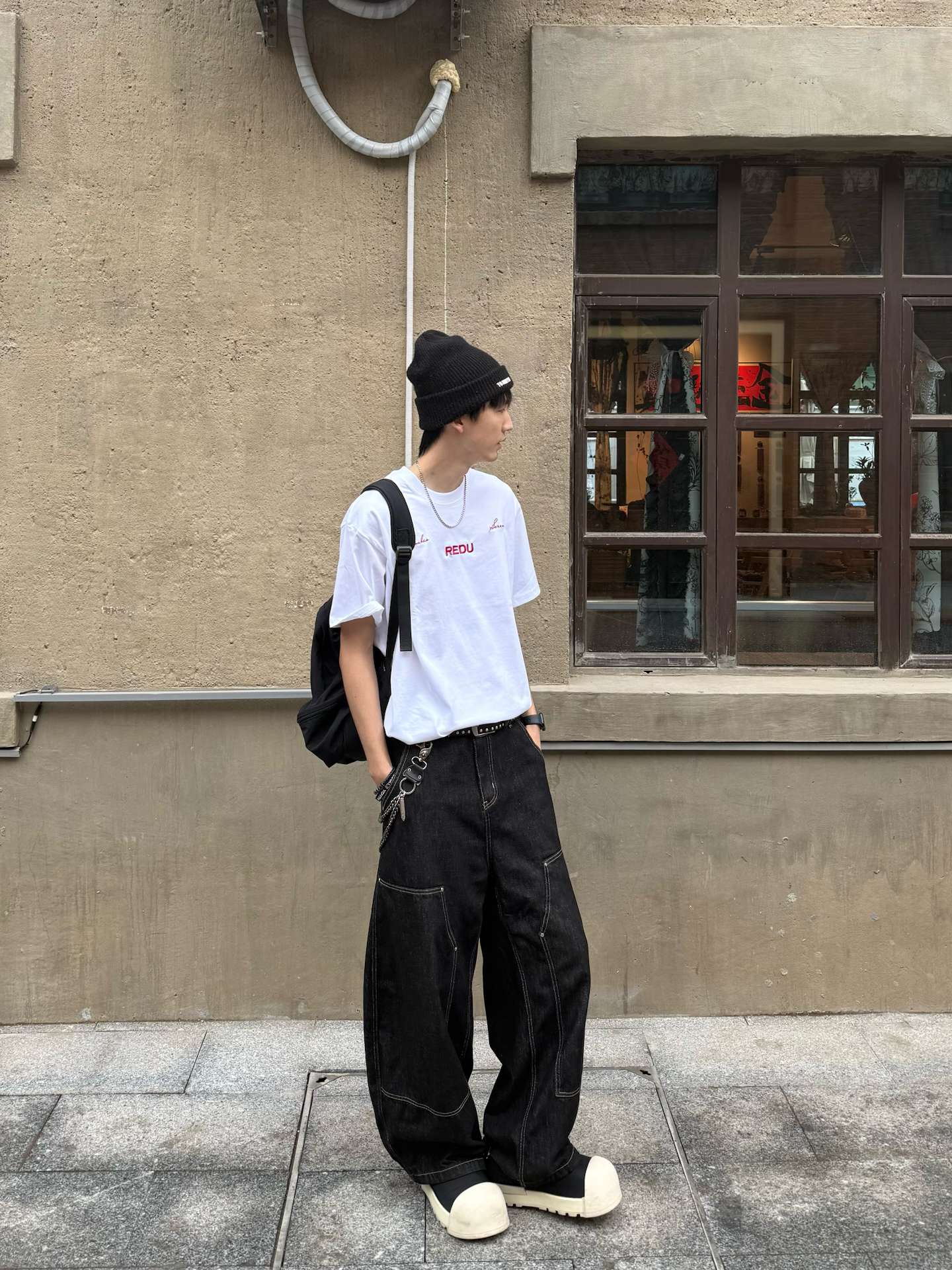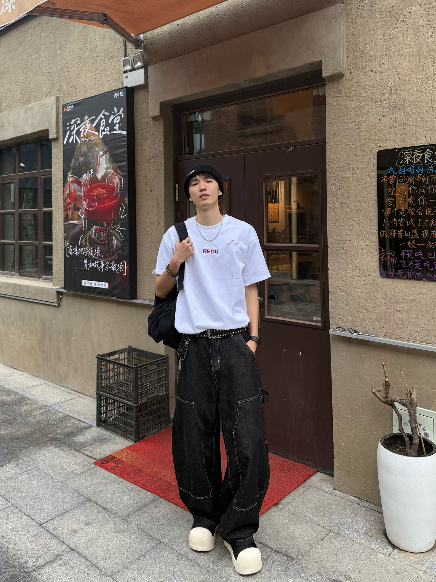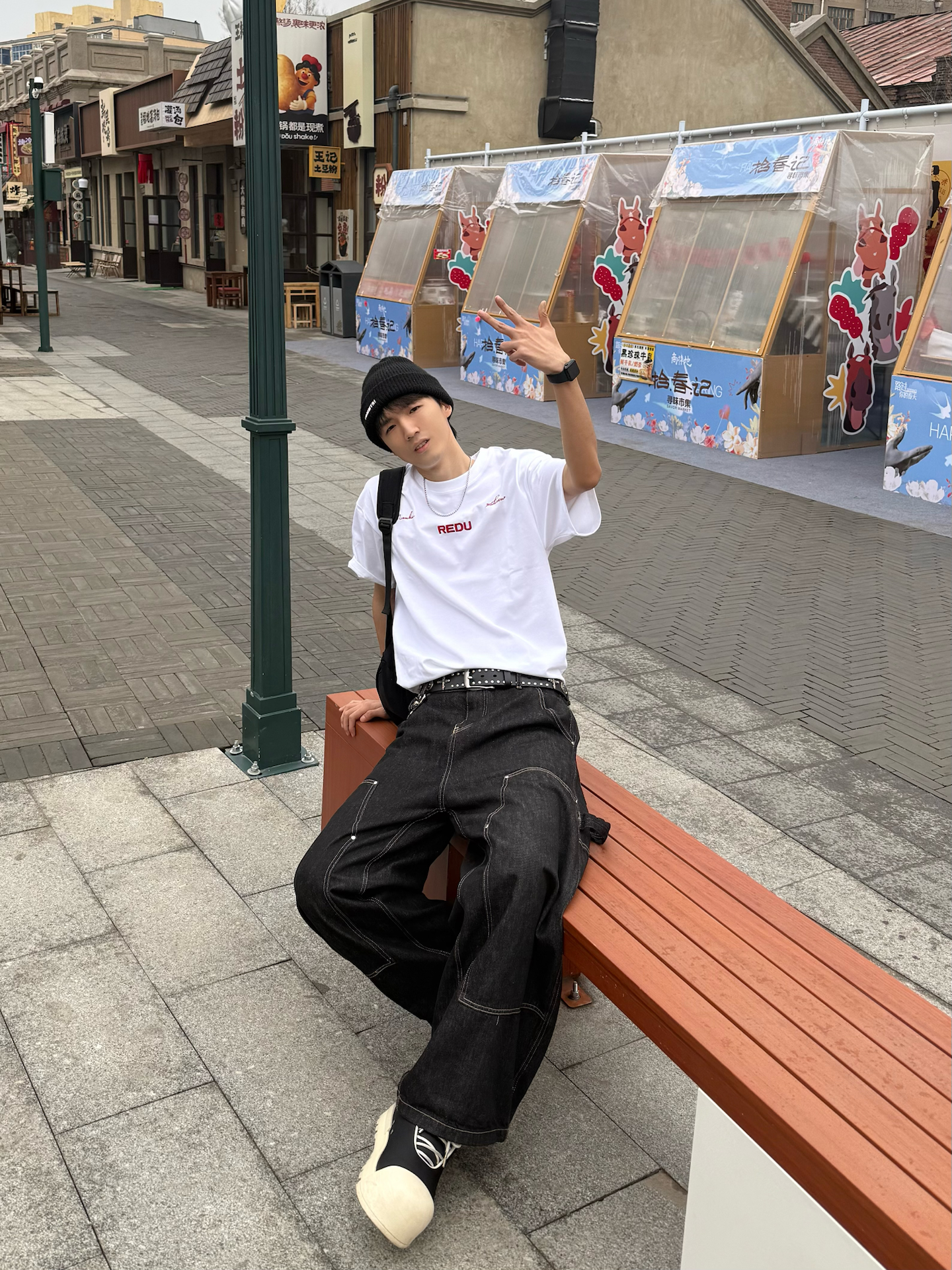 果然还是漫步在街头🤓更能治愈心情呀 这两天下雨下的 都有点心烦了😢 天气阴森森☁️搞得整个人都没啥活力 今天老样子👉搞了套混搭 Cleanfit配点街头元素 简单的白T搭上伐木直筒裤 配饰搞了个冷帽和朋克腰带做点缀✅ 把衣摆浅浅的塞入裤子2cm 瞧着真利落了许多 刚好在老街区兜圈✌️顺便搞顿涮串吃😋 可惜的是 这次没用上优惠卷hhh💰要不然又能省一省 这样一看 只能下次来再用了