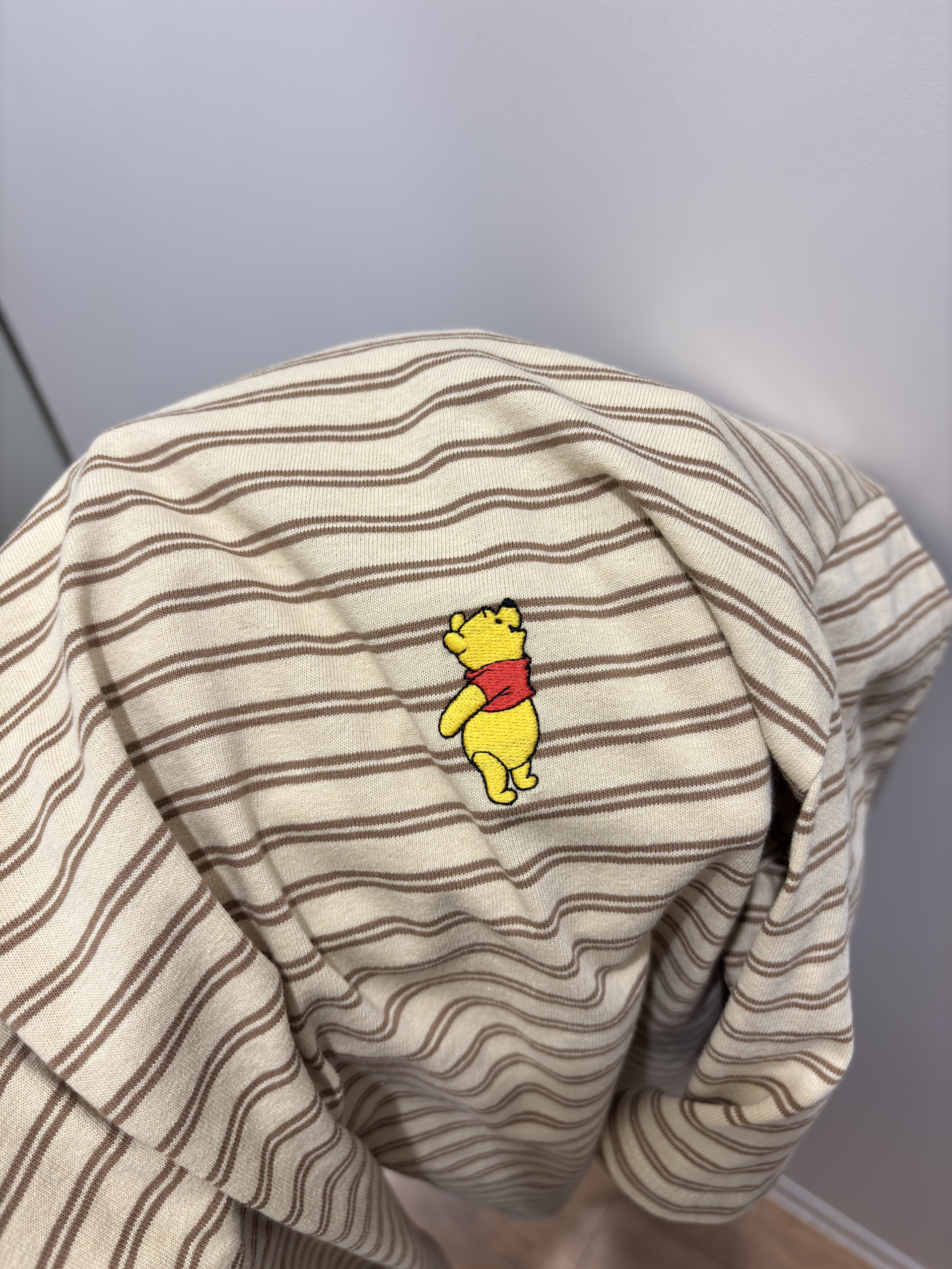 挖到宝了!这件小熊联名条纹T恤真的长在我的审美上,撞色领口+软乎乎的面料,上身亲肤又透气,oversize的版型对身材包容度超高,随便搭条牛仔裤就很韩系,春夏通勤、出游穿都超合适~