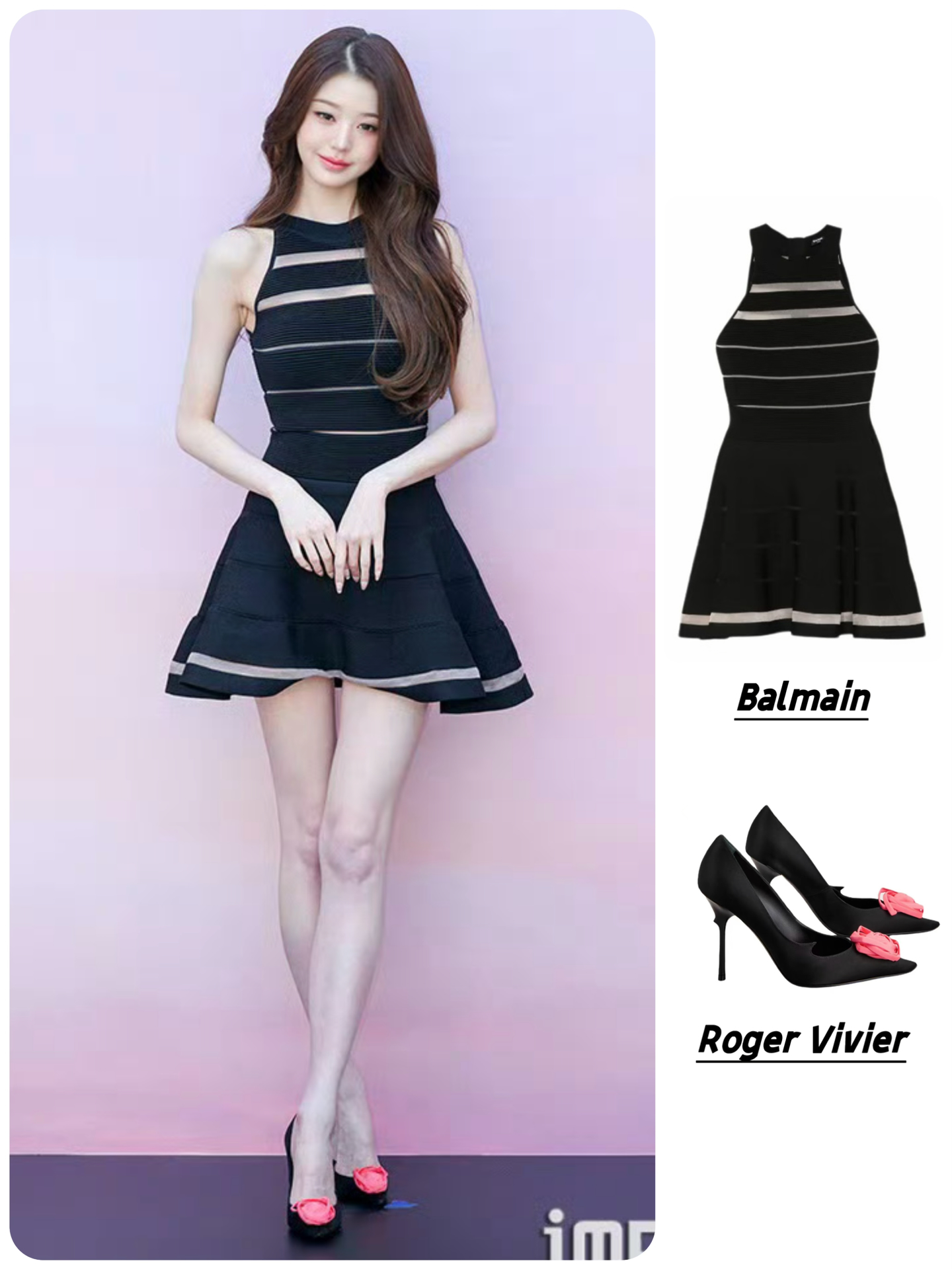 👗Balmain条纹针织伞型连衣裙 👠Roger Vivier罗杰维维亚 Rose Vivier 缎面 尖头套穿 细跟 高跟鞋