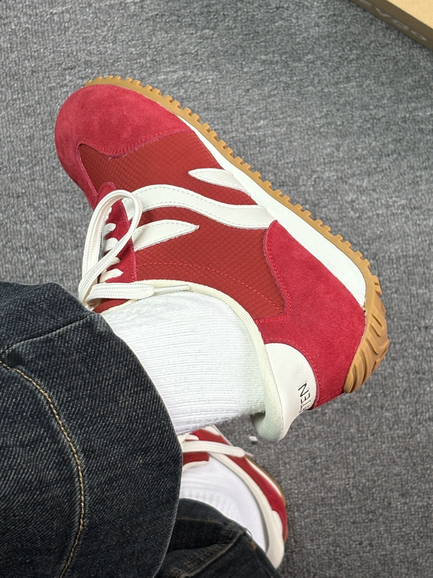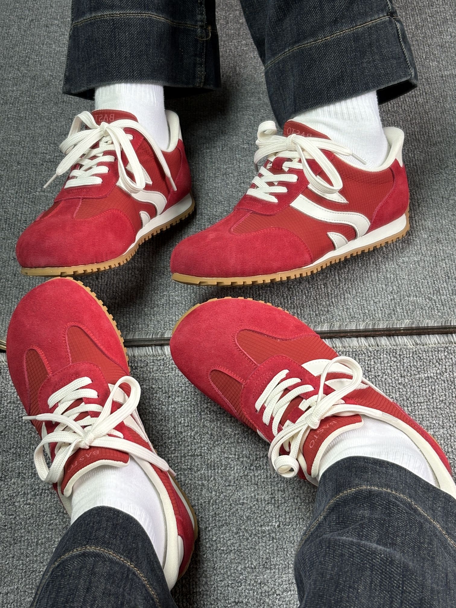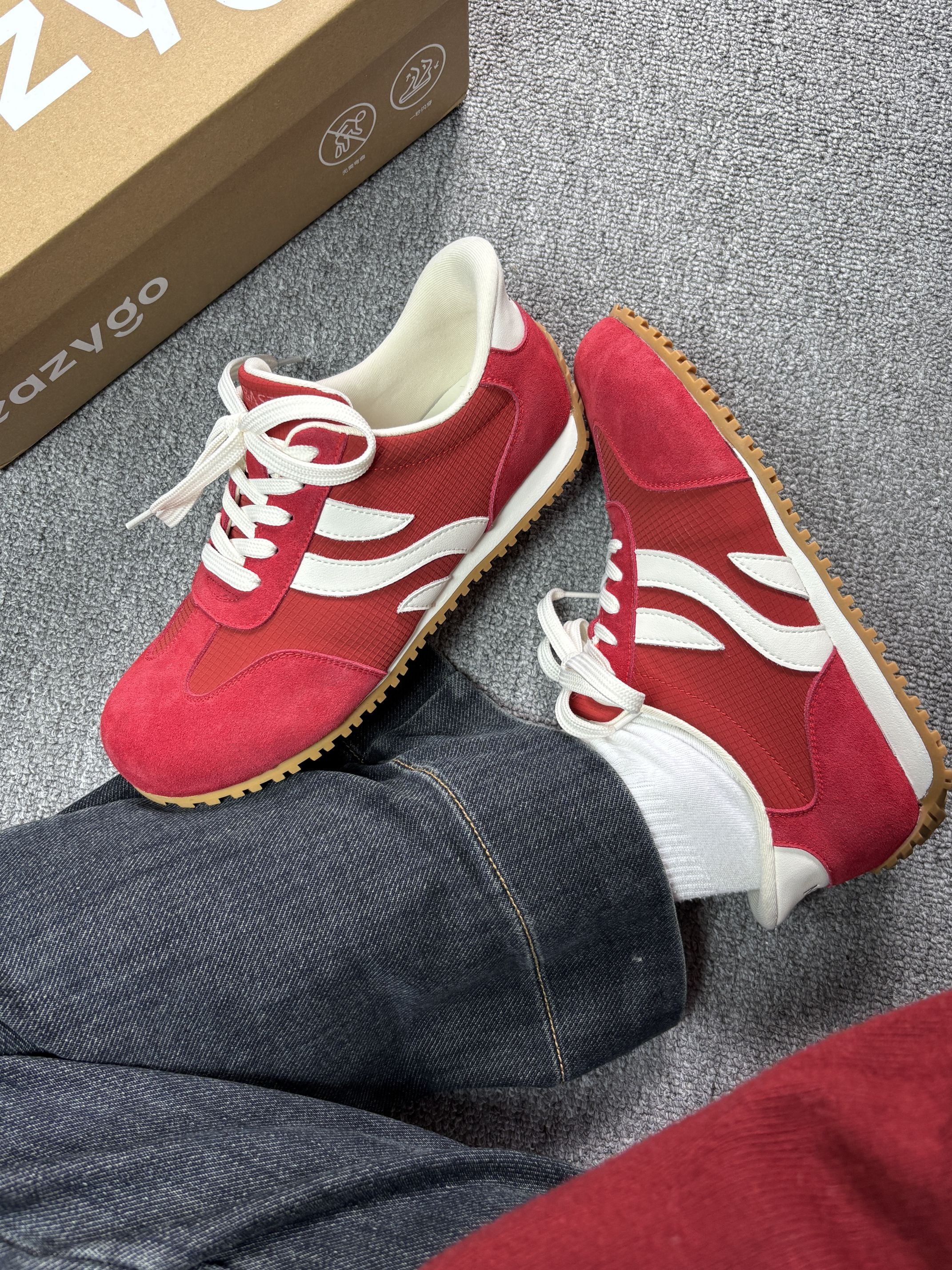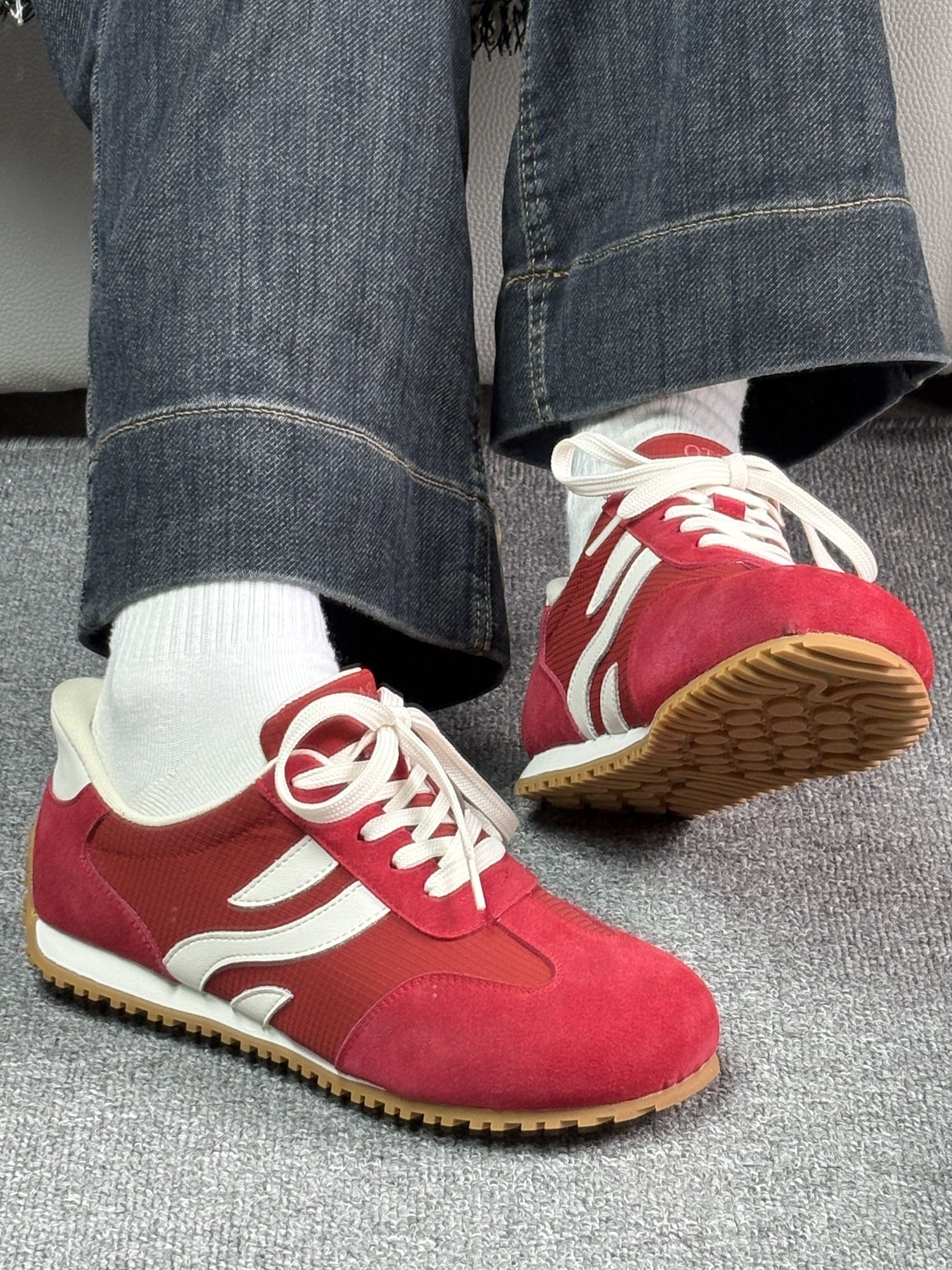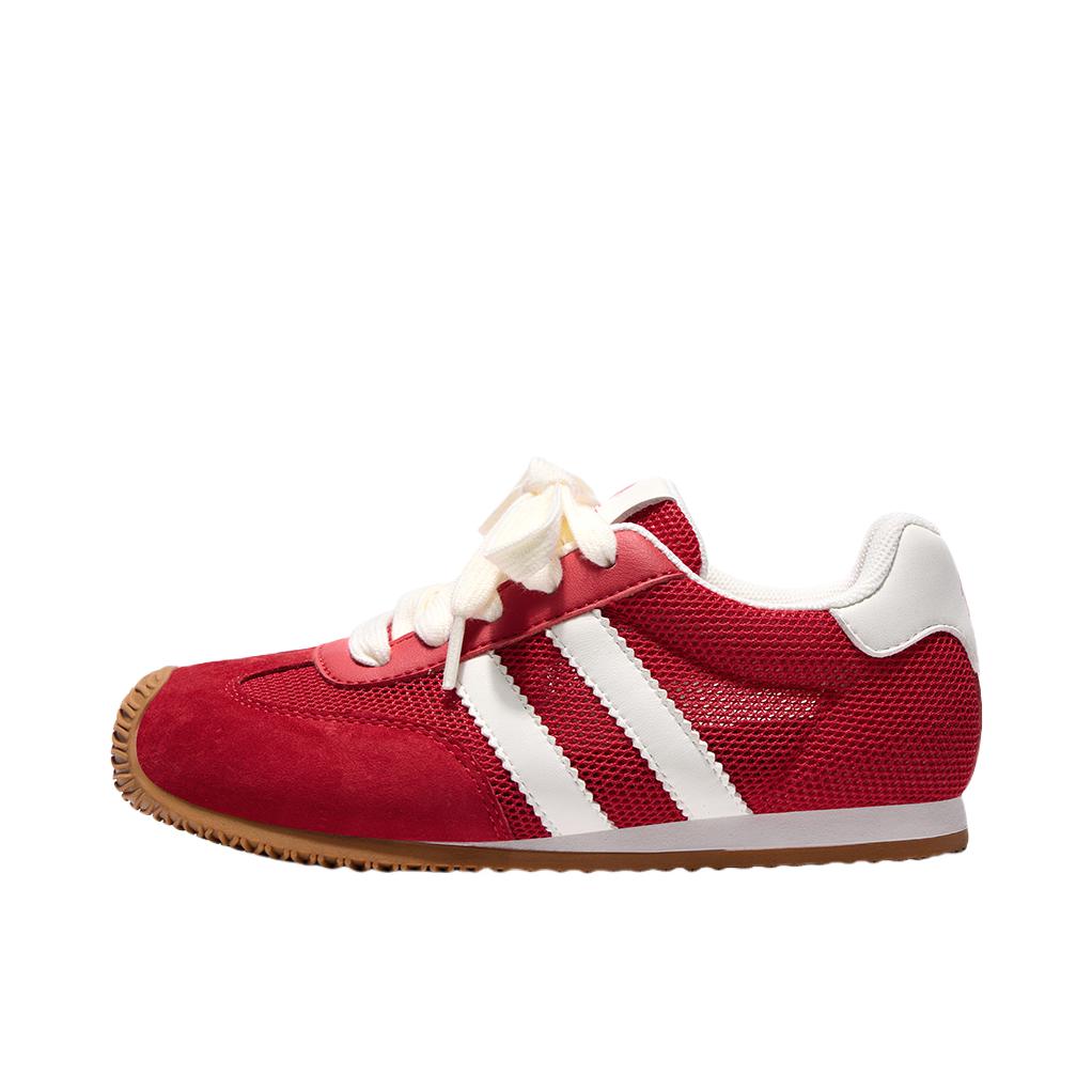 年度挖到宝❗️巨百搭的复古红色德训鞋来啦 拒绝千篇一律的小白鞋,这抹复古红真的又飒又温柔。 细腻磨砂皮+透气网布组合,质感在线还不容易闷脚,米白鞋带中和红色的艳丽,耐看又高级。 橡胶防滑大底,兼顾颜值与实用性,上脚轻盈不压脚。 复古运动风拿捏到位,学生党、打工人都能穿,随便搭基础款穿搭都秒变潮人,平价宝藏闭眼入✅
