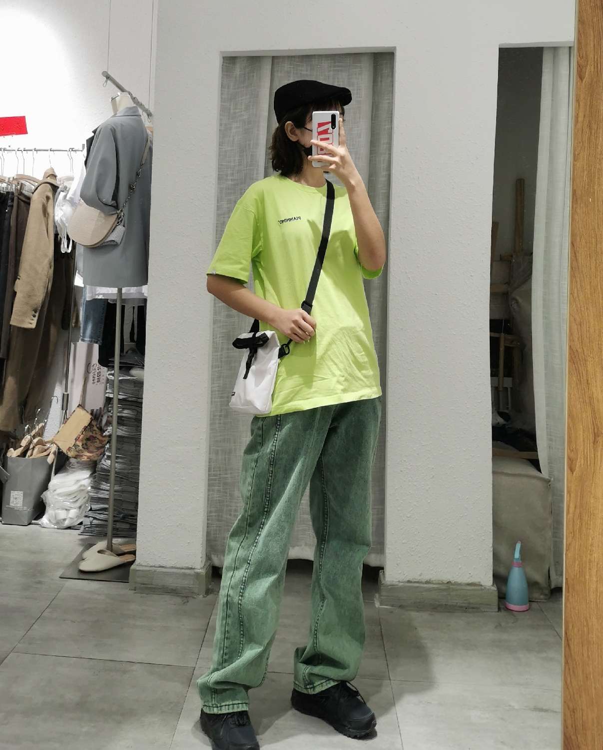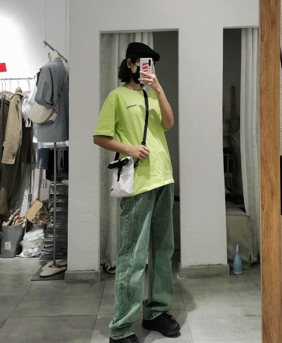 👔: pianning 👖:takeoff咖喱人 👟: nb410 穿搭灵感:夏天街头 绿色最凉快和舒服啦 于是我选择了墨绿和荧光绿的结合 这样既不撞色 又很协调 裤子很修饰腿型 这身衣服完美遮住了我的肉肉